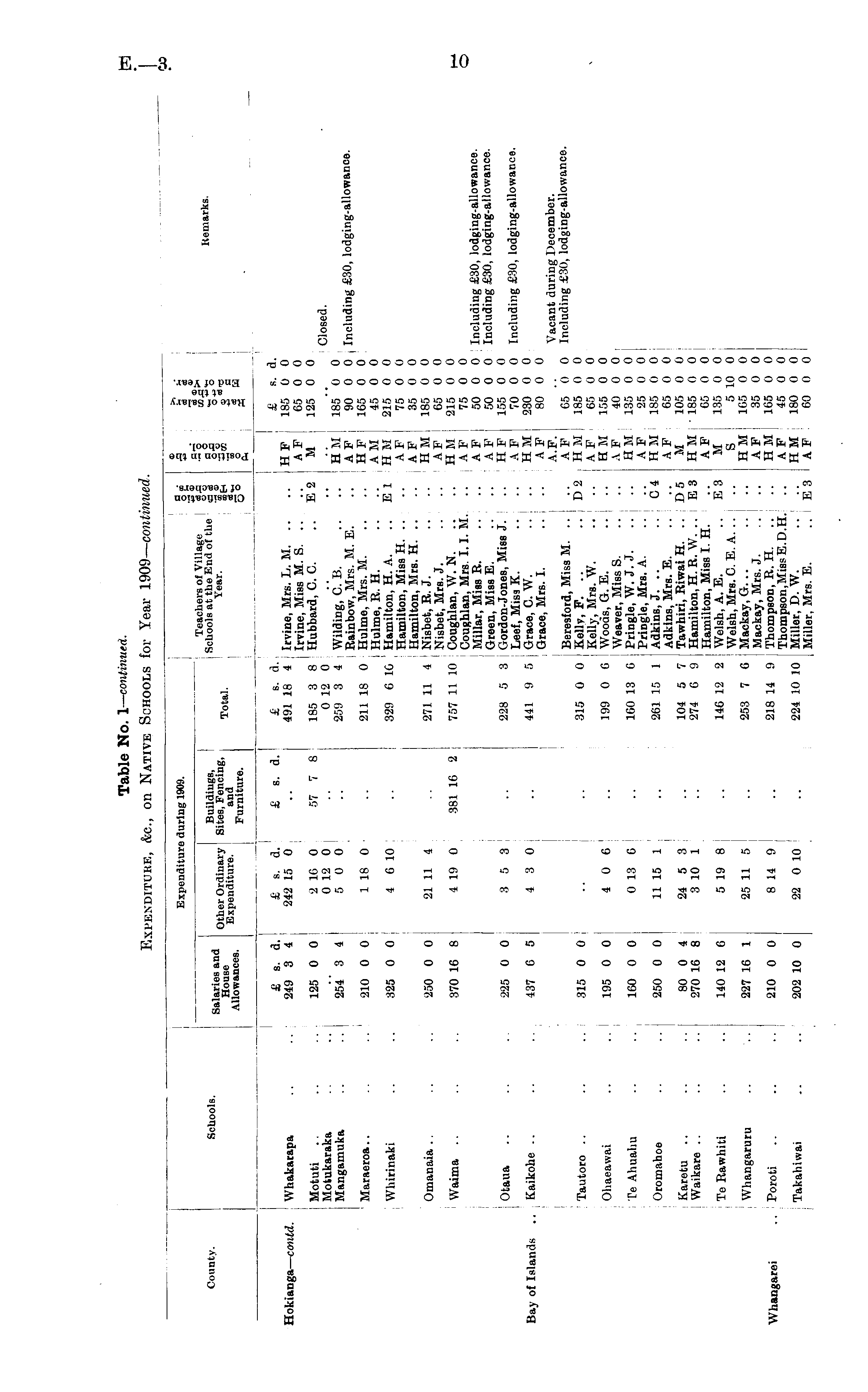 County. Schools. Buildings, Other Ordinary Sites, Fencing, Expenditure. and Furniture. Expenditure during 1909. Expenditure du er Ordinary Si penditure. iring 1909. Buildings, ites, Fencing, and Furniture. H " >> " 11 §1 M Hemark.. is il IH Total. Teachers of Village *a Schools at the End of the « § Year. S » CB tH 5° Salaries and House Allowances. - Hokianga — contd. Whakarapa Motuti Motukaraka Mangamuka Maraeroa.. Whirinaki Omanaia . Waima .. Otaua Bay of Islands .. Kaikohe .. " £ s. d. 249 3 4 125 0 0 254' 3 4 210 0 0 325 0 0 250 0 0 370 16 8 ■225 0 0 437 6 5 £ s. d. 242 15 0 2 16 0 0 12 0 5 0 0 1 18 0 4 6 10 21 11 4 4 19 0 3 5 3 4 3 0 4 0 6 0 13 0 11 15 1 24 5 3 3 10 1 5 19 8 25 11 5 8 14 9 22 0 10 £ s. d. 57 7 8 381 16 2 £ s. d. £ s. d. 491 18 4 Irvine, Mrs. L. M H F 185 0 0 Irvine, Miss M. S A F 65 0 0 185 3 8 Hubbard, C. C. .. E 2 M 125 0 0 0 12 0 .. .. •• •• Closed. 259 3 4 Wilding, C. B H M 185 0 0 Rainbow, Mrs. M. E. .. A F 90 0 0 ( Including £30, lodging-allowance. 211 18 0 Hulme, Mrs. M H F 165 0 0 Hulme, R. H AM 45 0 0 329 6 10 Hamilton, H. A. .. El H M 215 0 0 Hamilton, Miss H AF 75 0 0 Hamilton, Mrs. H AF 35 0 0 271 11 4 Nisbet, R. J. .. .. H M 185 0 0 : Nisbet, Mrs. J AF 65 0 0 757 11 10 Coughlan, W.N H M 215 0 0 Coughlan, Mrs. 1. 1. M. .. A F 75 0 0 Millar, Miss R A F 50 0 0 Including £30, lodging-allowance. Green, Miss E A F 50 0 0 Including £30, lodging-allowance. 228 5 3 Gordon- Jones, Miss J. .. H F 155 0 0 Leef, Miss K. .. .. A F 70 0 0 Including £30, lodging-allowance. 441 9 5 Grace, C. W. .. .. H M 230 0 0 Grace, Mrs. I AF 80 0 0 A.F. .. Vacant during December. Beresford, Miss M A F 65 0 0 Including £30, lodging-allowance. 315 0 0 Kelly, F. .. .. D 2 H M 185 0 0 Kelly, Mrs. W A F 65 0 0 199 0 G Woods, G. E. .. .. HM 155 0 0 Weaver, Miss S A F 40 0 0 160 13 6 Pringle, W. J. J HM 135 0 0 Pringle, Mrs. A A F 25 0 0 201 15 1 Adkins, J. .. .. C 4 H M '■ 185 0 0 Adkins, Mrs. E A F 65 0 0 104 5 7 Tawhiri, Riwai H. .. D 5 M 105 0 0 274 6 9 Hamilton, H. R. W. .. E 3 H M 185 0 0 Hamilton, Miss I. H. .. A F 65 0 0 146 12 2 Welsh, A. E. .. E 3 M 135 0 0 Welsh, Mrs. C. E. A S 5 10 0 253 7 6 Mackay, G... .. .. HM 165 0 0 Mackay, Mrs. J A F 35 0 0 218 14 9 Thompson, R.H HM 165 0 0 Thompson.MissE.D.H. .. AF 45 0 0 224 10 10 Miller, D. W. .. .. H M i 180 0 0 Miller, Mrs. E. .. E 3 A F 60 0 0 Tautoro .. .. 315 0 0 Ohaeawai 195 0 0 _ .. . Te Ahualiu " 160 0 0 Oromahoe Karetu Waikare .. Te Rawhiti Whangaruru Whangarei .. Poroti 250 0 0 80 0 4 270 16 8 140 12 G 227 16 1 210 0 0 Takahiwai 202 10 0 l