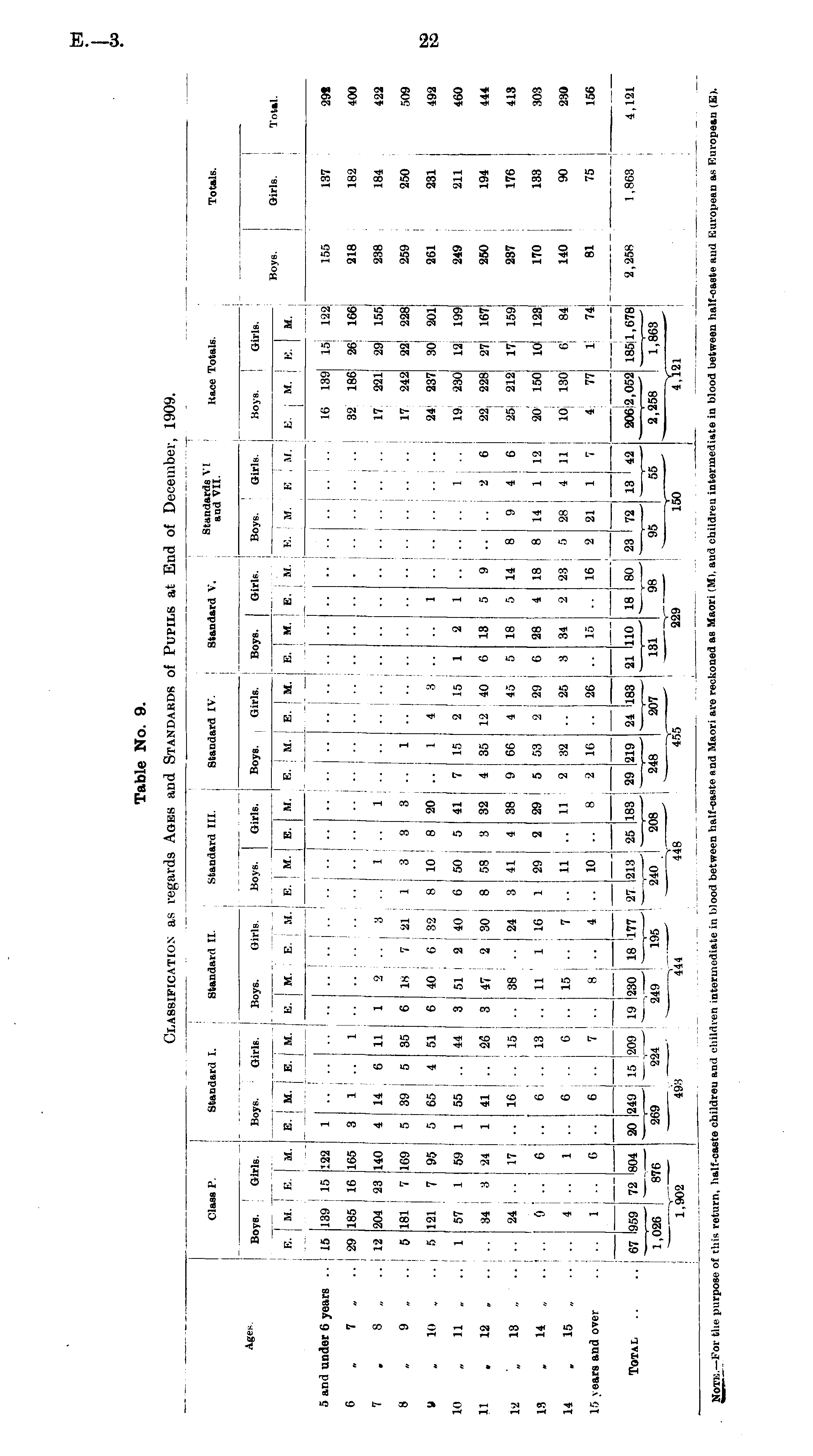Table No. 9. Classification as regards Ages and Standards of Pupils at End of December, 1909.