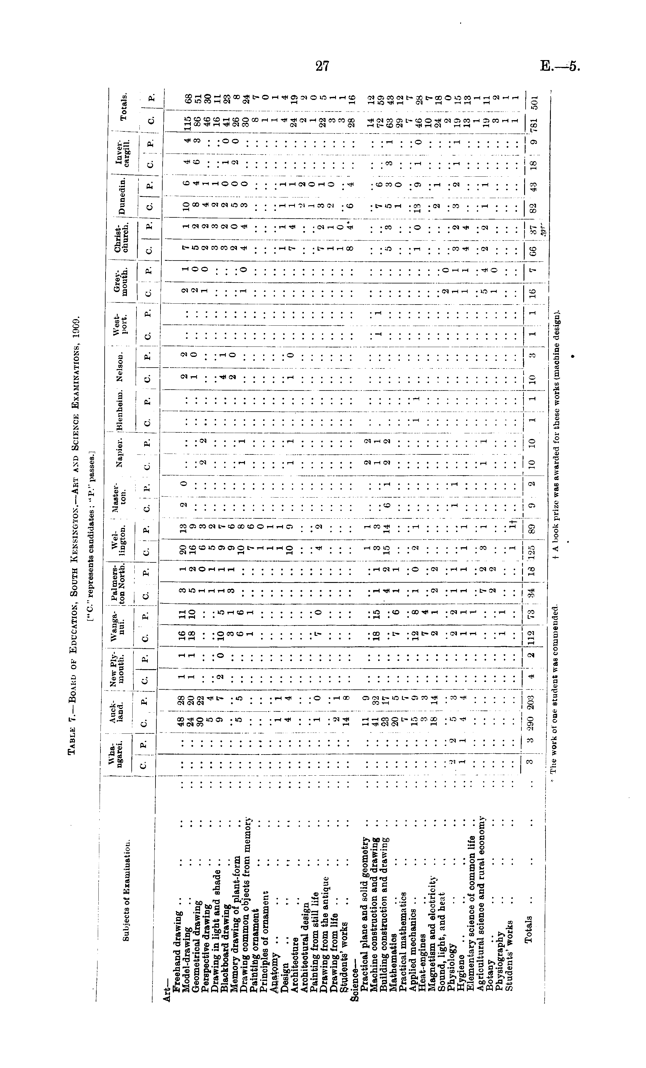 Table 7.—Board of Education, South Kensington.— Art and Science Examinations, 1909.