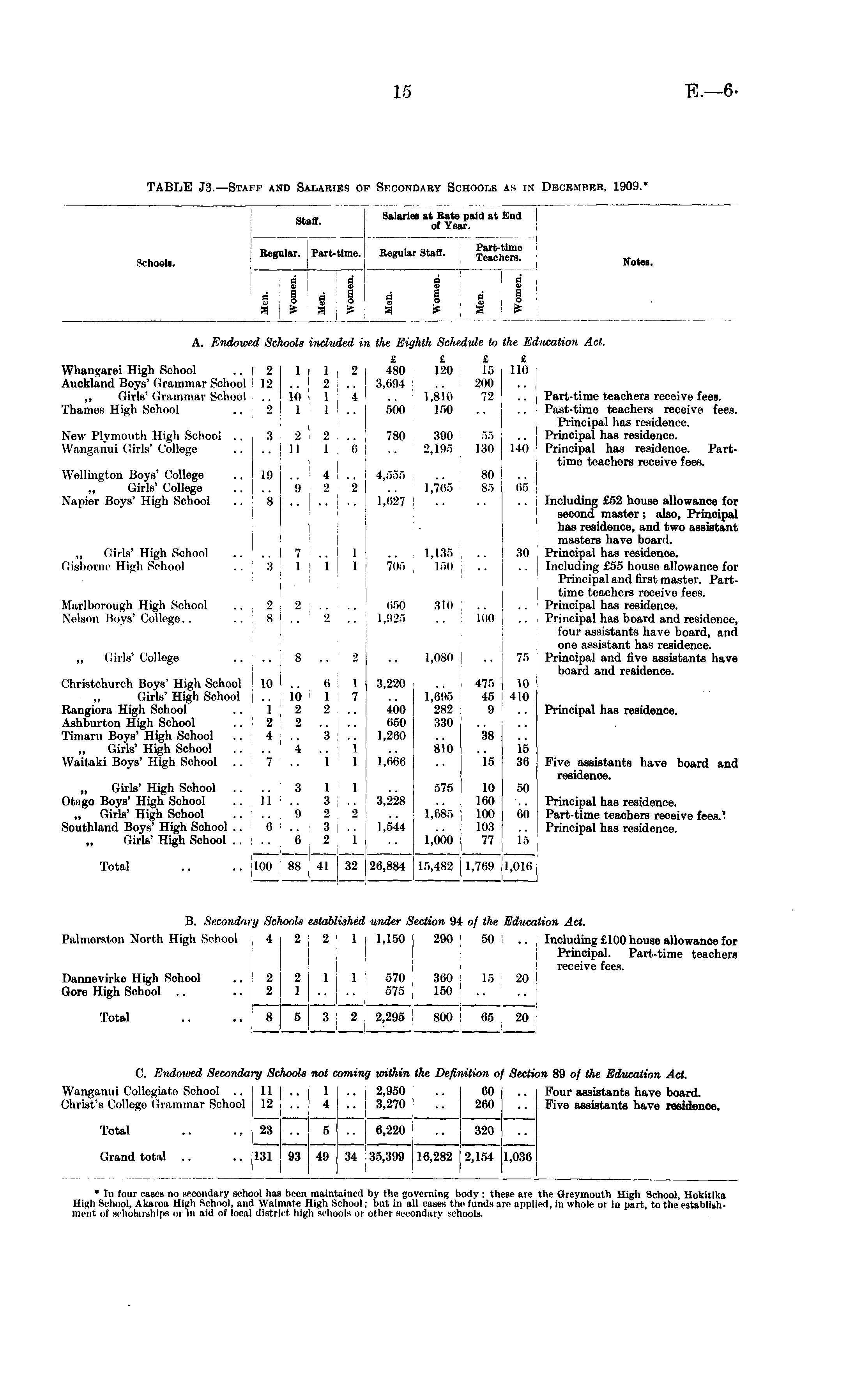 TABLE J3.— Staff and Salaries of Secondary Schools as in December, 1909.*