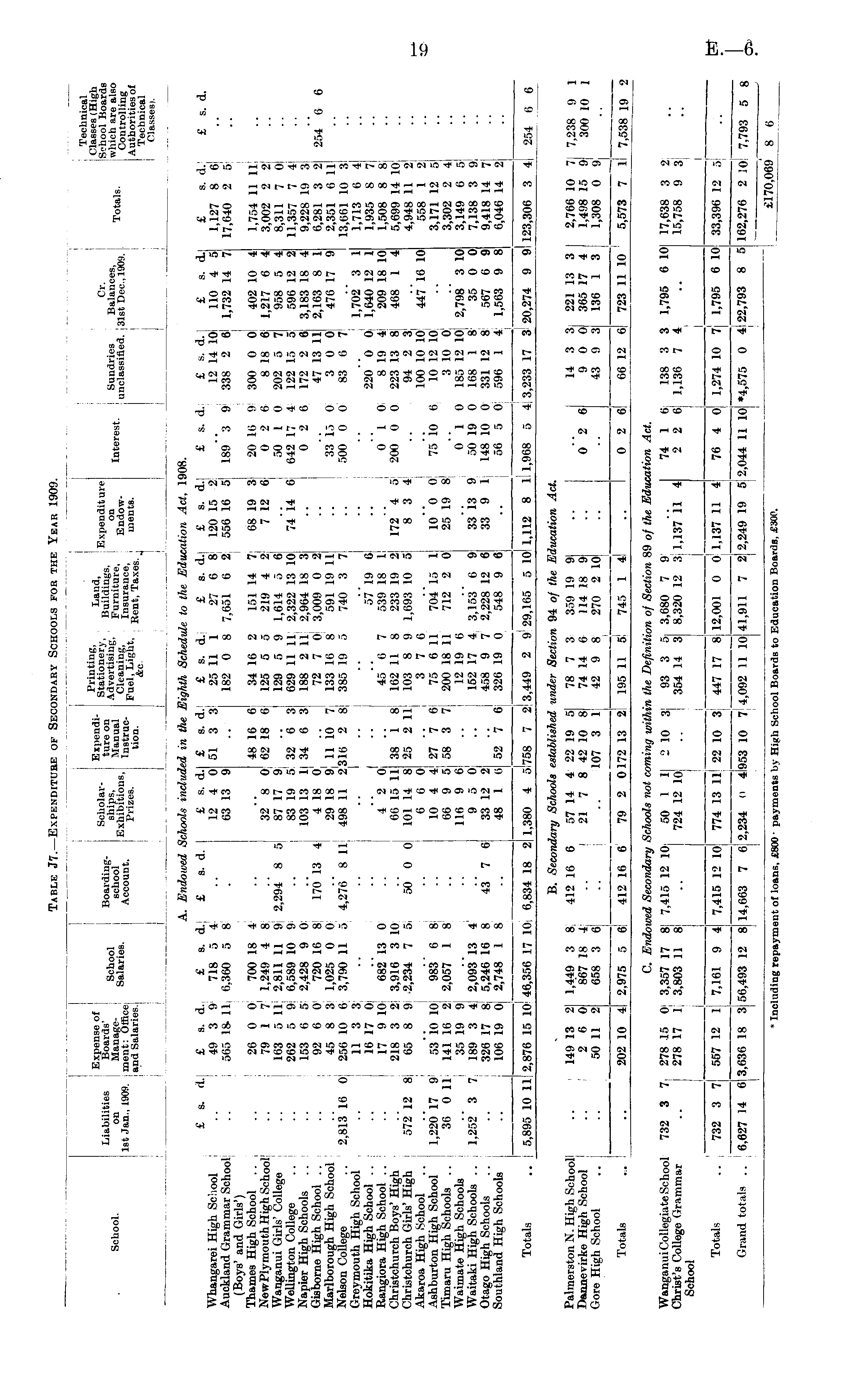 Table J7.—Expenditure of Secondary Schools for the Year 1909.