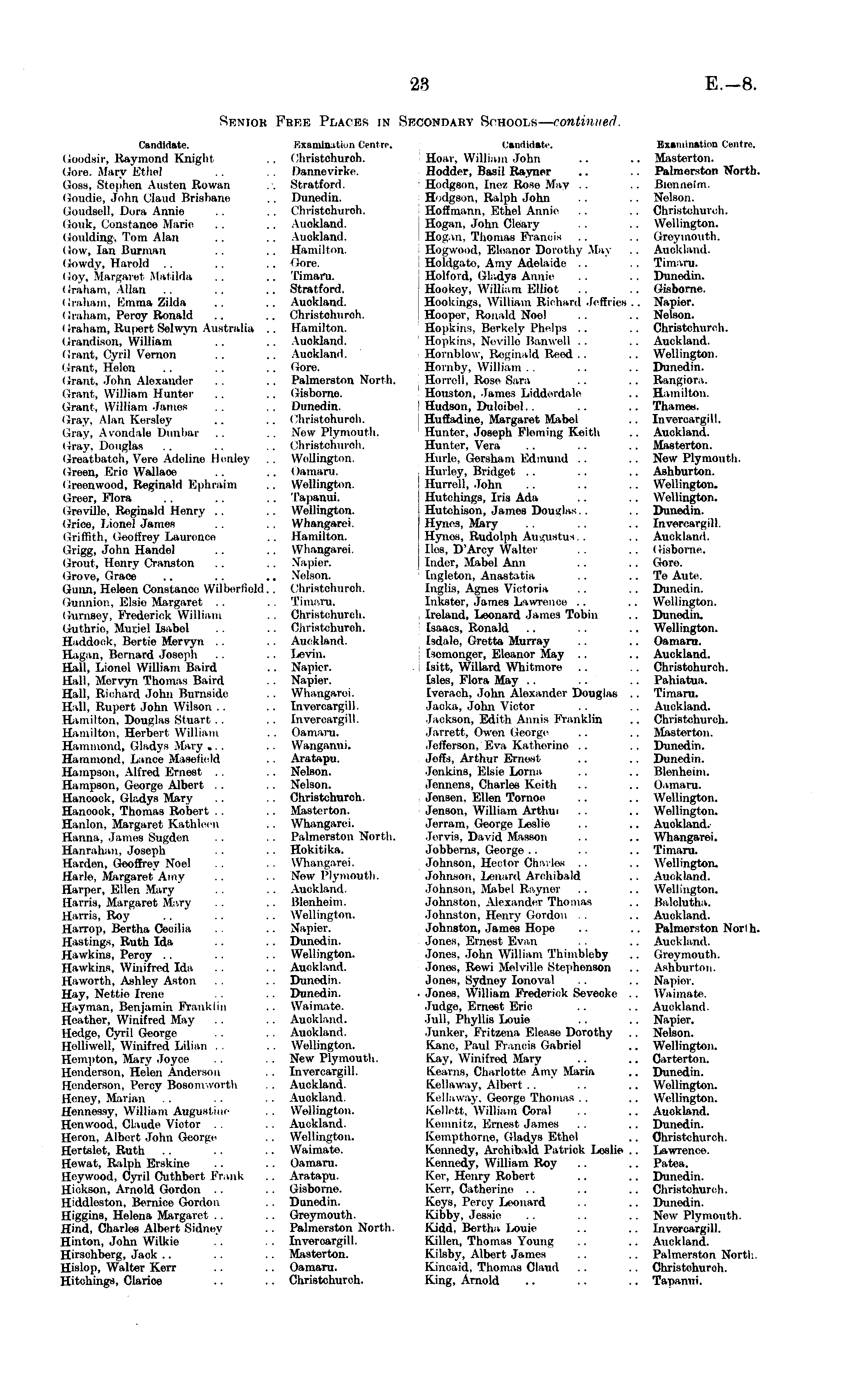 Candidate. i.\:uiiiu:i .nivmiv. Candidate. Examination Centre. Qoodeir, Raymond Kniglii .. Christchurch. Hoar, William John .. .. Masterton. Core Mary Ethel .. .. Dannevirke. Hodder, Basil Ravner .. .. Palmerston North. Goss, Stej)hen Austen Rowan . . Stratford. Hodgson, [nez Rose May ■. ■ ■ Bienneini. Goudie, John Claud Brisbane .. Dunediu. Hodgson, Ralph John .. .. Nelson. Goudsell, Dora Annie .. .. Christchurch. Hoffmann, Ethel Annie .. .. Ohristohuroh. Qouk, Constance Marie .. .. Auckland. Hogan, John Ole&ry .. .. Wellington. (Moulding, Tom Alan .. .. Auckland. Hog.m. Thomas Francis .. .. Greymouth. Gow, lan Burmau .. .. Hamilton. Hogwood, Eleanor Dorothy May .. Anokland. (lowdy, Harold .. .. .. Gore. Holdgato, Amy Adelaide .. .. Timare. Goy, Margaret Matilda .. .. Timarti. Holford, Gladys Annit< .. .. Dunediu. Graham, Allan .. .. .. Stratford. Hookey, William Ethot .. .. Gisborne. Graham, Kmma Zilda .. .. Auckland. Bookings, William Richard Jeffries .. Napier. Graham, Peroy Ronald .. .. Ohristchuroh. Hooper, Ronald Noel .. .. Nelson. Graham, Rupert Selwyn Australia .. Hamilton. Hopkins. Berkely Phelps .. .. Christchurch. Grandison, William .. .. Auokland. Hopkins, Neville Banwell .. .. Auckland. i;rant, Cyril Vernon .. .. Auokland. Hornblow, Reginald Reed .. .. Wellington. Grant, Helen .. .. .. Gore. Hornby, William.. .. .. Dunedin. Grant, John Alexander .. .. Palmerston North. Ho ire 11, Rose Sara .. .. Rangiora. Grant, William Hunter .. .. Gisborne. Houston, James Lidderdale .. Hamilton. Grant, William James .. .. Dunedin. Hudson, Duloib«l.. .. .. Thames. Gray, Alan Kersley .. .. Christohnroh. Huffadine, Margaret Mabel .. Inveroargill. Gray, Avondnle Dunbar .. .. New Plymouth. Hunter, Joseph Fleming Keith .. Auckland. Gray, Douglas .. .. .. Christchureli. Hunter, Vera .. .. .. Masterton. Greatbateh, Vero Adeline Henley .. Wellington. Hurlu, Gersham Kdmund .. .. New Plymouth. Green, Kric Wallace .. .. Oamaru. Hurley, Bridget .. .. .. Ashburton. Greenwood, Reginald Ephraim .. Wellington. Hurrell, John .. .. .. Wellington. Greer, Flora . . .. .. Tapanui. Hutchings, Iris Ada .. .. Wellington. Greville, Reginald Henry .. .. Wellington. Hutchison, James Douglas.. .. Dunedin. Grice, Lionel James .. . . Whangarci. Hynes, Mary . . .. .. Invereargill. Griffith, Geoffrey Laurence .. Hamilton. Hynos, Rudolph Ah Justus.. .. Auckland. Grigg, John Handel .. . . Whangarei. lies, D'Arcy Walter .. .. Gisborne, Grout, Henry Cranston .. .. Napier. Inder, Mabel Ann .. .. Gore. Grove, Grace .. .. .. Kelson. Ingleton, Anastatia .. .. Te Aute. Gunn, Heleen Constance Wilborfiold.. Christchurch. Inglis, Agnes Victoria .. .. Dunedin. Qnnnion, Elsie Margaret .. . . Timaru, Inkster, James Lawrence .. .. Wellington. Gurnsoy, Frederick William .. Ohristohureh. Ireland, Leonard James Tobiu .. Dunedin. Guthrio, Murjel Isabel .. .. Ohrietoharoh. Isaacs, Ronald .. .. .. Wellington. Haddock, Bertie Mervyn .. .. Auokland. Isdale, Gretta Murray .. .. Oaniaru. Hasan, Bernard Joseph .. Jjevin. Iscmongur, Eleanor May .. .. Auckland. Hall, Lionel William Baird .. Napier. [sitt, Willard Whitmore . . .. Christchurch. Hall. Mcrvvii Thomas Baird .. Napier. [sles, Flora May .. .. .. Pahiatua. Hall, Richard John Burnside . . Whangaroi. [verach, John Alexander Douglas .. Timaru. Hall, Rupert John Wilson .. .. Invercargill. Jacka, John Victor . . .. Auckland. Hamilton, Douglas Stuart .. .. Invercargill. Jackson, Edith Annis Franklin .. Christchurch. Hamilton, Herbert William .. Oamaru. Jarrett, Owen George .. .. Masterton. Hammond, Gladys Mary... .. Wanganui. Jefferson, Eva Kathorino .. .. Dunedin. Hammond, Lance Minefield .. Aratapu. Jeffs, Arthur Ernest .. .. Dunedin. Harapson, Alfred Ernest . . .. Nelson. Jenkins, Elsie Lenta .. .. Blenheim. Hampson, George Albert .. .. Nelson. Jennons, Charles Keith .. .. Oamaru. Hancock, Gladys Mary .. .. Christchurch. Jensen. Ellen Tornoe .. .. Wellington. Hancock, Thomas Robert .. .. Masterton. Jenson, William Arthui . ... Wellington. Hanlon, Margaret Katliliin .. Whangarei. Jerram, George Leslie .. .. Auckland. Hanna, James Sugden .. . . Palmerston North. Jervis, David ICaeeon .. .. Whangarei. Hanrahan, Joseph .. .. Hokitika. Jobberns, George .. .. .. Timaru. Harden, Geoffrey Noel .. .. Whangarei. Johnson, Hector Ch'.los .. .. Wellington. Harle, Margaret Amy .. .. New Plymouth. Johnson, Lenard Archibald .. Auokland. Harper, Ellen Mary .. .. Auckland. Johnson, Mabel Rayner .. .. Wellington. Harris, Margaret Mary .. .. Blenheim. Johnston, Alexander Thomas .. Balclutha. Harris, Roy .. .. . . Wellington. Johnston. Henry Gordon . . .. Auckland. Harrop, Bertha Cecilia .. .. Napier, Johnston, James Hope .. .. Palmerston North. Hasting.-.. Ruth Ida .. .. Dunedin. Jones, Ernest Evan .. .. Anokland. Hawkins, Peroy .. .. ■• Wellington. Jones. John William Thimbleby .. Greymouth. Hawkins. Winifred Ida . . .. Auckland. Jones. Rewi Melville Stephenson .. Ashburton. Ha worth, Ashley Aston .. .. Dunedin. Jones. Sydney lonoval .. .. Napier. Hay, Nettio Irene . . .. Dunedin. Jones. William Frederick Seveoke .. Waimate. Hayman, Benjamin Franklin .. Waimate. Judge, Ernest Eric .. .. Auckland. Heather, Winifred May .. .. Auckland. Jull, Phyllis Louie .. .. Napier. Hedge, Cyril George .. .. Auckland. Junker, Fritzena Elea.se Dorothy .. Nelson. Helliwell, Winifred Lilian .. .. Wellington. Kane, Paul Francis Gabriel .. Wellington. Hempton, Mary Joyce .. .. New Plymouth. Kay, Winifred Mary .. .. Carterton. Henderson, Helen Andeis.iii .. Invercargill. Kearns, Charlotte Amy Maria .. Dunedin. Henderson, Percy Bosomworth . . Auckland. Kellaway, Albert .. .. .. Wellington. Heney, Marian .. . . .. Auckland. Kellaway. George Thomas .. .. Wellington. Hennessy, William Augustine .. Wellington. Kellett, William Coral .. .. Auckland. Henwood, Claude Victor .. . . Auokland. Kemnitz. Ernest James .. .. Dunedin. Heron, Albert John George .. Wellington. Kempthorne, Gladys Ethol .. Ohristchuroh. Hertslet, Ruth .. .. .