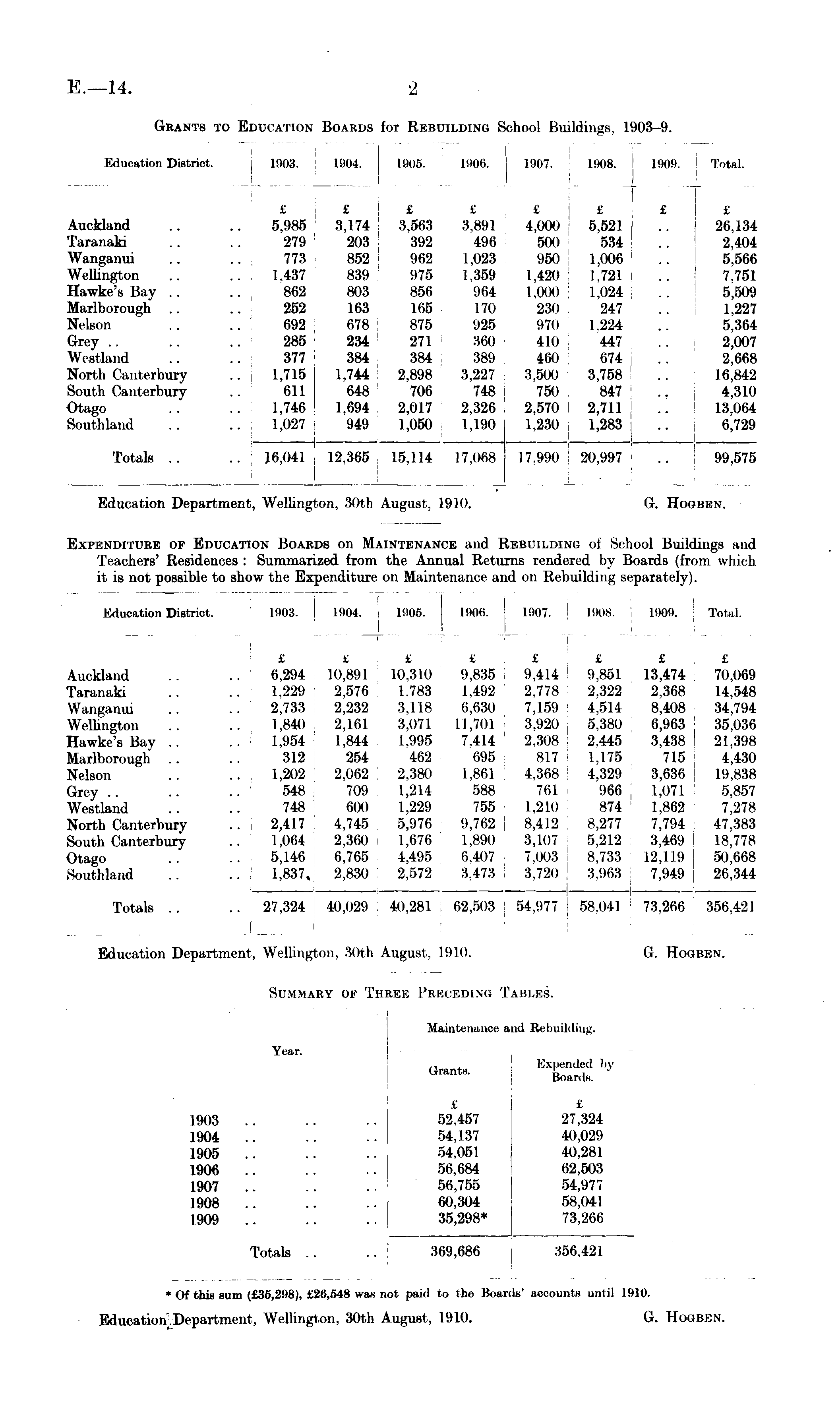 Grants to Education Boards for Rebuilding School Buildings, 1903-9.