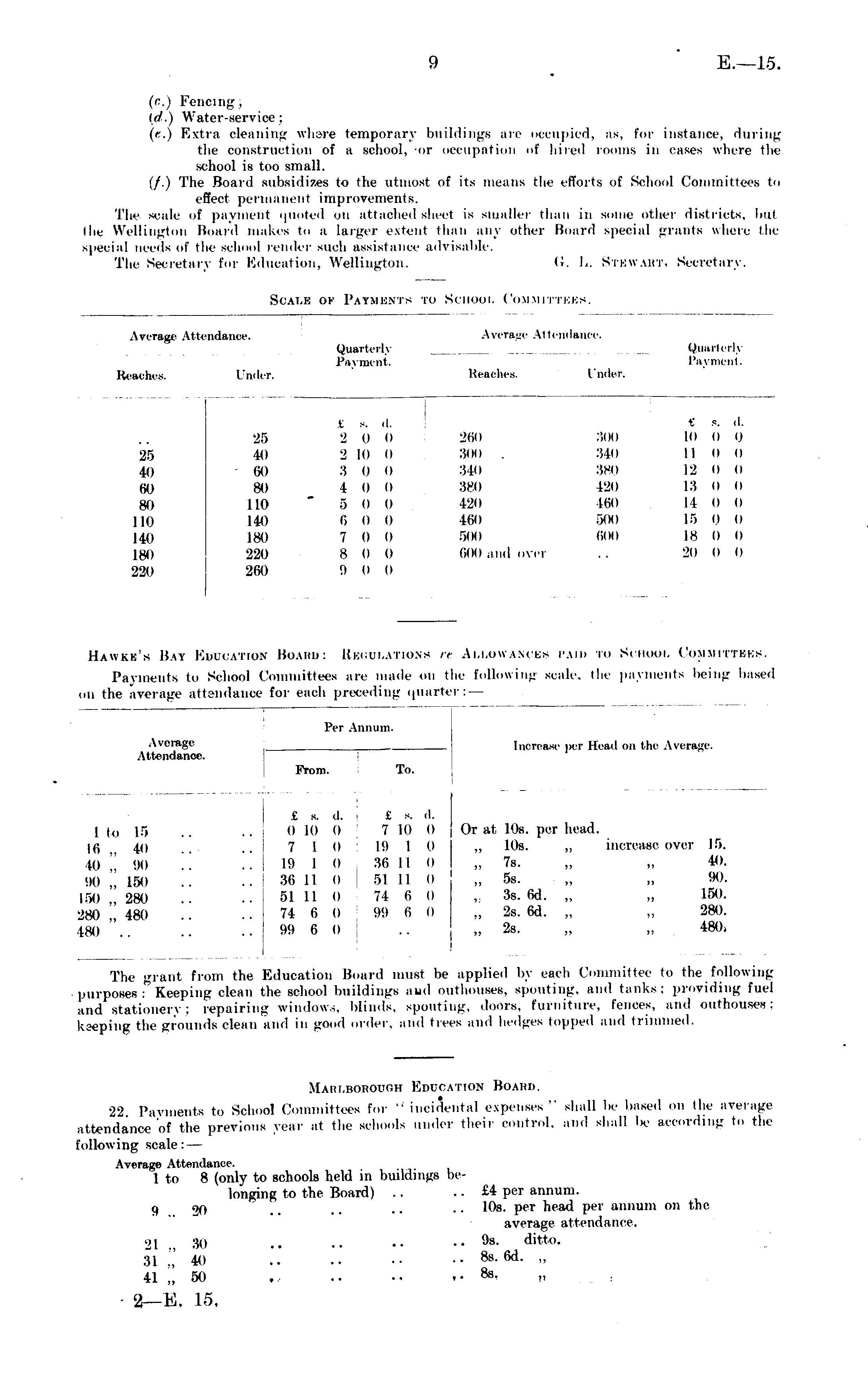 Hawkb's Hay Education Board: Uisuulationb i< Allowances paid m> School Committees. Payments to School Committees are made on the following scale, the payments being based on the average attendance for each preceding quarter: —