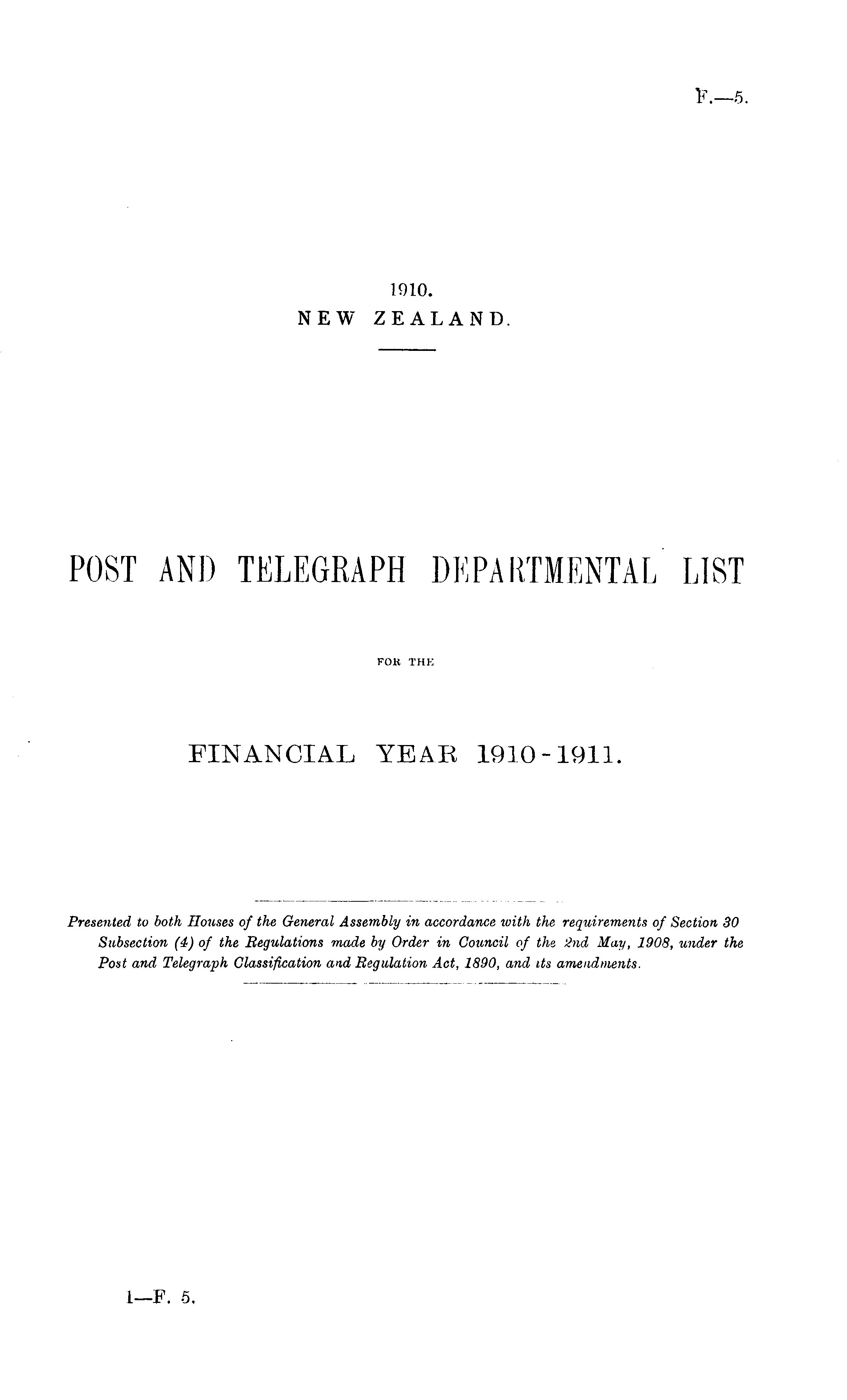 POST AND TELEGRAPH DEPARTMENTAL LIST FOR THE FINANCIAL YEAR 1910-1911.