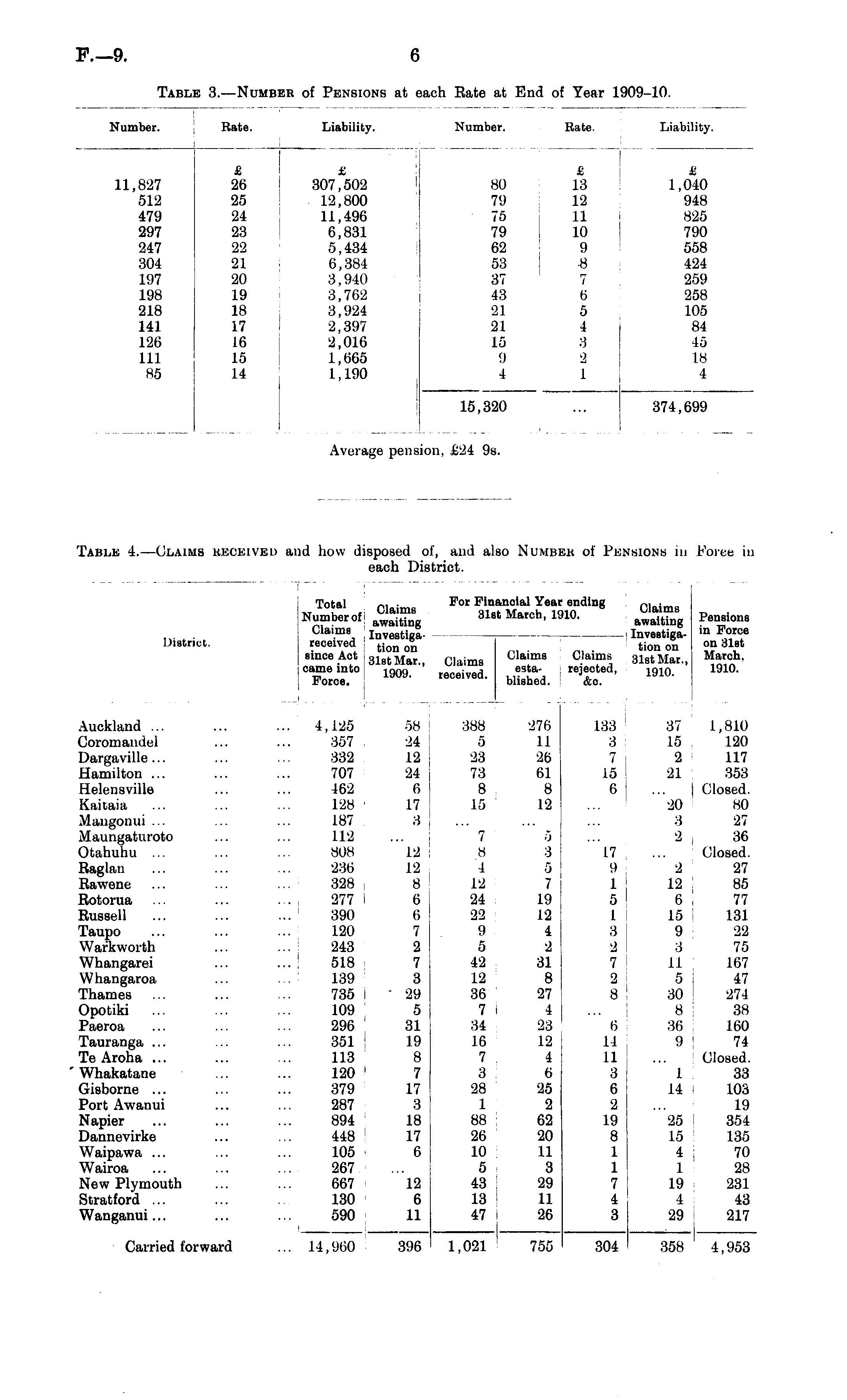Table 3.—Number of Pensions at each Rate at End of Year 1909-10.