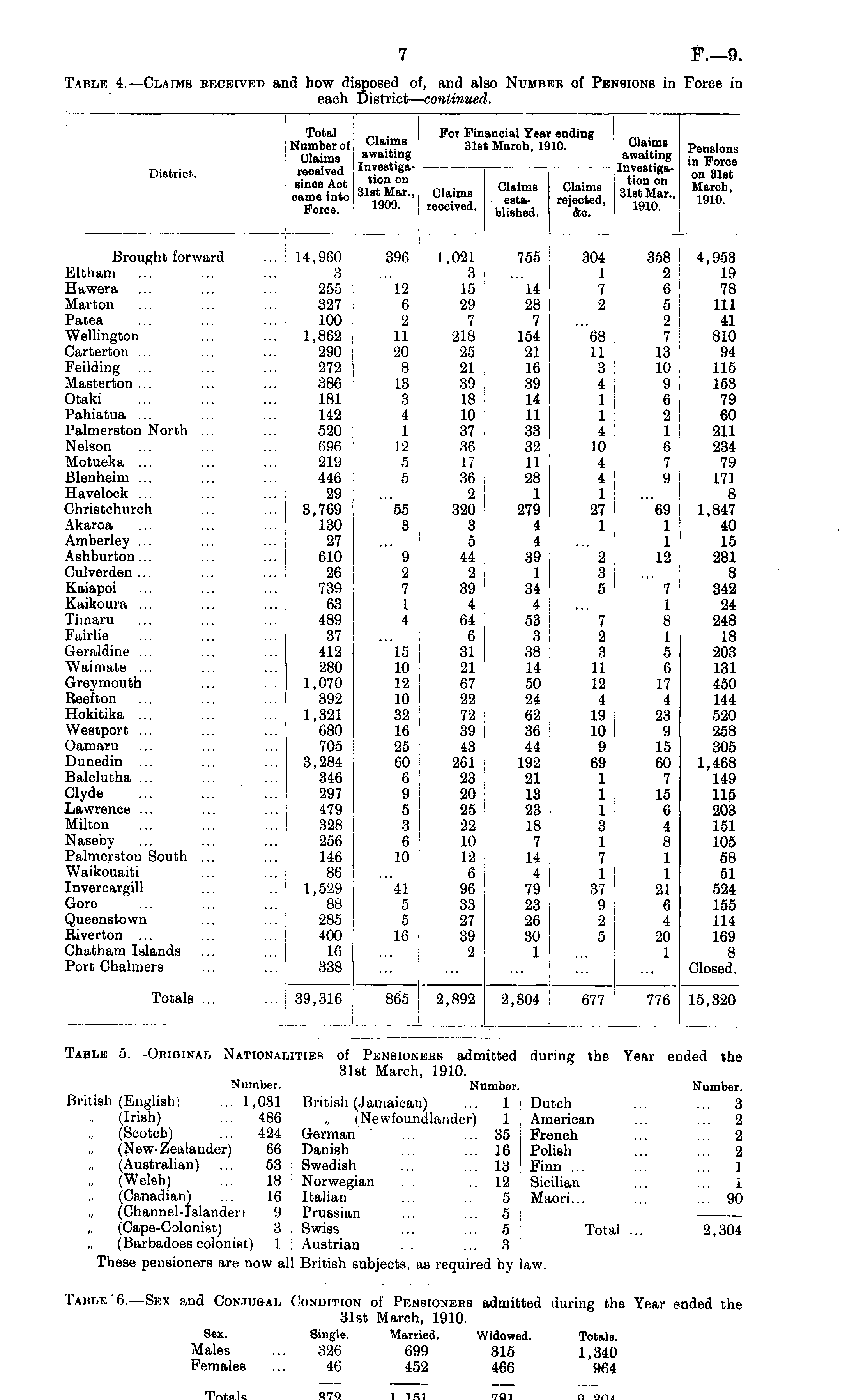 District. Total _,, . Number of Cla ' m8 Claims awaiting received Inyestigasinoe Act Q1 tl ° n . on came into 31-t Mar., Force. 190J - For Financial Yeai 31st March, 19 • ending . HO Claims awaiting Investigarejected, mo so. Pensions in Force on 31st March, 1910. Claims C1 * ims received. i Brought forward Bltham Hawera Mavton Patea Wellington Carterton ... Feilding Masterton ... Otaki Pahiatua ... Pahnerston North ... Nelson Motueka ... Blenheim ... Havelock ... Christchurch Akaroa Amberley ... Ashburton... Culverden ... Kaiapoi Kaikoura ... Timaru Fairlie Geraldine ... Waimate ... Greymouth Reefton Hokitika ... Westport ... Oamaru Dunedin Balclutha ... Clyde Lawrence ... Milton Naseby Palmerston South ... Waikouaiti Invercargill Gore Queenstovvn Riverton ... Chatham Islands Port Chalmers ... 14,960 3 255 327 100 1,862 290 272 386 181 142 520 696 219 446 29 3,769 130 27 610 26 739 63 489 37 412 I 280 ... 1,070 392 1,321 680 705 ... 3,284 346 297 479 828 256 146 86 .. 1,529 88 285 400 16 338 396 12 ! (i 2 11 20 ! 8 13 3 4 1 12 5 5 55 3 ' 9 2 7 1 4 15 ! 10 12 I 10 ! 32 16 25 60 6 9 5 3 6 10 41 5 5 16 1,021 3 15 29 7 218 25 21 39 18 10 37 36 17 36 2 320 3 5 44 4 64 6 31 21 67 22 72 39 i 43 i 261 23 20 25 22 10 12 6 96 33 27 39 2 755 14 28 7 154 21 16 39 14 11 33 32 11 28 1 279 4 4 39 1 34 4 53 3 38 14 50 24 62 36 44 192 21 13 23 18 7 14 4 79 23 26 30 1 304 1 7 2 68 11 3 4 1 1 4 10 4 1 27 l 1 ' 2 3 e 7 2 * 12 4 19 10 9 69 1 1 1 3 1 7 1 37 9 2 5 358 2 6 5 2 7 13 10 9 6 2 1 6 7 9 "69 1 1 12 " 7 1 8 1 5 6 17 4 23 9 15 60 7 15 6 4 8 1 1 21 6 4 20 1 4,953 19 78 111 41 810 94 115 153 79 60 211 234 79 171 8 1,847 40 15 281 8 342 24 248 18 203 131 450 144 520 258 305 1,468 149 115 203 151 105 58 51 524 155 114 169 8 Closed. Totals ... 39,316 39,316 865 8rj5 2,892 2,892 2,304 2,304 677 776 15,320
