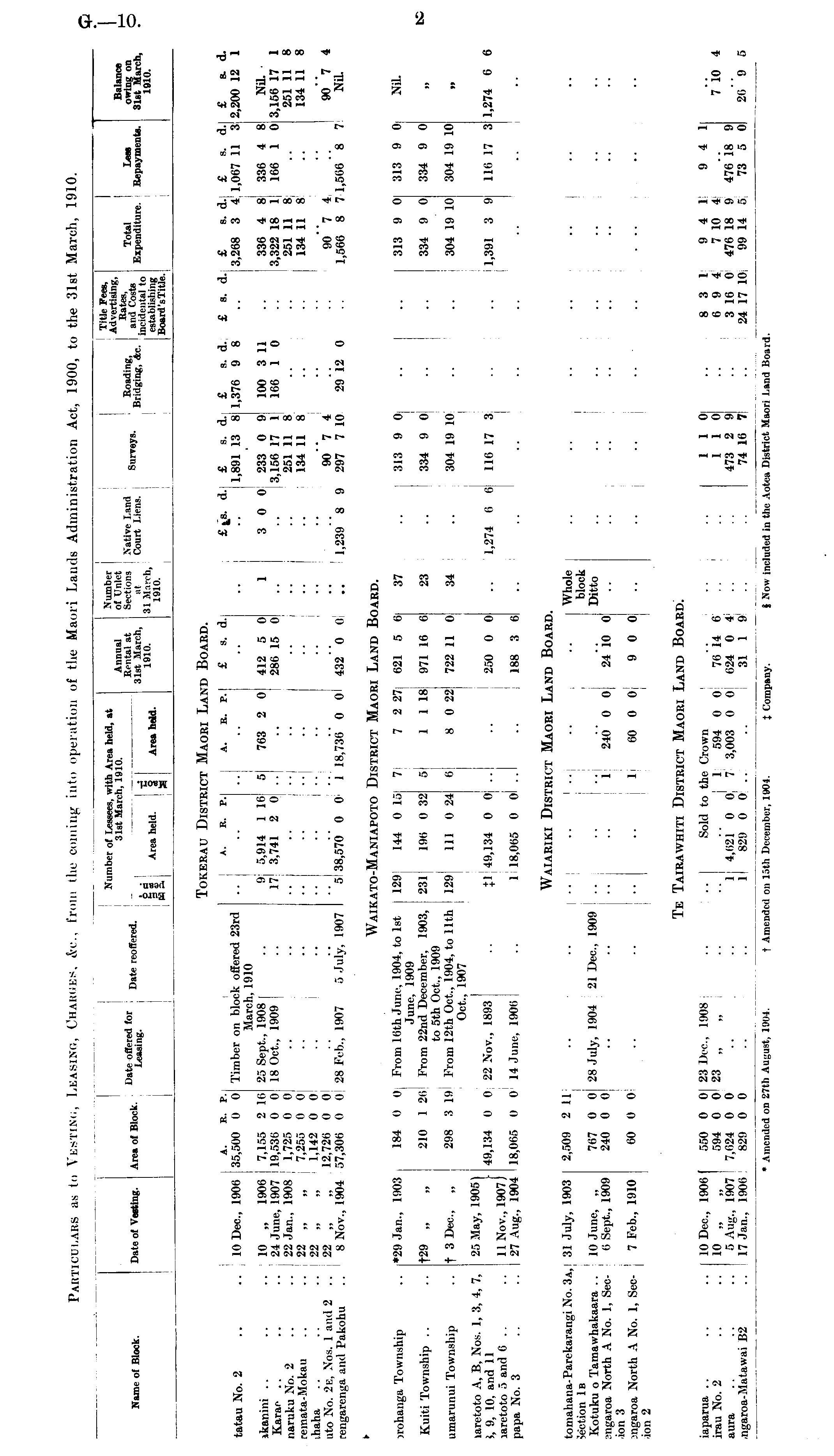 Particulars as to Vesting, Leasing, Charges, &c., from the coming into operation of the Maori Lands Administration Act, 1900, to the 31st March, 1910.
