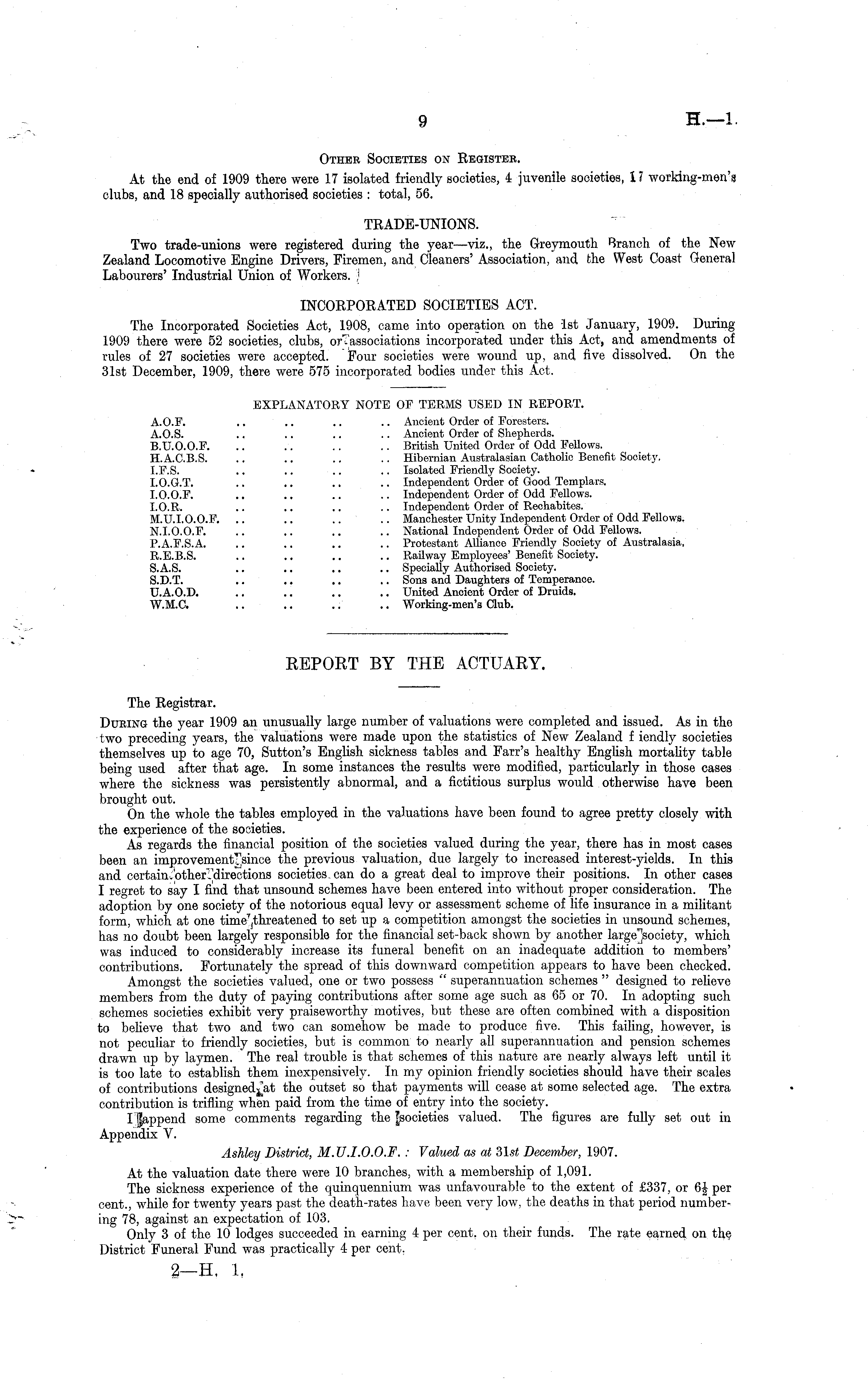 EXPLANATORY NOTE OF TERMS USED IN REPORT. A.O.F. .. .. .. .. Ancient Order of Foresters. A.O.S. .. .. .. .. Ancient Order of Shepherds. 8.U.0.0.F. .. .. .. .. British United Order of Odd Fellows. H.A.C.B.S. .. .. .. .. Hibernian Australasian Catholic Benefit Society. I.F.S. .. .. .. .. Isolated Friendly Society. 1.0. G.T. .. .. .. .. Independent Order of Good Templars. 1.0.0. F. .. .. .. .. Independent Order of Odd Fellows. 1.0. R. .. .. .. .. Independent Order of Reohabites. M.U.1.0.0.F. .. .. .. .. Manchester Unity Independent Order of Odd Fellows. N.1.0.0.F. .. .. .. .. National Independent Order of Odd Fellows. P.A.F.S.A. .. .. .. .. Protestant Alliance Friendly Society of Australasia, R.E.B.S. .. .. .. .. Railway Employees' Benefit Society. S.A.S. .. .. .. .. Specially Authorised Society. S.D.T. .. .. .. .. Sons and Daughters of Temperance. U.A.O.D. .. .. .. .. United Ancient Order of Druids. W.M.C. .. .. .. .. Working-men's Club.