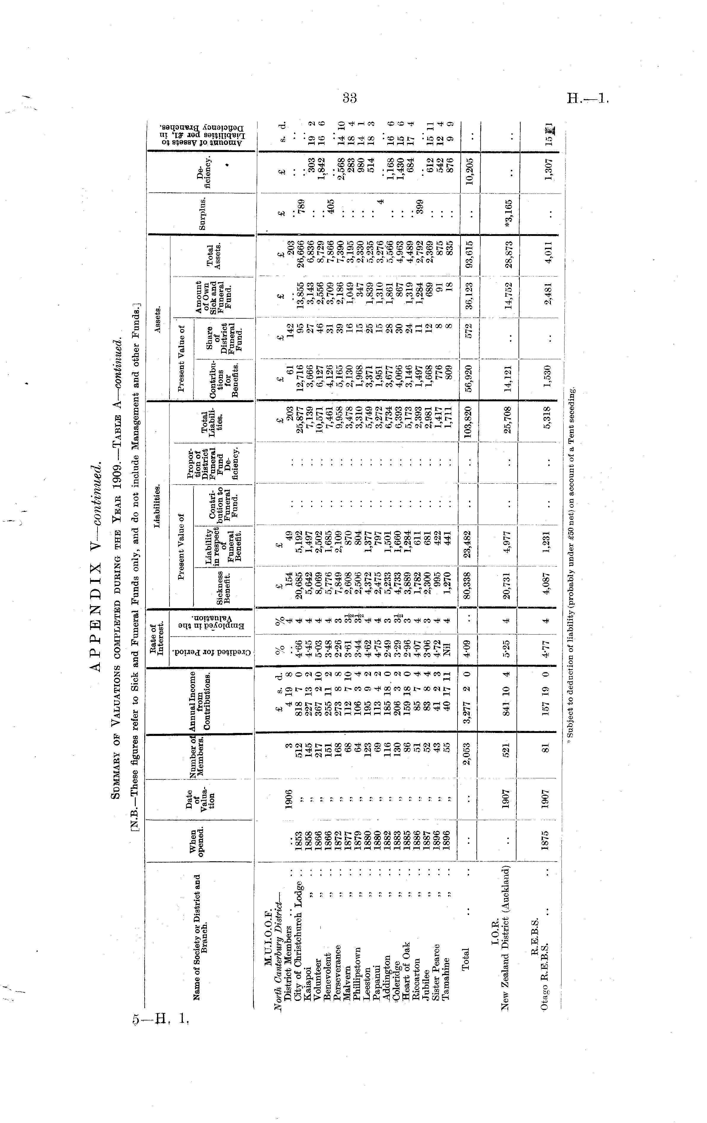[N. ,B. —These figures refer to Sick id Funeral Funds only, and do not include Managemei it and other Funds. J Rate of Interest. Liabilities. Assets. Name of Society or District and Branch. When opened. - . : D !$ e Number of Valua- .Members, tion Annual Income from Contributions. o 9 6 a a a m Present Value of | Propor- ! tion of T;ohii;t„ District Total Contrl - Mineral Liabili - Sickness ln r ™P eCT button to Fund ties. Benefit. w "' , Funeral Delenefit! Fund - fici «™yPresent Value of Present Value of Contribu- Share 'j™ 8 District Benefits F »neral Benefits. , Funa Amount of Own Sick and Funeral Fund. Surplus. Deficiency. o 3 to O on >i O'R O Total Assets. • M.U.I.O.O.F. North Canterbury District — District Members City of Christchurch Lodge .. 1853 Kaiapoi „ .. 1858 Volunteer „ .. 1866 Benevolent „ .. 1866 Perseverance „ .. 1872 Malvern „ .. 1877 Phillipstown „ .. 1879 Leeston „ .. 1880 Papanui „ .. 1880 Addington „ 1882 Uoleridge „ .. 1883 Heart of Oak „ .. 1885 Riccarton „ .. 1886 Jubilee „ .. 1887 Sister Pearce „ .. 1896 Tamahine „ .. 1896 1906 3 512 145 217 151 168 68 ' 64 123 69 116 130 86 51 52 43 55 £ s. d. 4 19 8 818 7 0 227 13 2 367 2 10 255 11 2 273 8 8 112 7 10 106 3 4 195 9 2 113 4 2 185 18. 0 206 3 2 159 18 0 85 7 4 83 8 4 41 2 3 40 17 11 O/ 0/ ,0 /o 4 4-66 4 4-45 4 5-03 4 3-48 4 2-26 3 3-61 | 3J 3-44 I 3i 4-62 ! 4 4-75 | 4 2-49 | 3 3-29 i 3| 2-96 : 3 4-07 : 4 3-06 j 3 4-72 4 Nil 4 £ 154 I 20,685 5,642 8,069 5,776 7,849 2,608 2,506 4,372 2,475 ! 5,233 4,733 3,889 1,782 2,300 995 1,270 £ 49 5,192 1,497 2,502 1,685 2,109 870 804 1,377 797 1,501 1,660 1,284 611 681 422 441 £ 203 25,877 7,139 10,571 7,461 9,958 3,478 3,310 5,749 3,272 6,734 6,393 5,173 2,393 2,981 1,417 1,711 £ 61 12,716 3,666 6.127 4,126 5,165 2,130 1,968 3,371 1,951 3,677 4,066 3,146 1,497 1,668 776 809 £ £ 142 ! 95 13,855 27 3,143 46 2,556 31 , 3,709 39 i 2,186 . 16 : 1,049 15 | 347 25 ! 1,839 15 j 1,310 28 : 1,861 30 | 867 24 ! 1,319 11 1,284 12 689 8 i 91 8 18 £ 203 26,666 6,836 8,729 7,866 7,390 3,195 2,330 5,235 3,276 5,566 4,963 4,489 2,792 2,369 875 835 £ 789 | 405 £ 303 1,842 2,568 283 980 514 s. d. 19 2 16 6 14 10 18 4 14 1 18 3 4 399 1,168 1,430 684 612 542 876 16 6 15 6 17 4 15 11 12 4 9 9 Total 2,053 2,053 3,277 2 0 4-09 80,338 j 23,482 103,820 56,920 ! 572 | 36,123 I 93,615 10,205 i *3,165 | I.O.R. New Zealand District (Auckland) 1907 521 5-25 ! 4 20,731 4,977 : 25,708 14,121 ! ; 14,752 : 28,873 841 10 4 R.E.B.S. Otago R.E.B.S. .. .. 1875 1907 81 4-77 | 4 4,087 1,231 I I 5,318 I 157 19 0 1,530 2,481 4,011 1,307 is J;] * Subject to deduction of liability (probably under £60 net) on account of a Tent seceding.