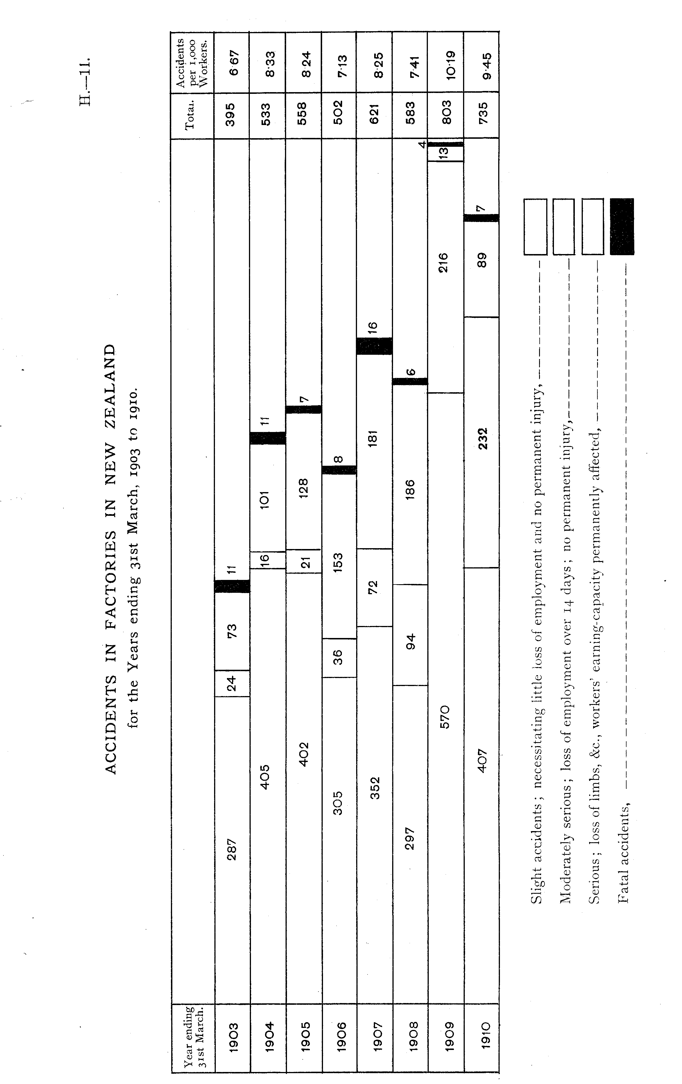 ACCIDENTS IN FACTORIES IN NEW ZEALAND for the Years ending 31st March, 1903 to 1910.