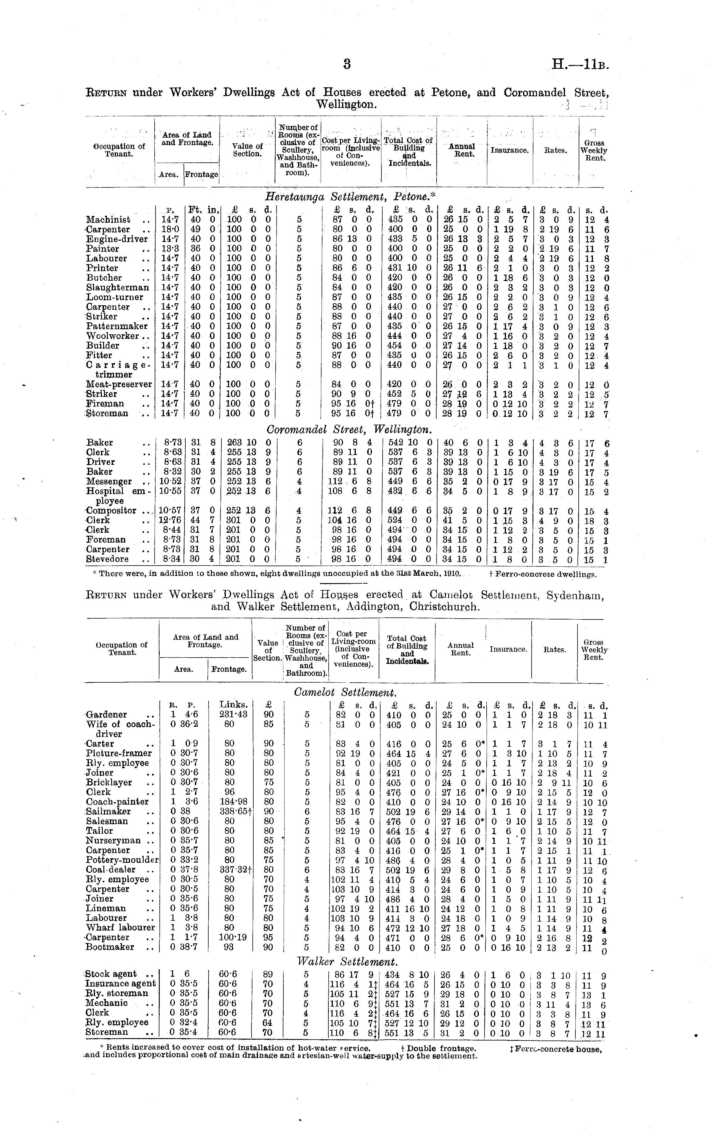 Return under Workers' Dwellings Act of Houses erected at Petone, and Coromandel Street, Wellington.