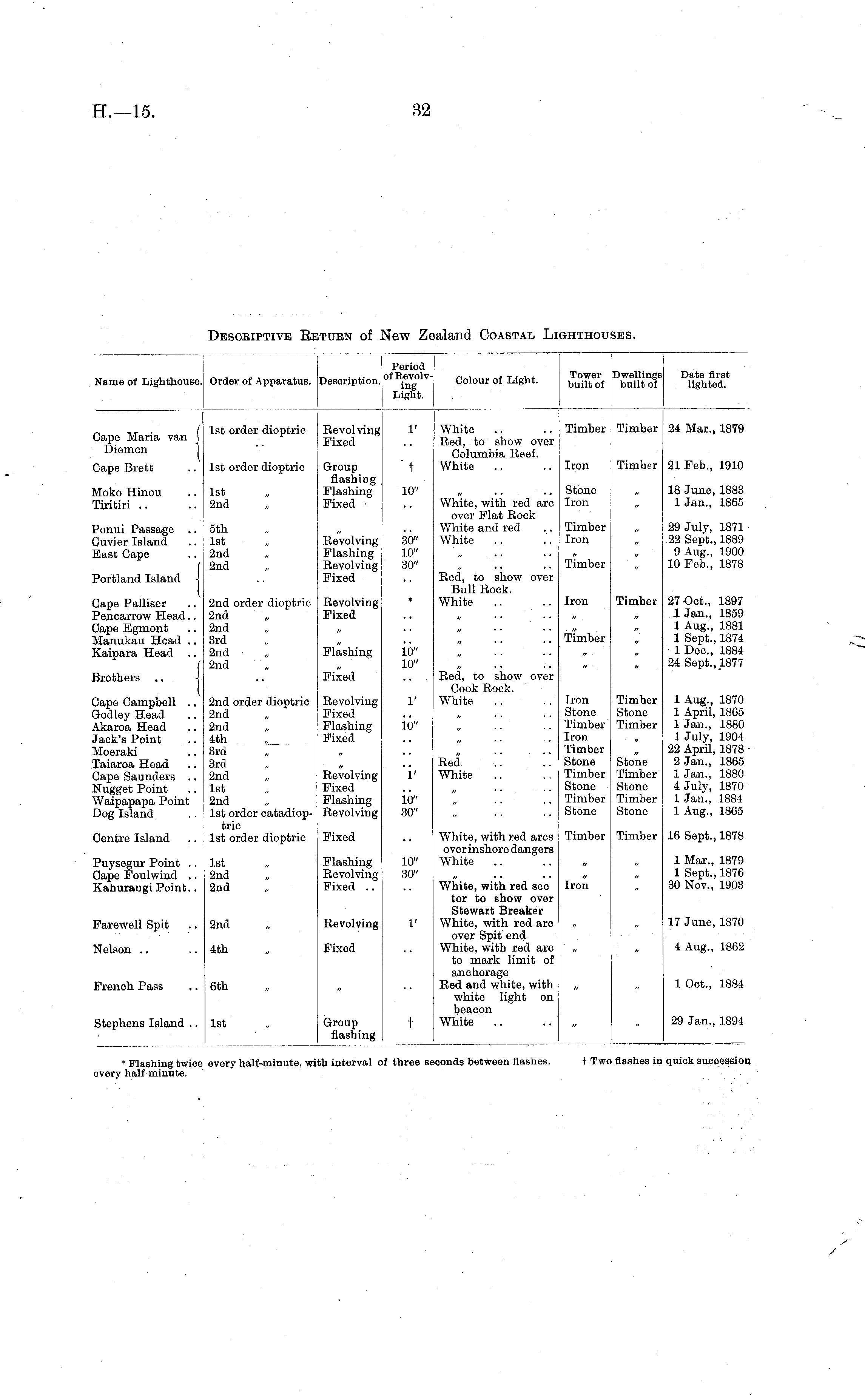 Descriptive Return of New Zealand Coastal Lighthouses.