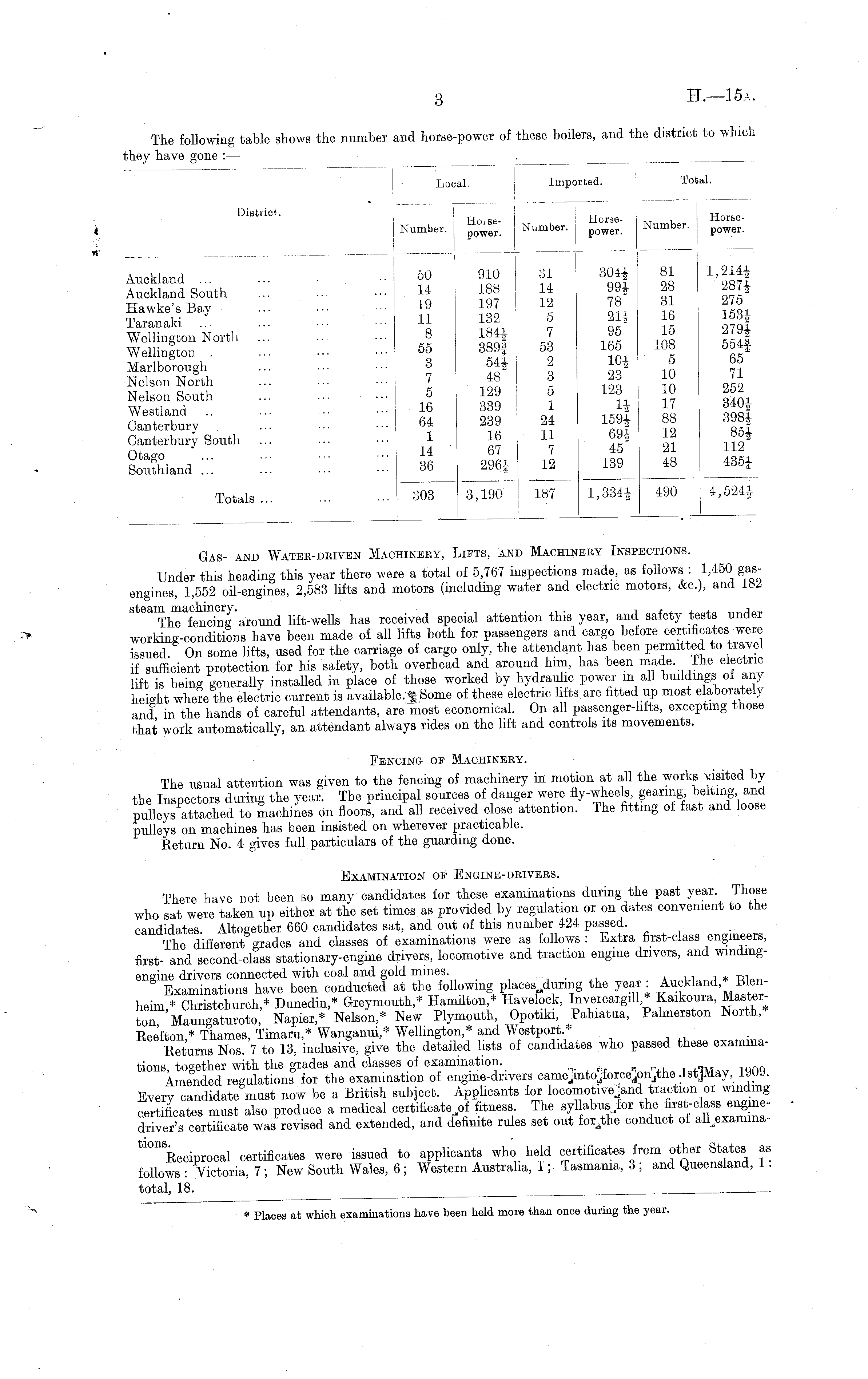 Loi -■al. I:up< irted. To: Horse- ,- , „ Number. power. >al. District. Auckland ... Auckland South Hawke's Bay Taranaki Wellington North ... Wellington Marlborough Nelson North Nelson South Westland Canterbury Canterbury South Otago Southland ... Number. 50 14 19 11 8 55 3 7 5 16 64 1 14 ' 36 power, j Number ' 910 31 188 14 197 12 132 j 5 184i 1 7 389-| i 53 54i I 2 48" 3 129 5 339 1 239 24 16 11 67 i 7 2961 i 12 3041 81 99+ 28 78" 31 21„ ! 16 95 15 165 108 10-1 5 23 10 123 10 li 17 1591 i 88 69i 12 45" 21 139 48 Horfcepower. 1,214$ 287| 275 1531 279* 554| 65 71 252 340i 398i 851 112 4351 Totals ... 303 3,190 187 l,334i 490 4,524i