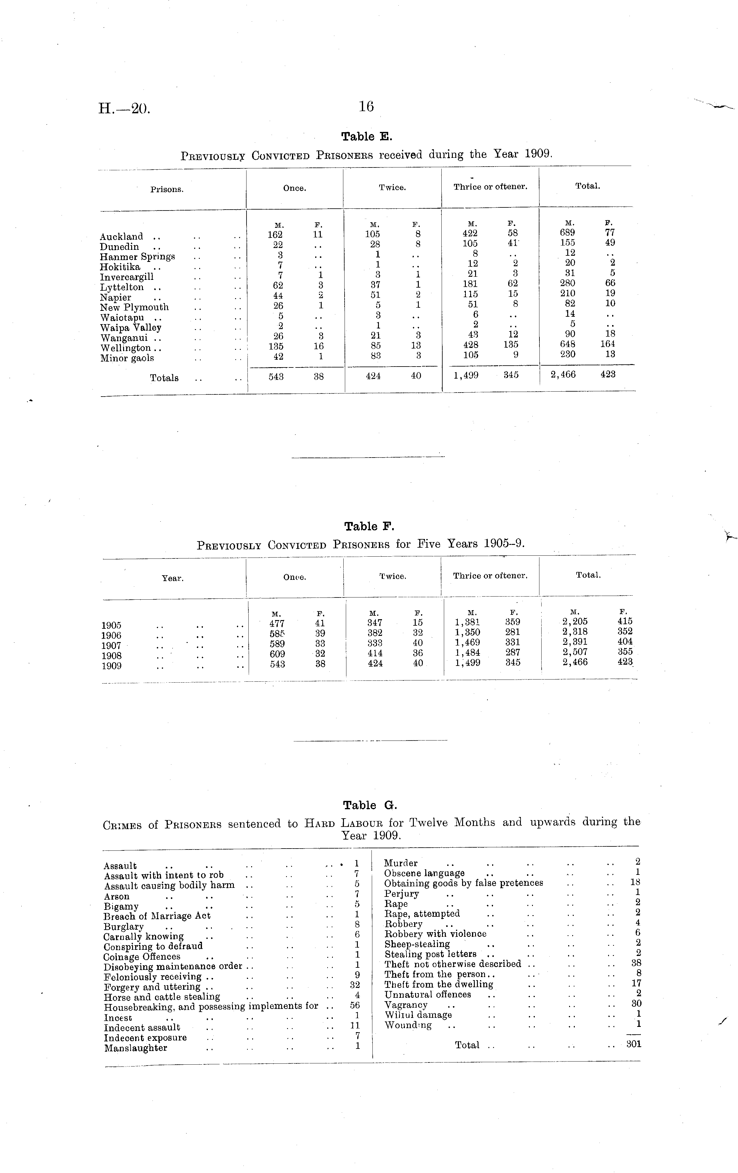 Table F. Previously Convicted Prisoners for Five Years 1905-9.