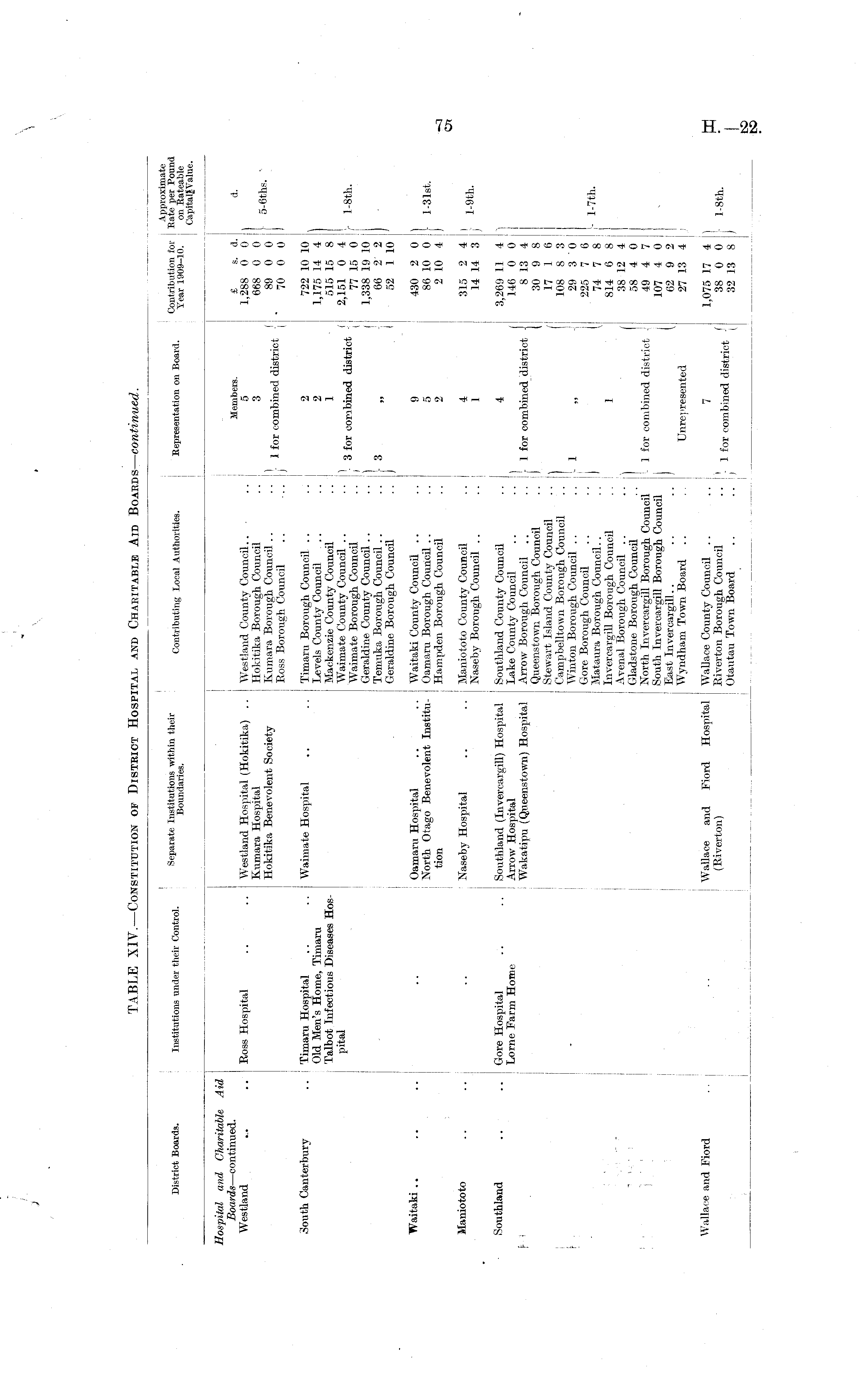 District Boards. Institutions under their Control. Separate Institutions within their Boundaries. Contributing Local Authorities. Representation on Board. Approximate Contribution for j Rate per Pound Year 1909-10. j on Rateable Capital|,Value. Hospital and Charitable Aid Boards —continued. Westland ... .. Ross Hospital .. .. Westland Hospital (Hokitika) .. Kumara Hospital Hokitika Benevolent Society Members. £ s. d. d. Westland County Council.. ■ .. 5 1,288 0 0 \ Hokitika Borough Council .. 3 668 0 0 " I _ „,, , Kumara Borough Council .. .. ) ., ,. , ,. , . , ( 89 0 0 o-Whs. r> t> v. -i r 1 tor combined district , • _ A „ ,. Ross Borough Council .. -.. j I /0 0 0 I Timaru Borough Council .. .. 2 722 10 10 Levels County Council ... .. 2 1,175 14 4 | Mackenzie County Council .. 1 515 15 8 [ Waimate Countv Council .. •■)•>! , ■ »,.,., f 2,151 04! . „,, Waimate Borough Council .. ( 3 for combined district ■ ?? „ r l-8th. Geraldine County Council.. .. j ( 1,338 19 10 I j Temuka Borough Council .. .. :- 3 „ -! 66 2 2 11 • Geraldine Borough Council .. ) . I 52 1 10 Waitaki County Council .. .. 9 430 2 0 j Oamaru Borough Council .. .. 5 86 10 0 l-31st. Hampden Borough Council .. 2 2 10 4 ) Maniototo County Council .. 4 315 2 4 I „ Naseby Borough Council .. .. I 1 14 14 3 j 1_y h ' Southland County Council .. 4 3,269 11 4 - Lake County Council .. .. j j 146 0 0 Arrow Borough Council .. .. :- 1 for combined district J 8 13 4 Queenstown Borough Council .. j) ( 30 9 8 Stewart Island County Council • • \\ (\ 17 1 6 Campbelltown Borough Council .. I 108 8 3 Winton Borough Council .. .. IL 1 „ J 29 3 0 Gore Borough Council .. .. | 225 7 6 . -,, Mataura Borough Council.. .. ! l { 74 7 8 j" - '*"■ Invercargill Borough Council . . I 1 814 6 8 A venal Borough Council .. .. i\ / 38 12 4 j Gladstone Borough Council . . j 58 4 0 j North Invercargill Borough Council - 1 for combined district J 49 4 7 South Invercargill Borough Council | j 107 4 0 East Invercargill.. .. .. ) { 62 9 2 Wyndham Town Board .. . . Unrepresented 27 13 4 I Wallace County Council .. .. i 7 1,075 17 4 ) Riverton Borough Council •• P i* u- j j--n. • n. f 38 0 0 l-8th. m . m t> j - 1 lor combined district i nn .« „ Otautau Town Board .. .. j J ,\ 32 13 8 ) South Canterbury .. Timaru Hospital .. .. Waimate Hospital Old Men's Home, Timaru Talbot Infectious Diseases Hospital ■ Waitaki .. .. .. .. . Oamaru Hospital .. North Otago Benevolent Institution : Maniototo .. .. .. Naseby Hospital .. Southland .. .. Gore Hospital .. .. Southland (Invercargill) Hospital Lome Farm Home I Arrow Hospital } j i Wakatipu (Queenstown) Hospital i • I t • f - - - ■■ ' - • ' ... , ! - ■ I Wallace and Fiord . , .. ! Wallace and Fiord Hospital • (Riverton) ■"■... I ;v...