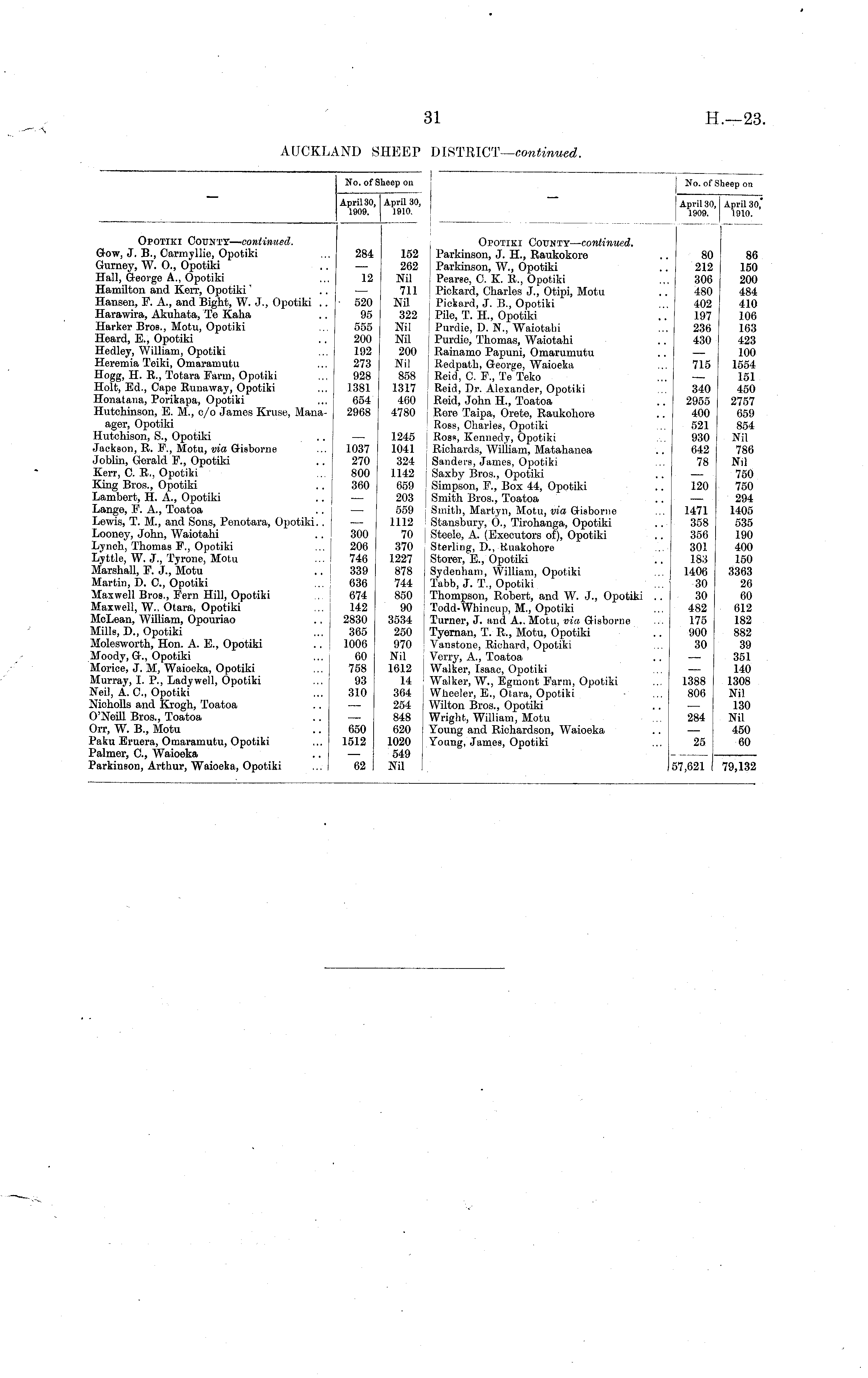 No. of Sheep on No. of Sheep on April 30, 1909. April 30, 1910. April 30, 1909. April 30, 1910. Opotiki County— continued. Gow, J. B., Carmyllie, Opotiki Gurney, W. O., Opotiki Hall, George A., Opotiki Hamilton and Kerr, Opotiki' Hansen, F. A., and Bight, W. J., Opotiki .. Harawira, Akuhata, Te Kaha Harker Bros., Motu, Opotiki Heard, E., Opotiki Hedley, William, Opotiki Heremia Teiki, Omaramutu Hogg, H. R., Totara Farm, Opotiki Holt, Ed., Cape Runaway, Opotiki Honatana, Porikapa, Opotiki Hutchinson, E. M., c/o James Kruse, Manaager, Opotiki Hutchison, S., Opotiki Jackson, R. F., Motu, via Gisborne Joblin, Gerald F., Opotiki Kerr, C. R., Opotiki King Bros., Opotiki Lambert, H. A., Opotiki Lange, F. A., Toatoa Lewis, T. M., and Sons, Penotara, Opotiki.. Looney, John, Waiotahi Lynch, Thomas F., Opotiki Lyttle, W. J., Tyrone, Motu Marshall, F. J., Motu Martin, D. O, Opotiki Maxwell Bros., Fern Hill, Opotiki Maxwell, W.. Otara, Opotiki McLean, William, Opouriao Mills, D„ Opotiki Molesworth, Hon. A. E., Opotiki Moody, G., Opotiki Morice, J. M, Waioeka, Opotiki Murray, I. P., Lady well, Opotiki Neil, A. O, Opotiki Nicholls and Krogh, Toatoa O'Neill Bros., Toatoa Orr, W. B., Motu Paku Eruera, Omaramutu, Opotiki Palmer, G, Waioeka Parkinson, Arthur, Waioeka, Opotiki 284 12 - 520 95 555 200 192 273 928 1381 654 2968 1037 270 800 360 152 262 Nil 711 Nil 322 Nil Nil 200 Nil 858 1317 460 4780 1245 1041 324 1142 659 203 559 1112 70 370 1227 878 744 850 90 3534 250 970 Nil 1612 14 364 254 848 620 1020 549 Nil Opotiki County— continued. Parkinson, J. H., Raukokore Parkinson, W., Opotiki i Pearee, C. K. R., Opotiki Pickard, Charles J., Otipi, Motu I Pickard, J. B., Opotiki Pile, T. H., Opotiki I Purdie, D. N., Waiotabi Purdie, Thomas, Waiotahi I Rainamo Papuni, Omarumutu Redpath, George, Waioeka Reid, C. F., Te Teko Reid, Dr. Alexander, Opotiki Reid, John H., Toatoa Rere Taipa, Orete, Raukohore Ross, Charles, Opotiki Ross, Kennedy, Opotiki Richards, William, Matahanea Sanders, James, Opotiki j Saxby Bros., Opotiki Simpson, F., Box 44, Opotiki Smith Bros., Toatoa j Smith, Martyn, Motu, via Gisborne Stansbury, O., Tirohanga, Opotiki Steele, A. (Executors of), Opotiki Sterling, D., Kuakohore Storer, E., Opotiki Sydenham, William, Opotiki Tabb, J. T., Opotiki Thompson, Robert, and W. J., Opotiki .. Todd-Whincup, M., Opotiki Turner, J. and A.. Motu, via Gisborne Tyernan, T. R., Motu, Opotiki Vanstone, Richard, Opotiki Verry, A., Toatoa Walker, Isaac, Opotiki ; Walker, W., Egmont Farm, Opotiki Wheeler, E., Otara, Opotiki Wilton Bros., Opotiki Wright, William, Motu Young and Richardson, Waioeka Young, James, Opotiki 80 212 306 480 402 197 236 430 715 340 2955 400 521 930 642 78 120 86 150 200 484 410 106 163 423 100 1554 151 450 2757 659 854 Nil 786 Nil 750 750 294 1405 535 190 400 150 3363 26 60 612 182 882 39 351 140 1308 Nil 130 Nil 450 60 300 206 746 339 636 674 142 2830 365 1006 60 758 93 310 1471 358 356 301 183 1406 30 30 482 175 900 30 1388 806 650 1512 284 25 62 57,621 79,132