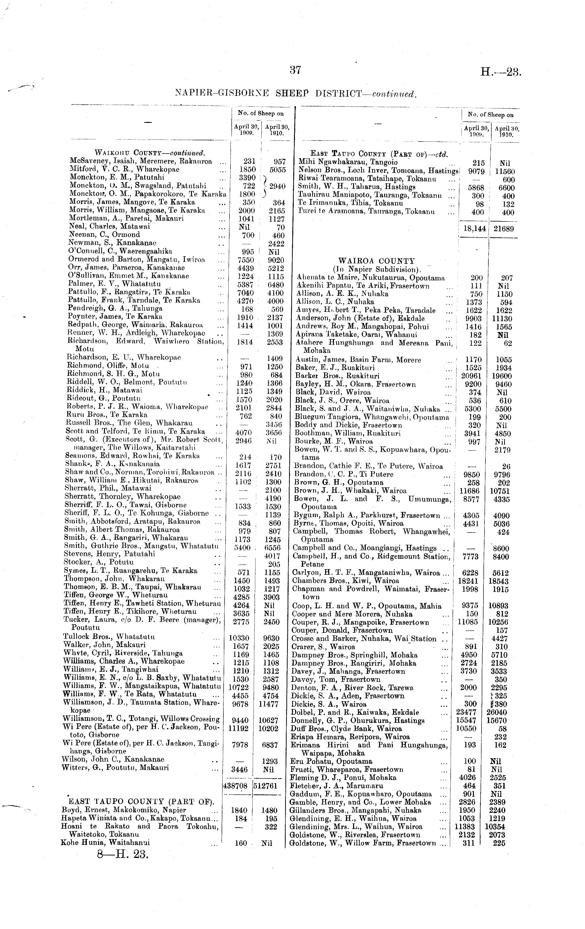 NAPIER-GISBORNE SHEEP DISTRICT— continued.