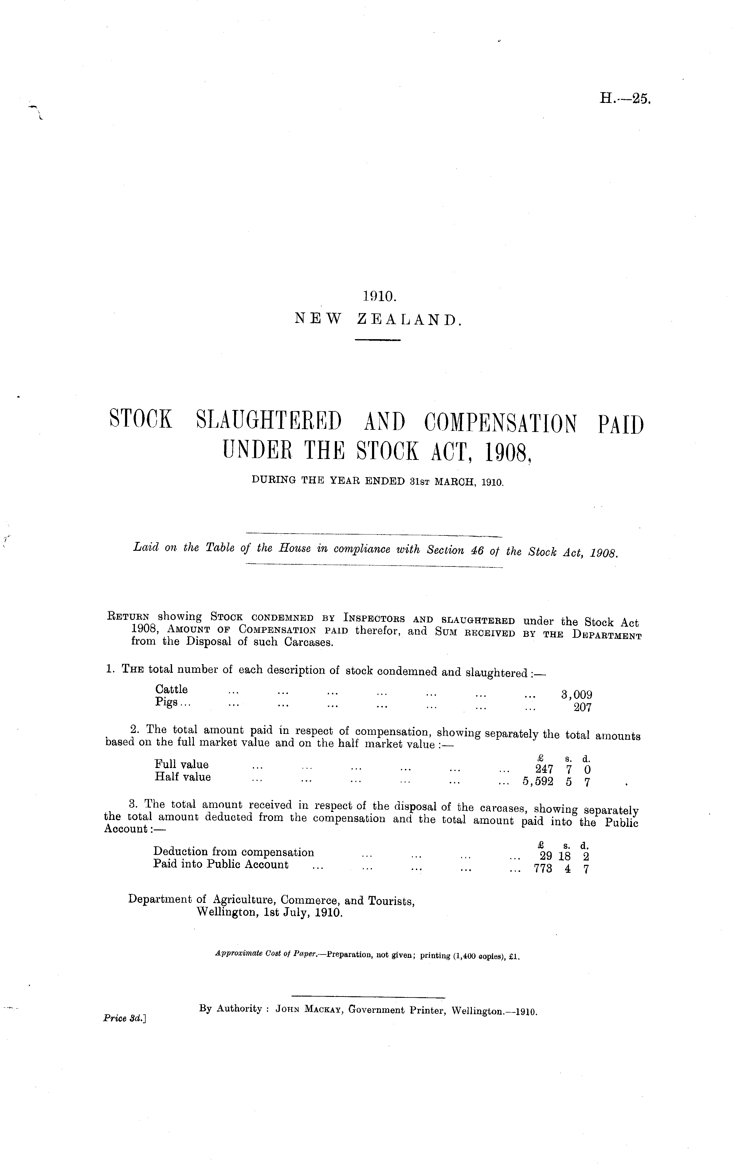 By Authority : John Mackay, Government Printer, Wellington.—-1910.