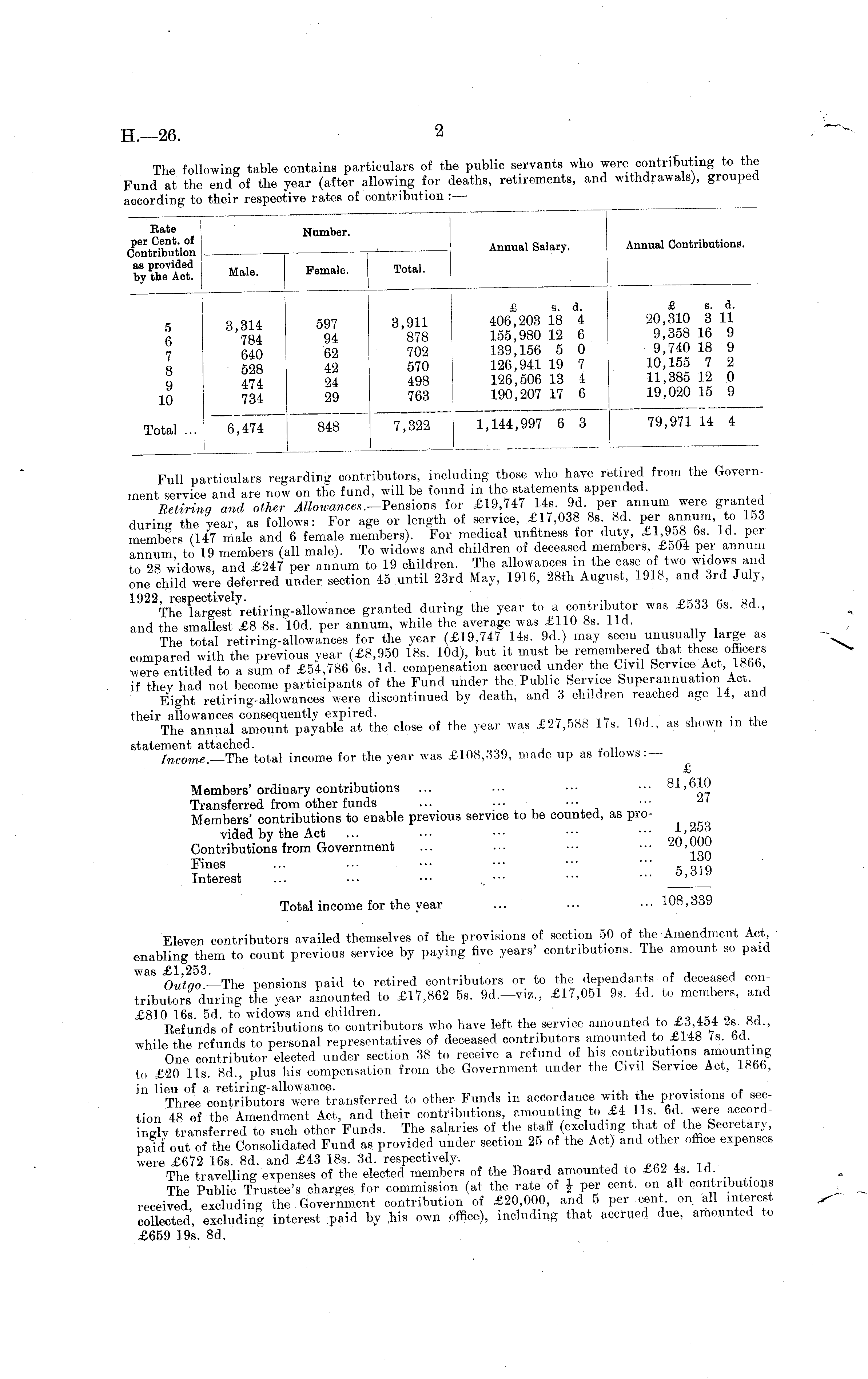 The following table contains particulars of the public servants who were contributing to the Fund at the end of the year (after allowing for deaths, retirements, and withdrawals), grouped according to their respective rates of contribution : —