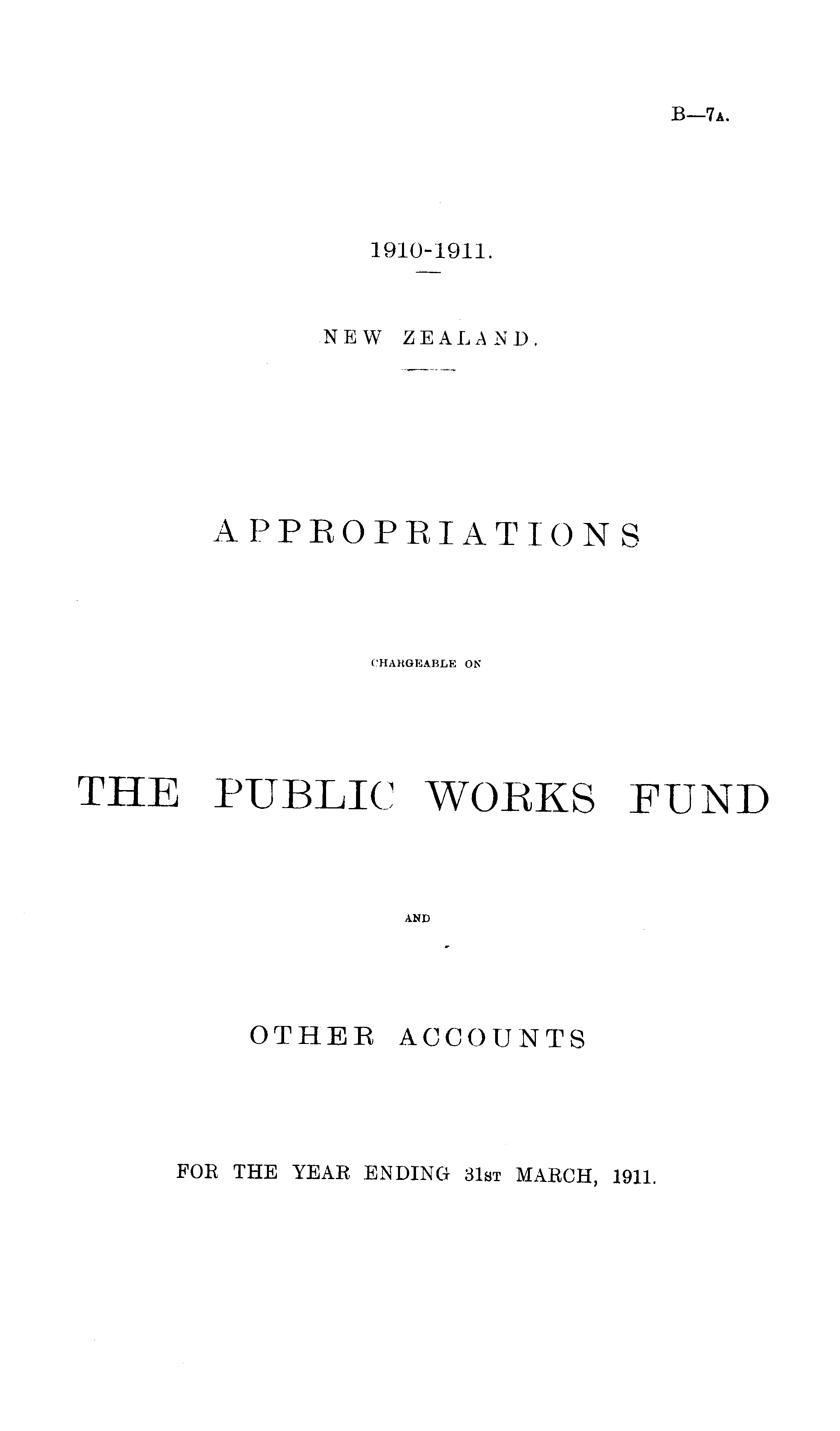 APPROPRIATIONS CHARGEABLE on THE PUBLIC WORKS FUND AND OTHER ACCOUNTS FOR THE YEAR ENDING 31st MARCH, 1911.