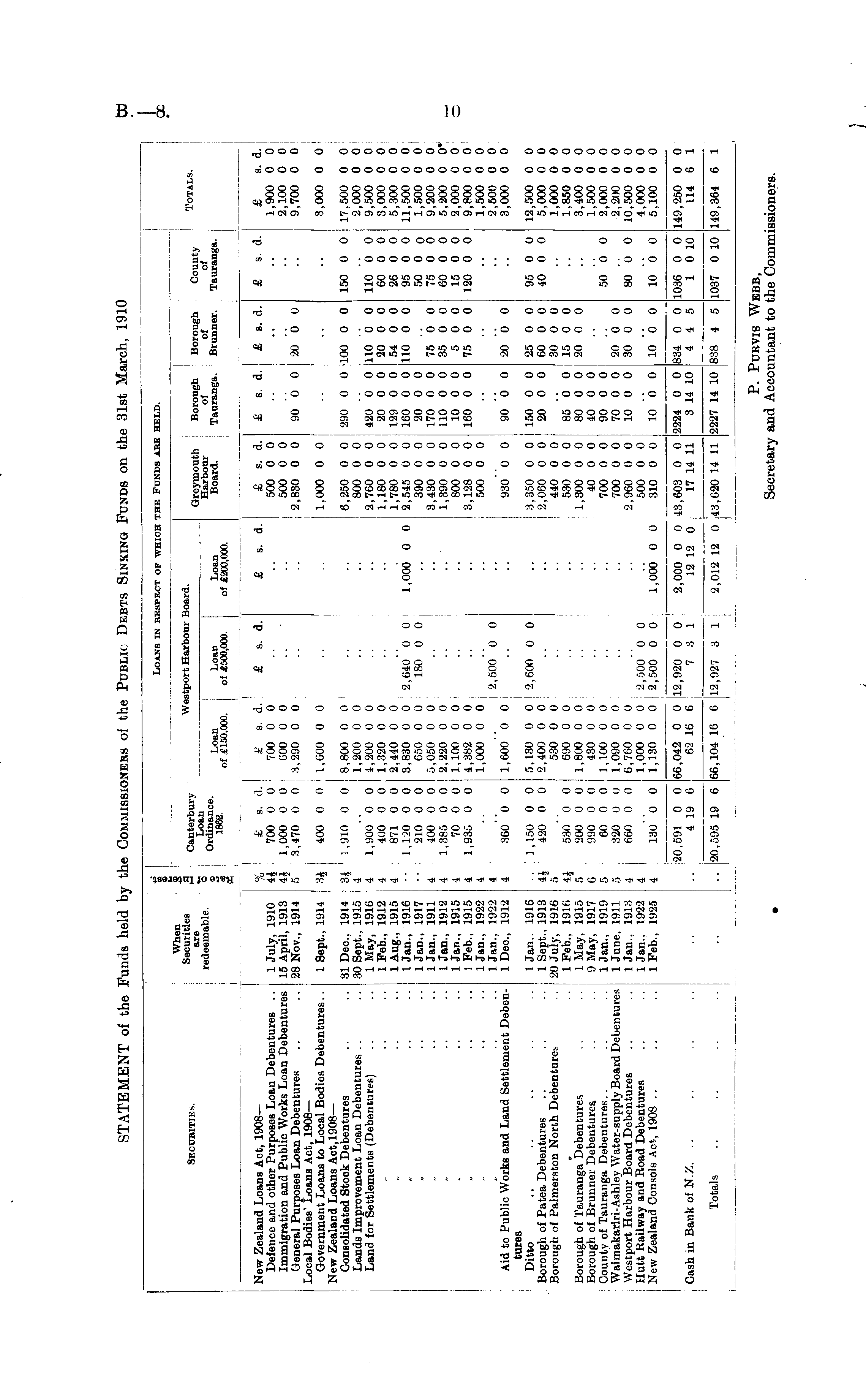 ! ! lOANS IN RESPECT OF WHICH THE 'UNDS ARE HELD. Sf.cubitiks. When Securities are redeemable. s S Canterbury Westport Harbour Loan j a Ordinance, , „ „ T 1««. of fxjoooo ol £500,000. £ s. d. £ s. d. £ s. A. *i 700 0 0 700 0 0 4£ 1,000 0 0 600 0 0 .. ' 5 3,470 0 0 3,290 0 0 Westport Harbour Board. Ho sard. Loan of £200,000. £ s. d Greymouth Borough Borough Harbour of of Board. Tauranga. Brunner. d. £ s. d. £ s. d. £ s. d 500 0 0 500 0 0 2,830 0 0 90 0 0 20 0 0 County of Tauranga. Totals. ! New Zealand Loans Act, 1908— Defence and other Purposes Loan Debentures .. Immigration and Public Works Loan Debentures General Purposes Loan Debentures Local Bodies' Loans Act, 1908 — Government Loans to Local Bodies Debentures.. New Zealand Loans Act, 1908— Consolidated Stock Debentures Lands Improvement Loan Debentures Land for Settlements (Debentures) 1 July, 1910 15 April, 1913 28 Nov., 1914 1 Sept., 1914 3J I 400 0 0 1,600 0 0 £ s. d. 1,000 0 0 £ f>. d. 500 0 0 500 0 0 2,830 0 0 1,000 0 0 £ s d. ! .. 90 6 0 £ s. d. 20 0 0 £ s. d. £ s. d. 1,900 0 0 2,100 0 C 9,700 0 C 3,000 0 0 31 Dec, 1914 30 Sept.. 1915 1 May, 1916 1 Feb., 1912 1 Aug., 1915 1 Jan., 1916 1 Jan., 1917 1 Jan., 1911 1 Jan., 1912 1 Jan., 1915 I Feb., 1915 1 Jan., 1922 1 Jan., 1922 1 Dec, 1912 3$ ' 1,910 0 0 8,800 0 0 ' 4" .. 1,200 0 0 4 1,900 0 0 i,200 0 0 4 400 0 0 1,320 0 0 4 871 0 0 2.440 0 0 •■ 1,1-20 0 0 3,830 I) 0 2,640 0 0 210 0 0 650 0 0 180 0 0 4 400 0 0 5,050 0 0 4 1,385 0 0 2,220 0 0 4 70 0 0 1,100 0 0 ! 4 1,93;", 0 0 4,882 0 0 4 .. 1,000 0 0 4 .. .. 2,500 0 0 4 360 0 0 1,600 0 0 1,000 0 ( 1,000 0 0 6,250 0 0 290 0 0 100 0 0 800 0 0 2,760 0 0 420 0 0 110 0 0 1,180 0 0 20 0 0 20 0 0 1,780 0 0 129 0 0 54 0 0 0 2,545 0 0 160 0 0 110 0 0 390 0 0 20 0 0 3,430 0 0 170 0 0 75 0 0 1,390 0 0 110 0 0 35 0 0 800 00 10 00 500 3,128 0 0 160 0 0 75 0 0 500 0 0 930 0 0 90 0 0 20 0 0 6,250 0 0 800 0 0 2,760 0 0 1,180 0 0 1,780 0 0 2,545 0 0 390 0 0 3,430 0 0 1,390 0 0 800 0 0 3,128 0 0 500 0 0 290 0 0 1 420 0 0 20 0 0 129 0 0 160 0 0 20 0 0 170 0 0 110 0 0 10 0 0 160 0 0 100 0 0 110 0 0 20 0 0 54 0 0 110 0 0 75 0 0 35 0 0 5 0 0 75 0 0 150 0 0 110 0 0 60 0 0 26 0 0 95 0 0 50 0 o 75 0 0 60 0 0 15 0 0 120 0 0 17,500 0 C 2,000 0 C 9,500 0 C 3,000 0 C 5,300 0 C 11,500 0 C 1,500 0 C 9,200 0 C 5,200 0 C 2,000 0 C 9,800 0 C 1,500 0 C 2,500 0 C 3,000 0 C Aid to Public Works and Land Settlement Debentures Ditto Borough of Patea Debentures Borough of Palmerston North Debentures Uan.. 1916 1 Sept., 1913 20 July, 1916 1 Feb., 1916 1 Hay, 1915 9 May, 1917 1 Jan., 1919 1 June, 1911 1 Jan.. 1918 1 Jan.. 1922 1 Feb., 1925 .. 1,150 0 0 5,130 0 0 2,600 0 0 4£ 420 0 0 2,400 0 0 r,~ .. 530 0 0 4J 530 0 0 690 0 0 5 200 0 0 1,800 0 0 6 990 0 0 430 0 0 5 60 0 0 1,100 0 0 5 320 0 0 1,090 0 0 4 660 0 0 6,760 0 0 4 .. 1,000 0 0 2,500 0 0 4 130 0 0 1,130 0 0 2,500 0 0 1,000 0 ( 1,000 0 0 3,350 0 0 150 0 0 25 0 0 2,060 00 20 006000 440 0 0 .. 30 0 0 530 0 0 85 0 0 15 0 0 1,800 0 0 80 0 0 20 0 0 40 0 0 40 0 0 700 0 0 90 0 0 700 0 0 70 0 0 20 0 0 2,960 0 0 10 0 0 30 0 0 500 0 0 0 310 0 0 10 0 0 10 0 0 930 0 0 3,350 0 0 2,060 0 0 440 0 0 530 0 0 1,300 0 0 40 0 0 700 0 0 700 0 0 2,960 0 0 500 0 0 310 0 0 90 0 0 150 0 0 20 0 0 20 0 0 25 0 0 60 0 0 30 0 0 15 0 0 20 0 0 95 0 0 40 0 0 12,500 0 C 5,000 0 C 1,000 0 C 1,850 0 C 3,400 0 C 1,500 0 C 2,000 0 C 2,200 0 0 10,500 0 0 4,000 0 0 5,100 0 0 Borough of Tauranga Debentures Borough of Brunner Debentures County of Tauranga Debentures.. Waimakariri-Ashley Water-supply Board Debentures Westport Harbour Board Debentures Hutt Railway and Eoad Debentures New Zealand Consols Act, 1908 85 0 0 80 0 0 40 0 0 90 0 0 70 0 0 10 0 0 50 6 0 20 6 0 30 0 0 80 0 0 10 0 0 10 0 0 10 0 0 Cash in Bank of N.Z. 20,591 0 0 66,042 0 0 12,920 0 0 4 19 6 62 16 6 7 3 1 66,042 0 0 12,920 0 0 62 16 6 7 3 1 2,000 0 I 12 12 C 2,000 0 0 12 12 0 2,000 0 0 12 12 0 0 43,603 0 0 2224 0 0 834 0 0 0 17 14 11 3 14 10 4 4 5 43,603 0 0 17 14 11 2224 0 0 3 14 10 834 0 0 4 4 5 1036 0 0 1 0 10 149,250 0 114 6 Totals .. 20,595 19 6 66,104 16 6 12,927 3 1 36,104 16 6 12,927 3 1 2,012 12 ( 2,012 12 0 2,012 12 0 0 43,620 14 11 2227 14 10 1838 4 5 43,620 14 11 2227 14 10 [838 4 5 1037 0 10 149,364 6