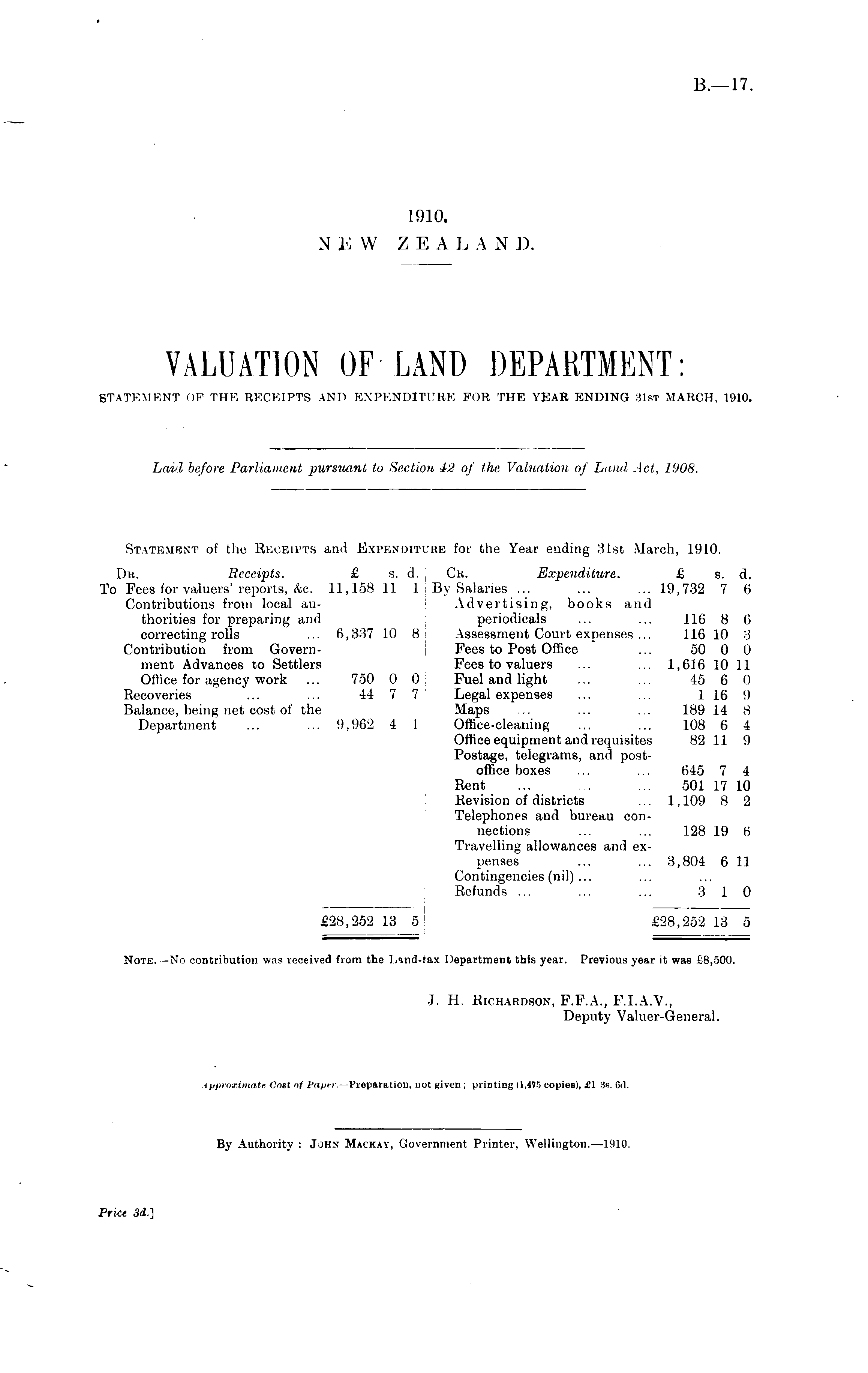 J. H. Richardson, F.F.A., F.1.A.V., Deputy Valuer-General.
