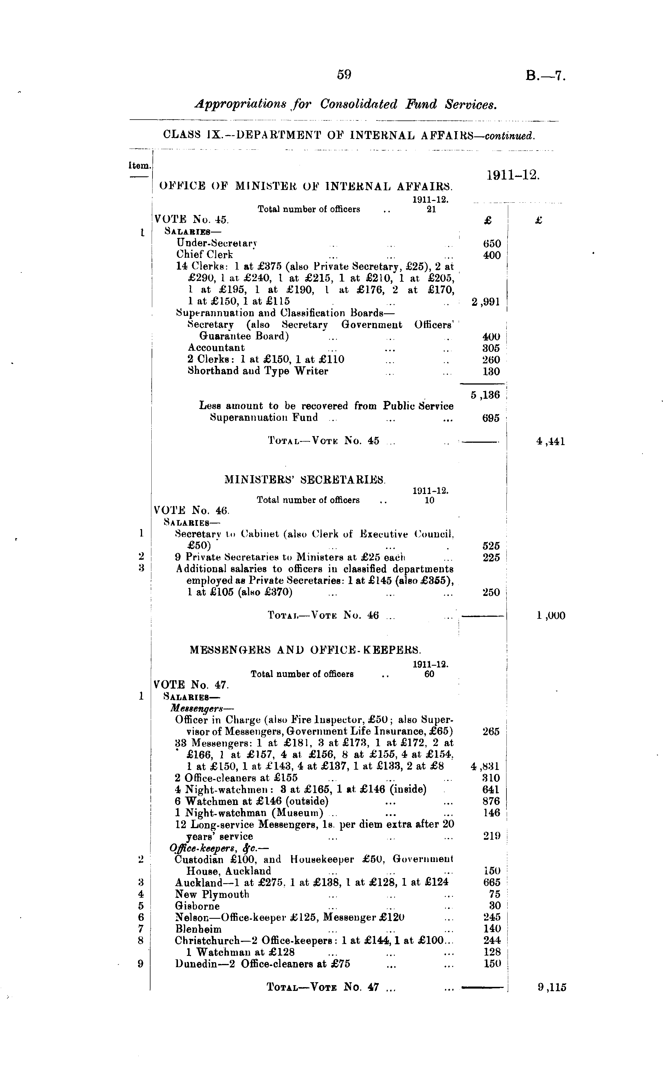 CLASS IX.-DEPARTMENT OF INTERNAL AFFAIRS—continued.