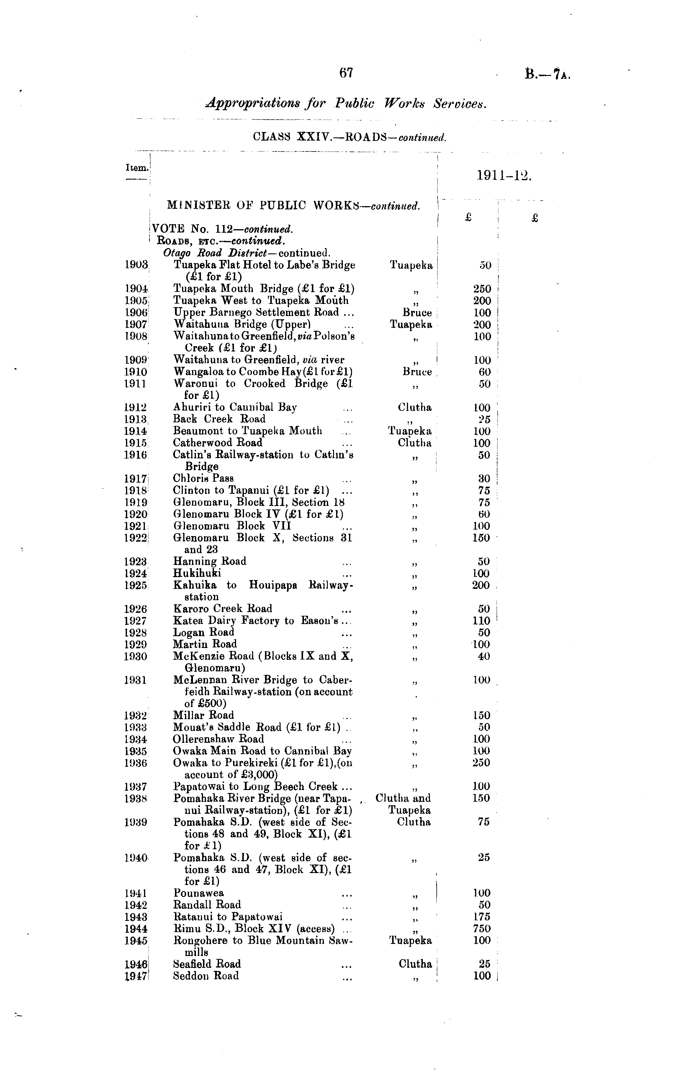 Item. 191 1-1 ± MINISTER OF PUBLIC WORKS —continued. VOTE No. 112— continued. Roads, etc. — continued. Otago Road District— continued. 1903 Tuapeka Plat Hotel to Labe's Bridge Tuapeka (£1 for £1) L904 Tuapeka Mouth Bridge (£1 for £1) 1905 Tuapeka West to Tuapeka Mouth ,. L906 Upper Barnego Settlement Road ... Bruce L9O7 Waitahuna Bridge (Upper) ... Tuapeka 1908 Waitahunato Greenfield, via Poison's „ Creek (£1 for £1; 1909 Waitahuna to Greenfield, via river „ 1910 Wangaloa to Coombe Hay(£1 tbr£l) Bruce 1911 Waronui to Crooked Bridge (£1 for £1) 1.912 Ahuriri to Cannibal Bay ... Clutha 1913 Back Creek Road 1914 Beaumont to Tuapeka Mouth ... Tuapeka 1915 Catherwood Road ... Clutha L916 Catlin's Railway-station to Catlm's „ Bridge 1917 Chloris Pass 1918 Clinton to Tapanui (£1 for £1) ... 1919 Glenotnaru, Block III, Section 18 ,, 1920 Glenomaru Block IV (£1 for £1) 1921 Glenomaru Block VII 1922 Glenomaru Block X, Sections 31 and 23 1923 Hanning Road ... „ 1924 Hukihuki 1925 Kahuika to Houipapa Railway- „ station 1926 Karoro Creek Road ... „ 1927 Katea Dairy Factory to Bason's.. „ 1928 Logan Road 192!) Martin Road 1980 McKenzie Road (Blocks IX and X, Glenomaru) 1931 McLennan River Bridge to Caber- ,, feidh Railway-station (on account of £500) 1932 Millar Road 1933 Mouat's Saddle Road (£1 for £l) .. i !))i I Ollerenshaw Road ... „ 1935 Owaka Main Road to Cannibal Bay „ 1986 Owaka to Purekireki (£1 for £l),(on account of £3,000) 1!)37 Papatowai to Long Beech Creek ... ,, l!*:is Pomahaka River Bridge (near Tapa- , Clutha and nui Railway-station), (£l for £1) Tuapeka 1939 Pomahaka S.D. (west side of Sec- Clutha tions 48 and 49, Block XI), (£1 for £ 1) 1940 Pomahaka S.D. (west side of sec- „ tions 46 and 47, Block XI), (£1 for £1) 1941 Pounawea ... „ 1942 Randall Road ... „ 1943 Ratanui to Papatowai ... „ 1944 Rimu S.D., Block XIV (access) ... 1945 Rongohere to Blue Mountain Saw- Tuapeka mills 1946, Seafield Road ... Clutha 1947 Seddon Road ... „ £ 50 250 200 100 200 100 100 60 50 ! 100 25 100 100 50 80 75 75 60 100 150 50 100 200 50 110 50 100 40 100 150 50 100 100 250 100 150 75 25 100 50 175 750 100 25 100