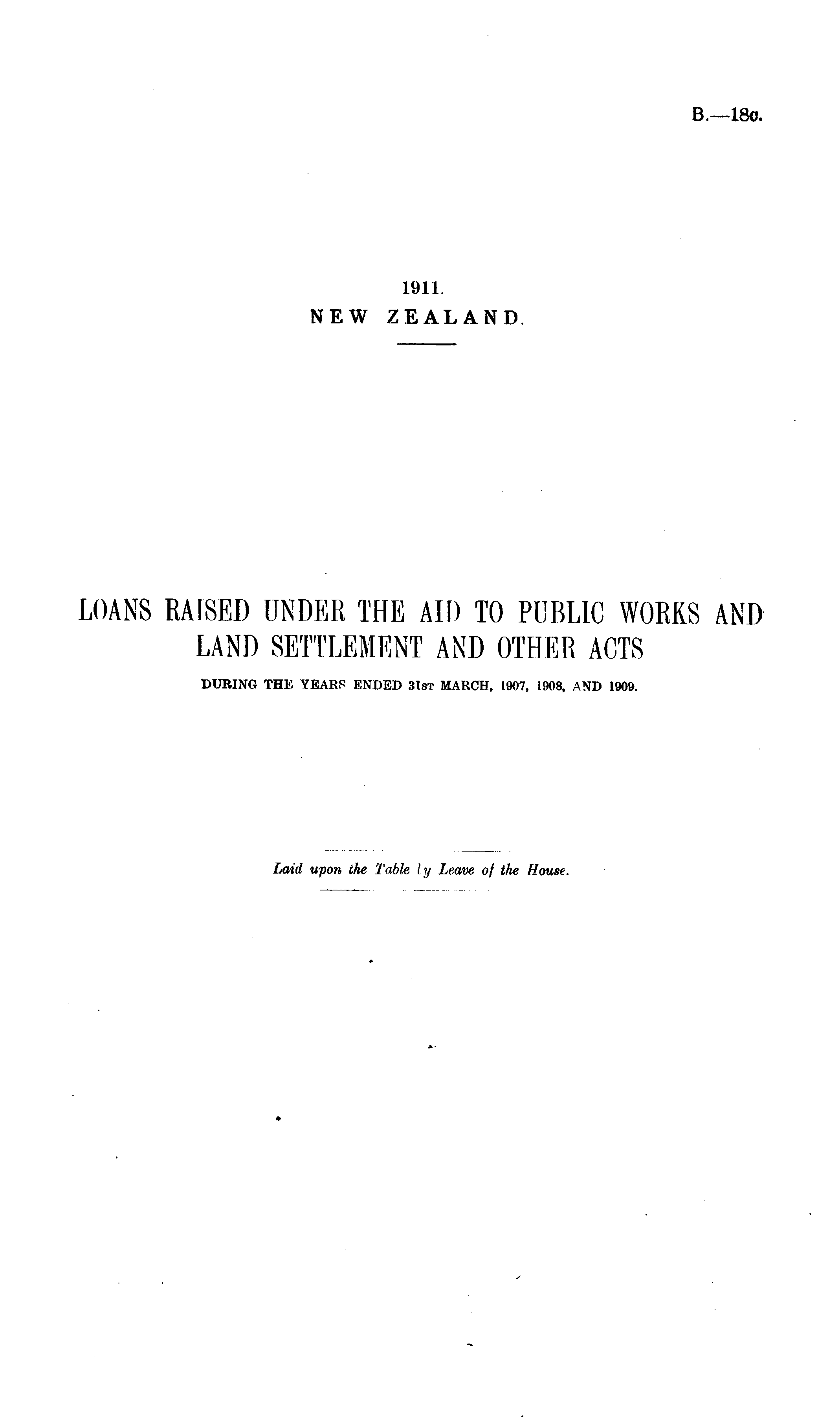 LOANS RAISED UNDER THE AID TO PUBLIC WORKS AND LAND SETTLEMENT AND OTHER ACTS DURING THE YEAR ENDED 31st MARCH, 1907, 1908, AND 1909.