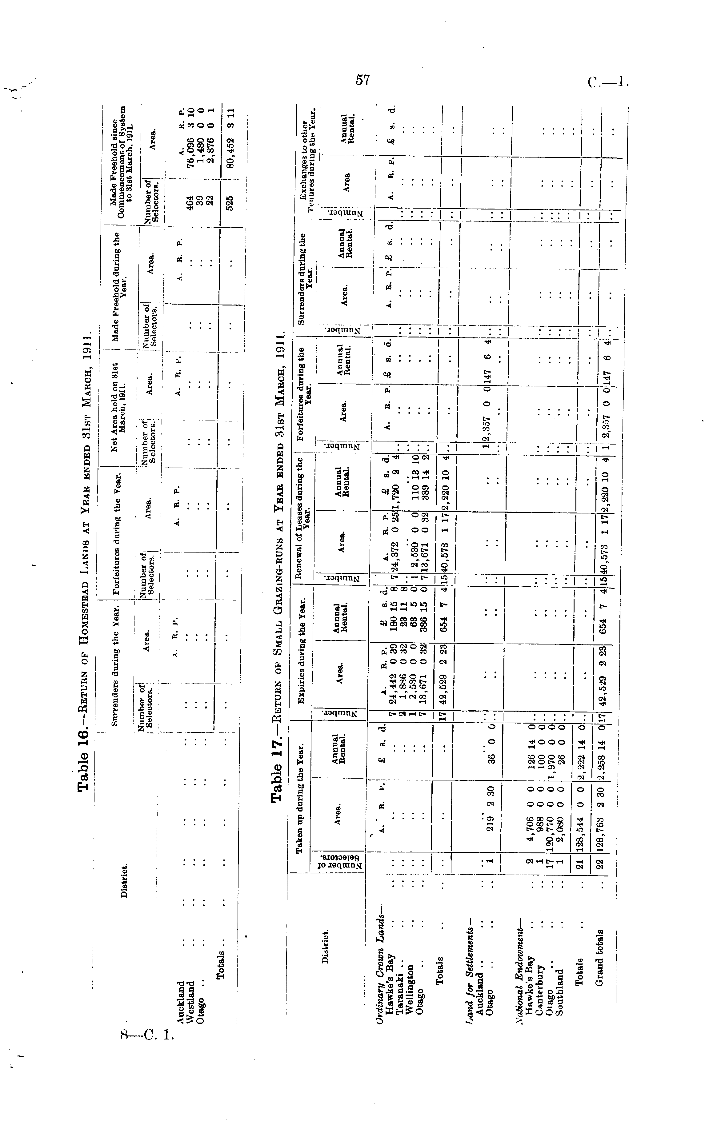 Table 16.—Return of Homestead Lands at Year ended 31st March, 1911.
