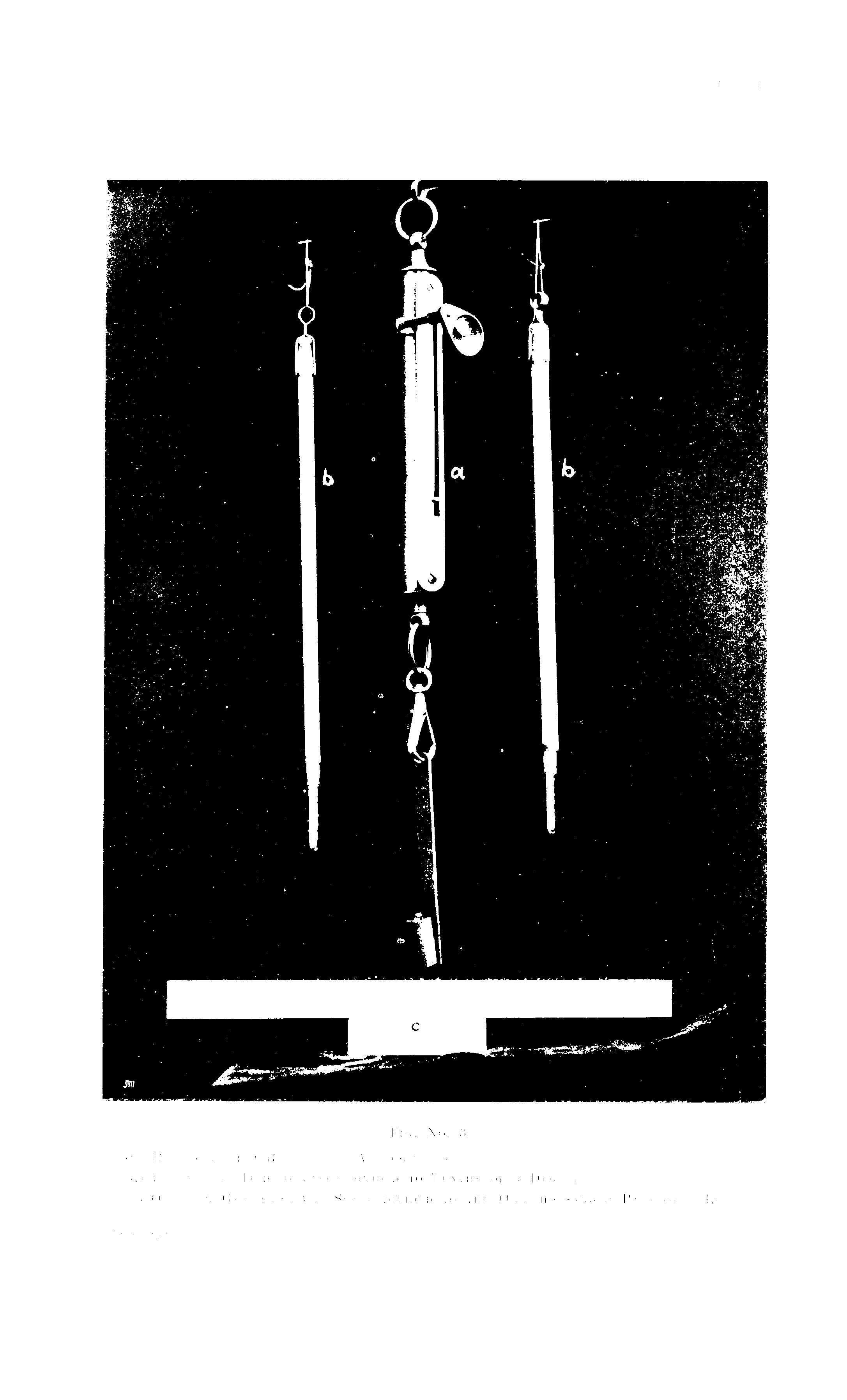Fig. No. 3. (a.) Balance, with Reader and Attachments. (6.) Centigrade Thermometers divided to Tenths of a Degree. (c.) One-link German-silver Scale divided to the One-thousandth Part of a Line. Face page -'-'.]