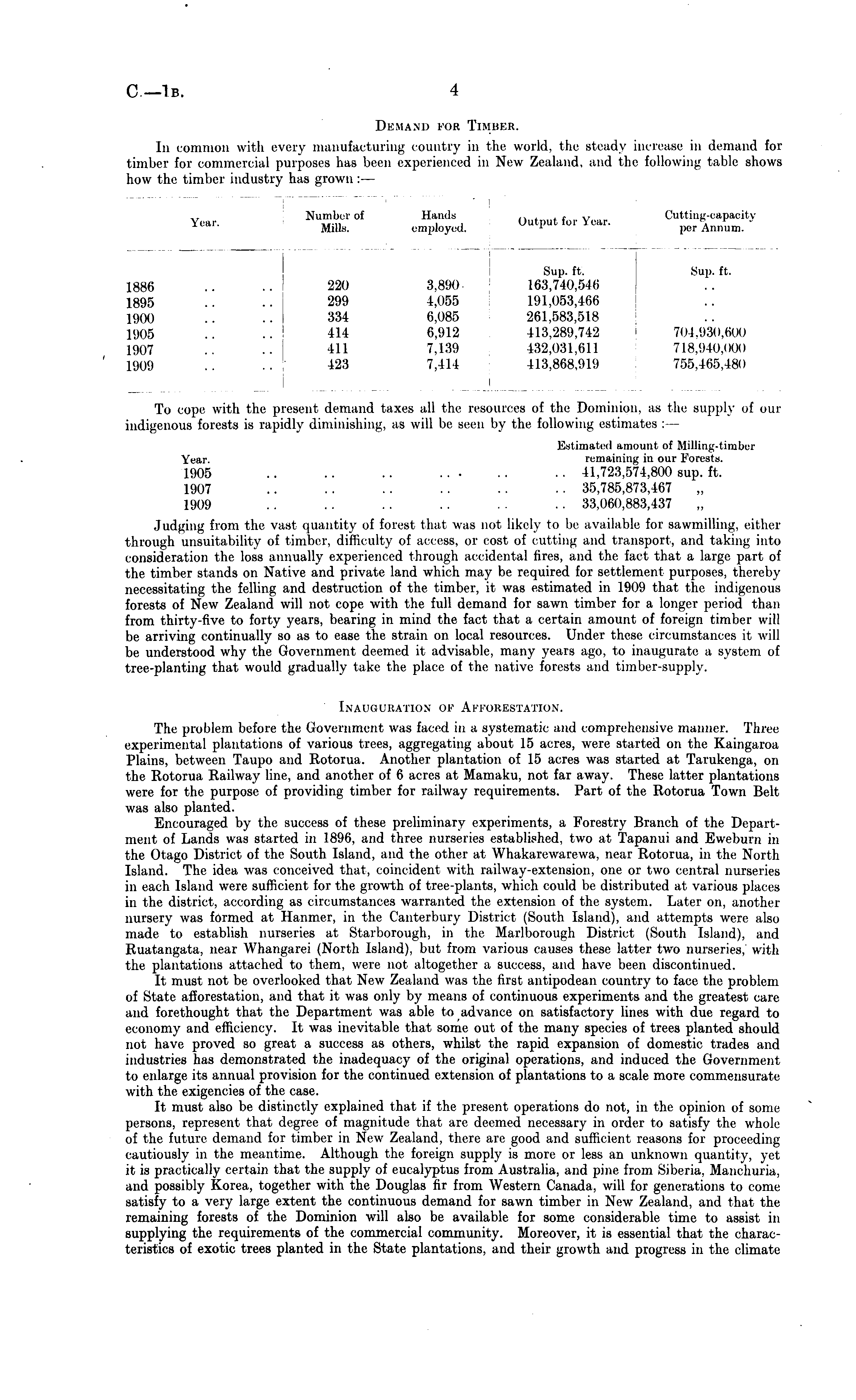 i Year. Number of Mills. Hands employed. Output tor fear-Cutting-oapaoity per Annum. 886 895 900 905 'JOT 909 i 220 299 334 414 411 423 3,890 4,055 6,085 6,912 7,139 7,414 Sup, ft. 163,740,546 191,053,466 261,583,518 413,289,742 432,031,611 413,868,919 Sup. ft. 704,930,600 718,940,000 755,465,480 i