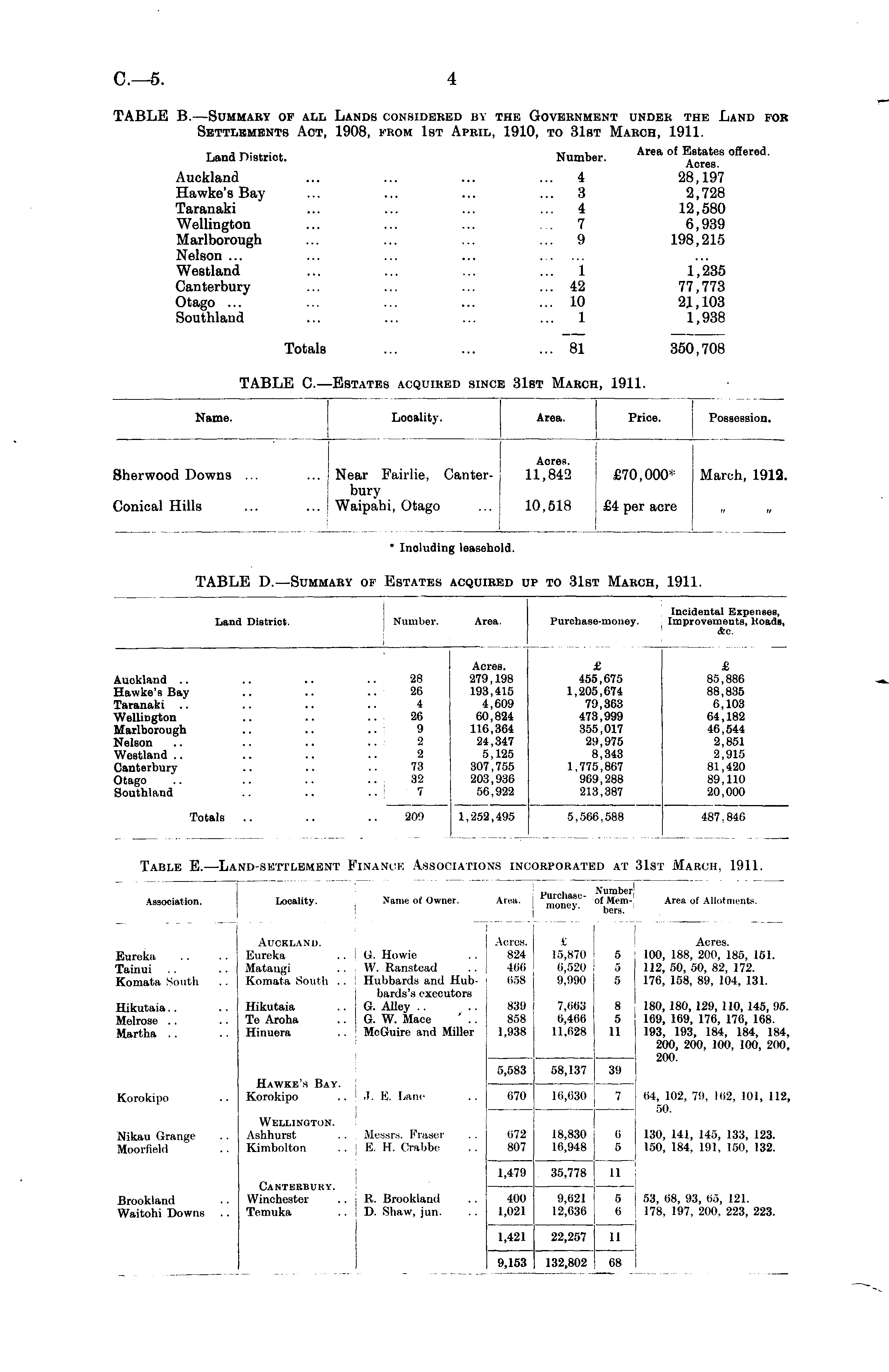 TABLE D.—Summary of Estates acquired up to 31st March, 1911.