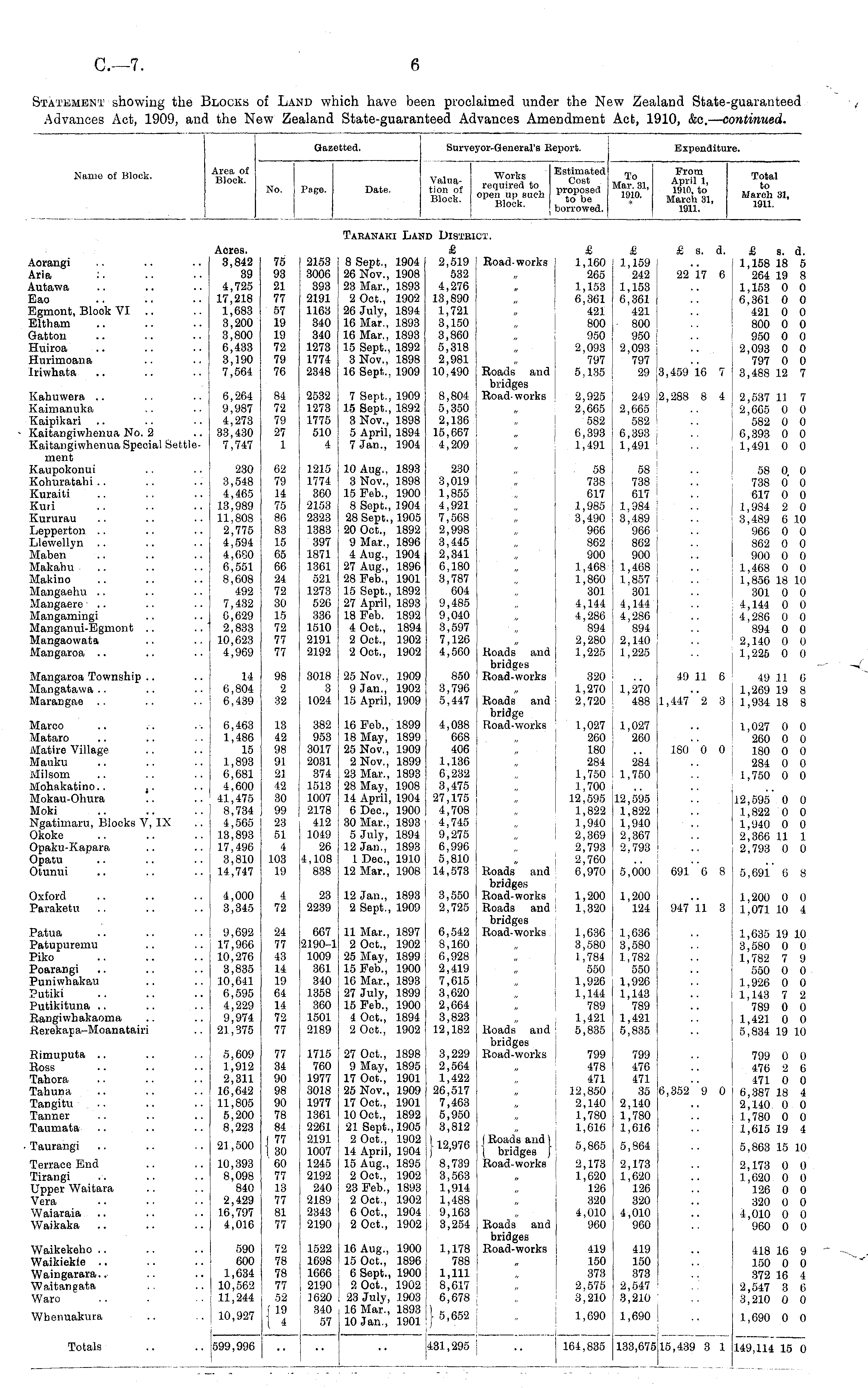 Statement showing the Blocks of Land which have been proclaimed under the New Zealand State-guaranteed Advances Act, 1909, and the New Zealand State-guaranteed Advances Amendment Act, 1910, &c. — continued.