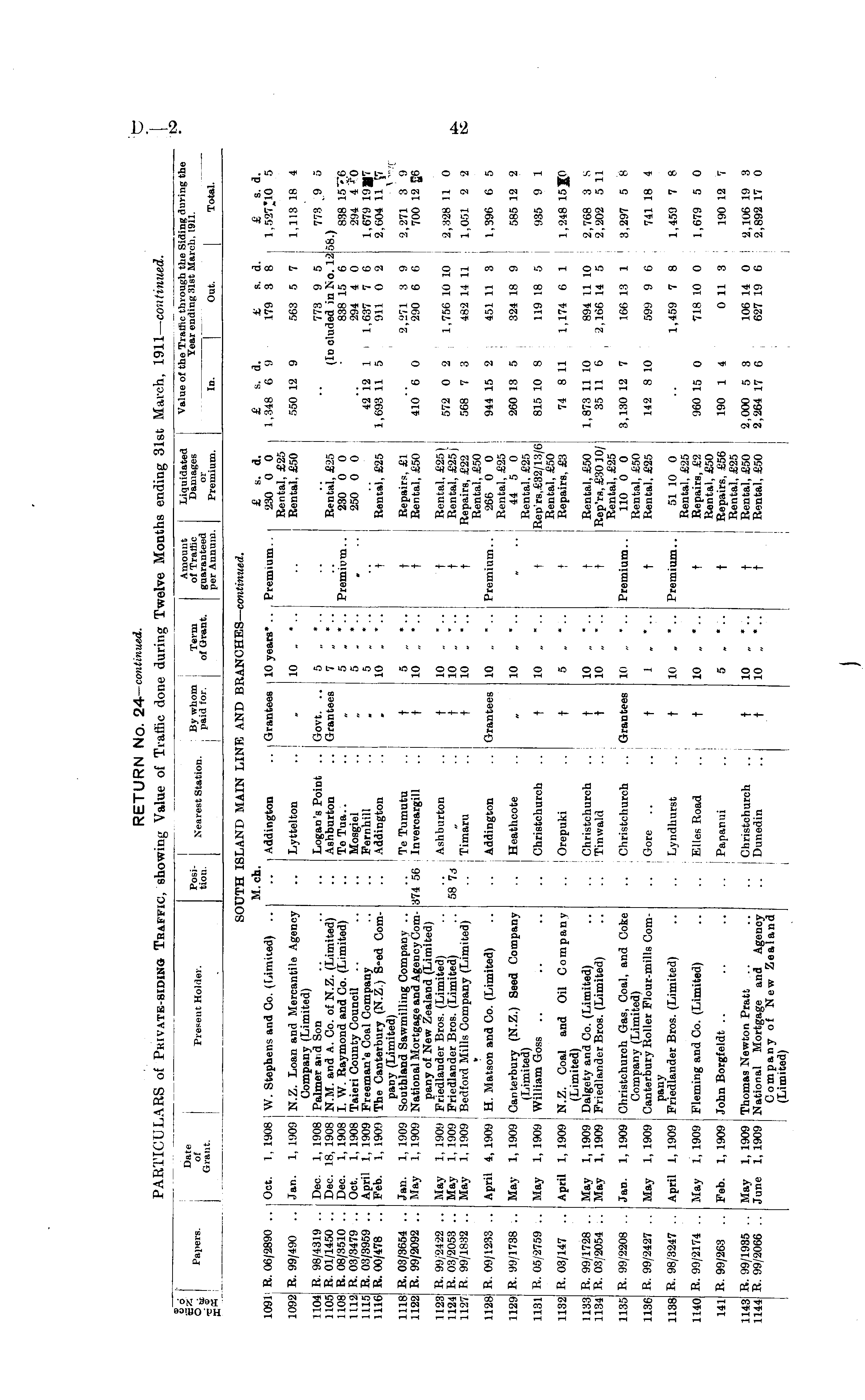 RETURN No. 24-continued. PARTICULARS of Private-siding Traffic, showing Value of Traffic done during Twelve Months ending 31st March, 1911— continued.