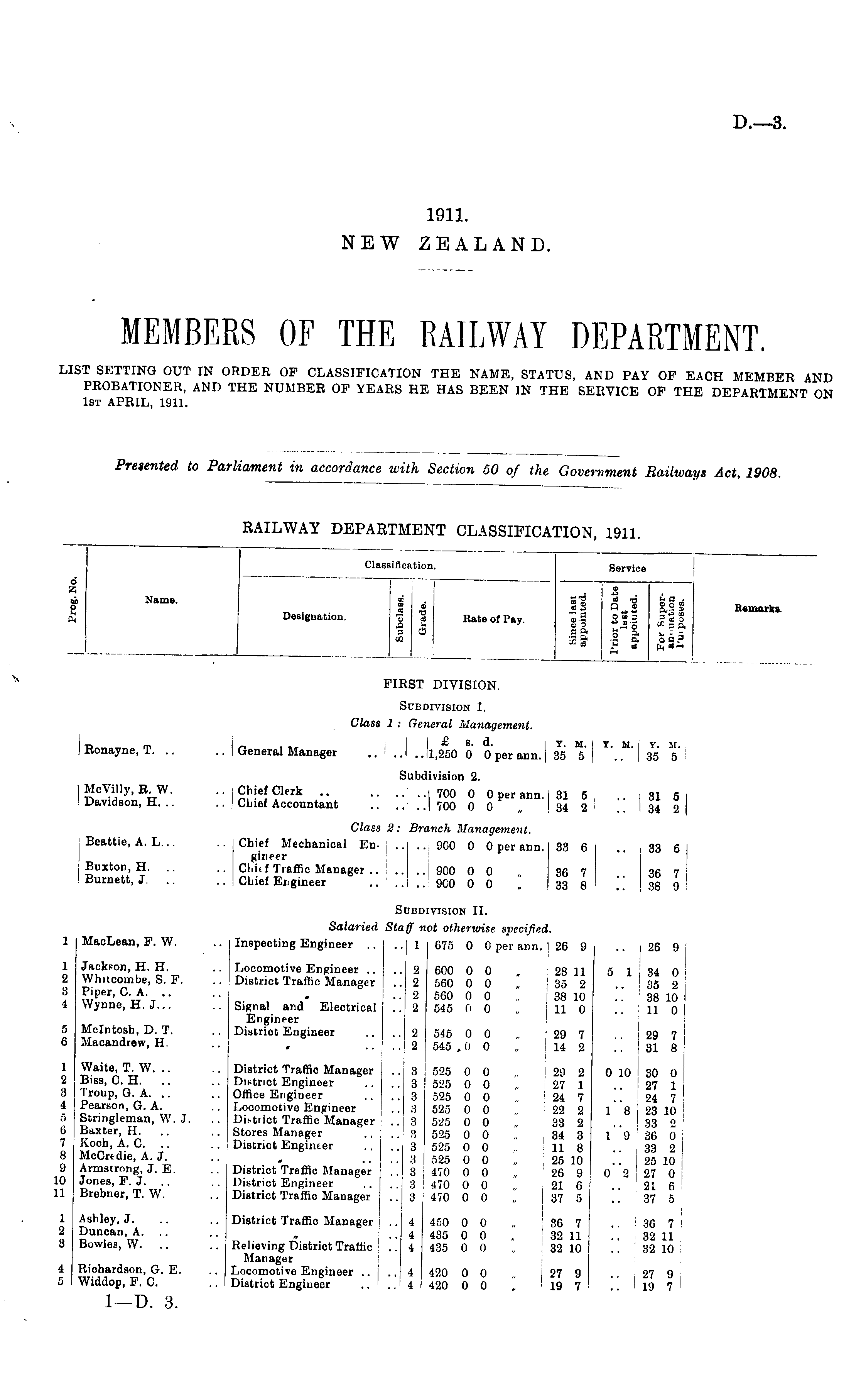 RAILWAY DEPARTMENT CLASSIFICATION, 1911.