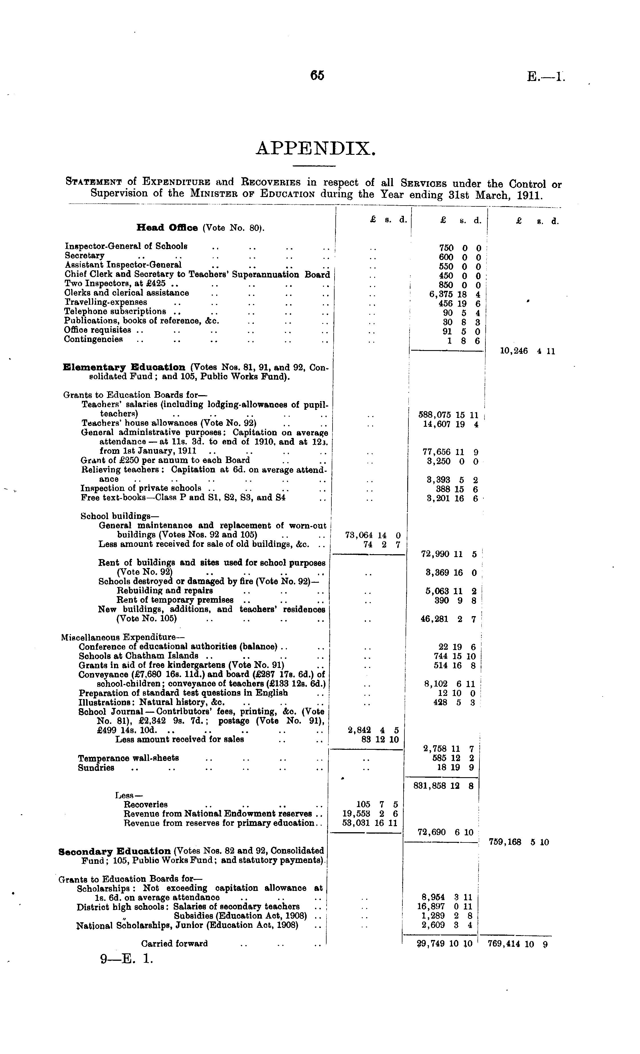 Statement of Expenditure and Recoveries in respect of all Services under the Control or Supervision of the Minister of Education during the Year ending 31st March, 1911.