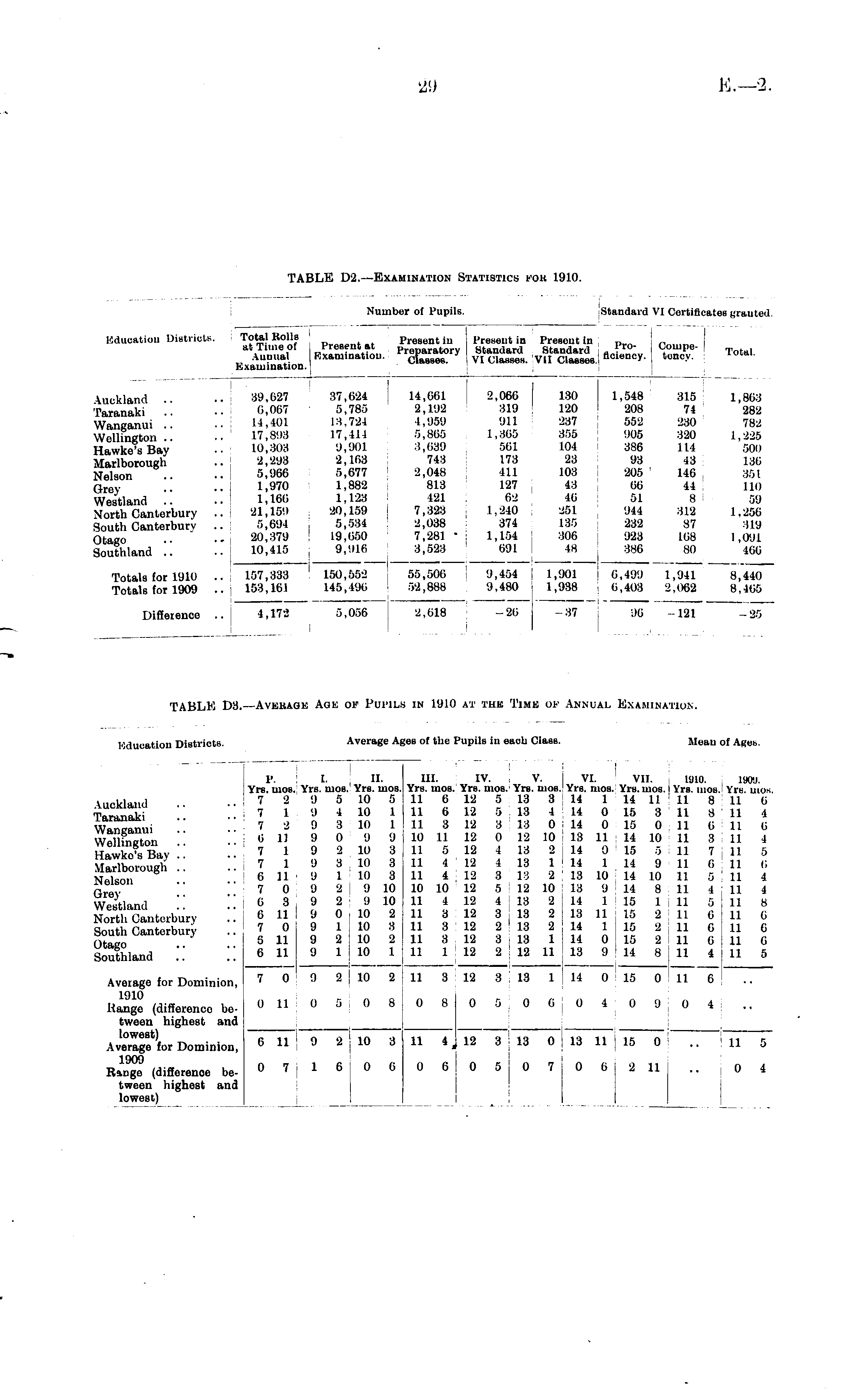 TABLE D3.— Average Age of Pupils in 1910 at the Time of Annual Examination.