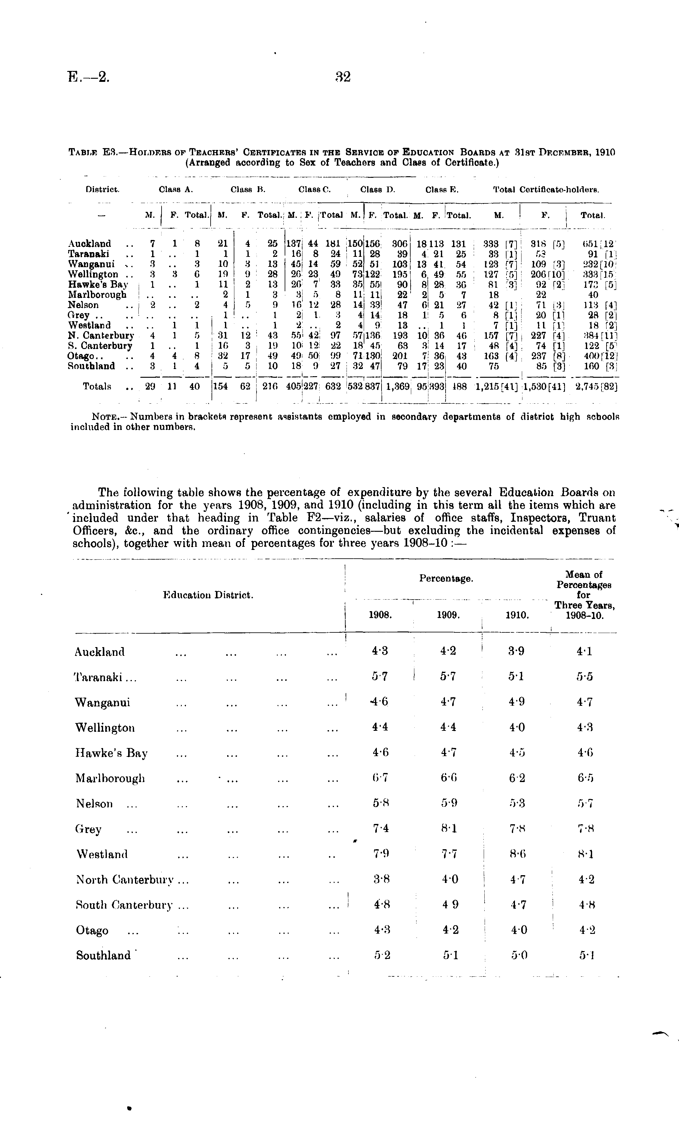 Table E3.—Holders of Teachers' Certificates in the Service of Education Boards at 31st December, 1910