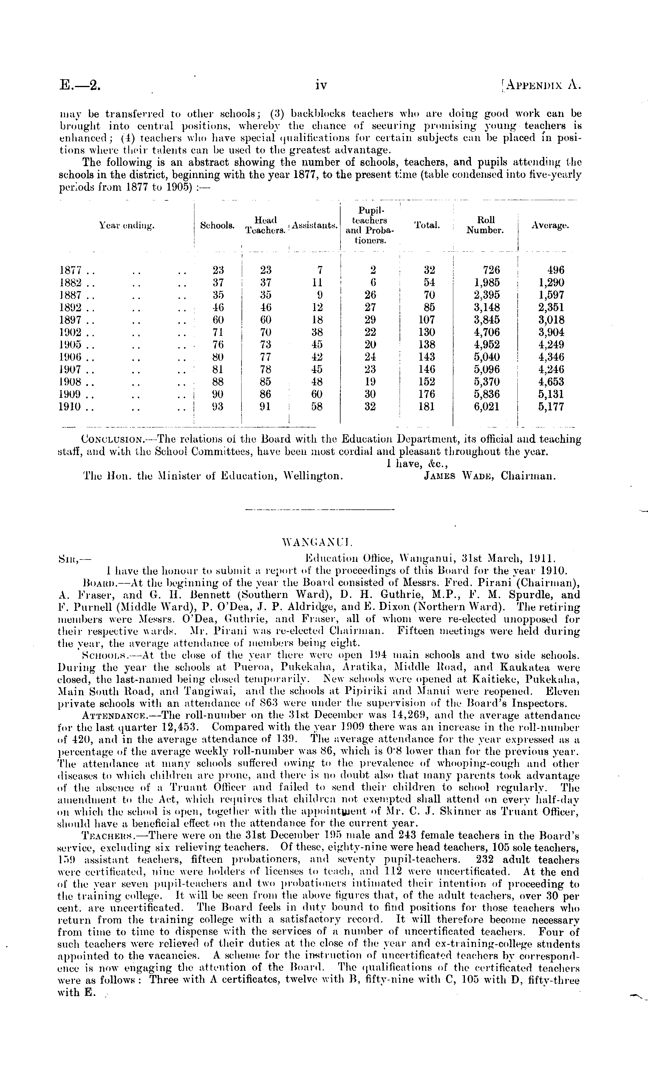 i Yγ,ii- ending. ,, i i Head t - , Schools. ,„ , Ai iistants. Teachers. Pupilteachers and Probationers. Total. Roll Number. Average. ■ I is,, .. 1882 .. 1887 J 892 .. 1897 .. 1902 .. 1905 .. L906 .. L9O7 .. 1908 .. L909 .. 1910 .. 23 23 7 37 37 11 35 35 9 46 46 12 (id 60 IS 71 70 38 .. 76 73 45 80 77 42 81 78 45 88 85 48 90 86 60 93 91 58 2 (i 26 27 29 22 20 24 23 19 30 32 32 54 70 85 107 130 138 143 146 152 176 181 726 1,985 2.395 3,148 3,845 4,706 4,952 5,040 5,096 5,370 5,836 6,021 496 1,290 1,597 2,351 3,018 3,904 4.249 4,346 4,246 4,653 5,131 5,177 J