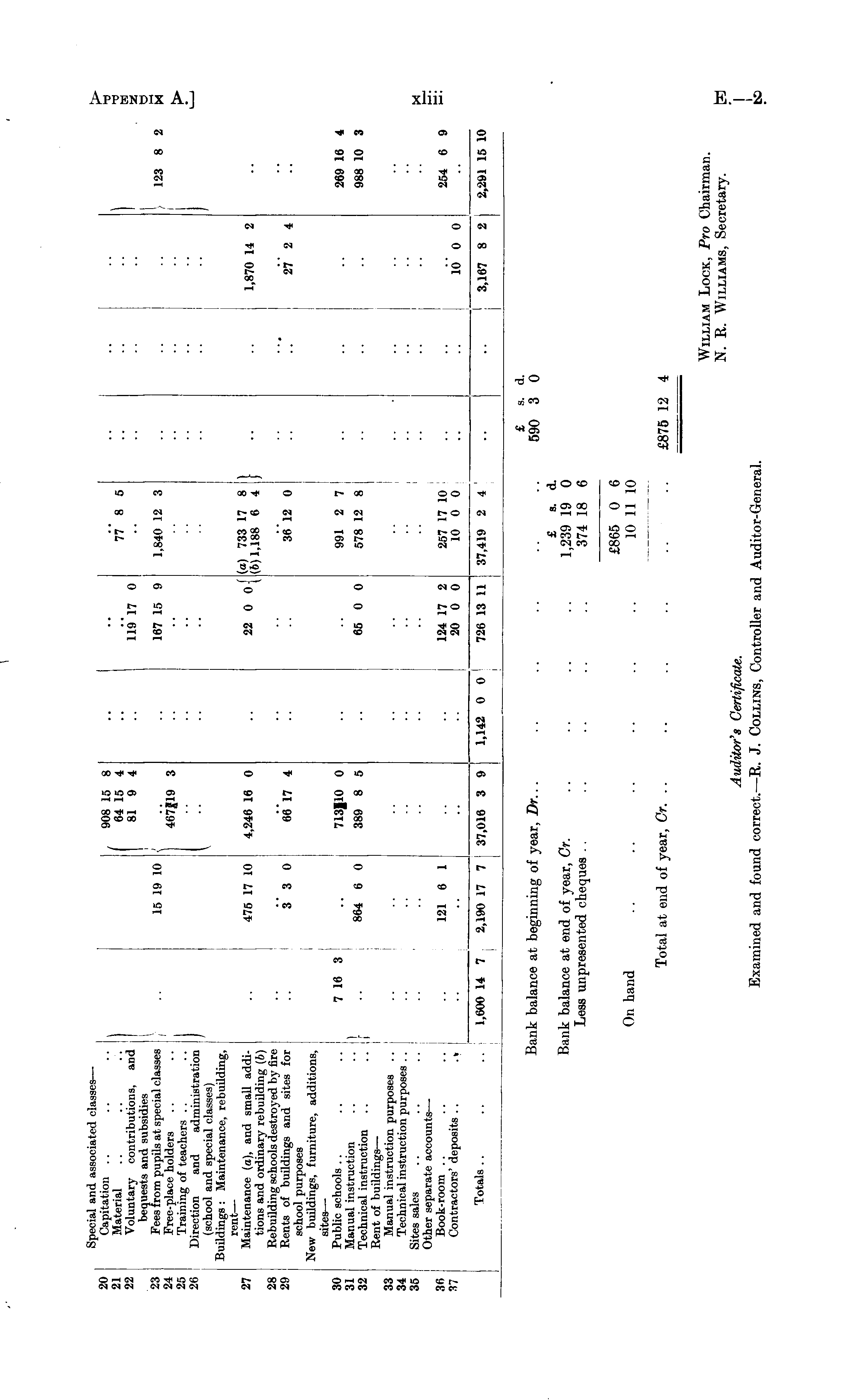 27 28 29 20 21 22 23 24 26 Special and associated classes — Capitation .. .. .. , Material .. .. .. J Voluntary contributions, and [ bequests and subsidies Fees from pupils at special classes Free-place holders .. Training of teachers Direction and administration I (school and special classes) Buildings : Maintenance, rebuilding, rent — Maintenance (o), and small additions and ordinary rebuilding (b) Rebuilding schools destroyed by fire Rents of buildings and sites for school purposes New buildings, furniture, additions, sites — Public schools Manual instruction .. • • I Technical instruction .. .. I Rent of buildings — Manual instruction purposes .. Technical instruction purposes .. Sites sales Other separate accounts — Book-room Contractors' deposits .. .» J ) 7 16 3 ■ 15 19 10 475 17 10 3 3 0 864 6 0 121 6 1 15 19 10 475 17 10 3 3 0 908 15 8 64 15 4 81 9 4 467J19 3 4,246 16 0 6617 4 119 17 0 167 15 9 22 0 oj 77* 8 5 •• 1,840 12 3 (o) 733 17 8 J (6)1,188 6 4 , 36' 12 0 I 1,870 14 2 27' 2 4 10 0 0 I \ 123 8 M 31 32 7 16 3 713110 0 389 8 5 991 2 7 269 16 } I 864 6 0 65 0 0 578 12 8 988 10 33 34 35 .. •■ 3(1 37 121 6 1 124 17 2 20 0 0 257 17 10 10 0 0 254 6 - Totals .. 1,600 14 7 2,190 17 7 37,016 3 9 1,142 0 0 ! 726 13 11 37,419 2 4 3,167 8 2 2,291 15 II