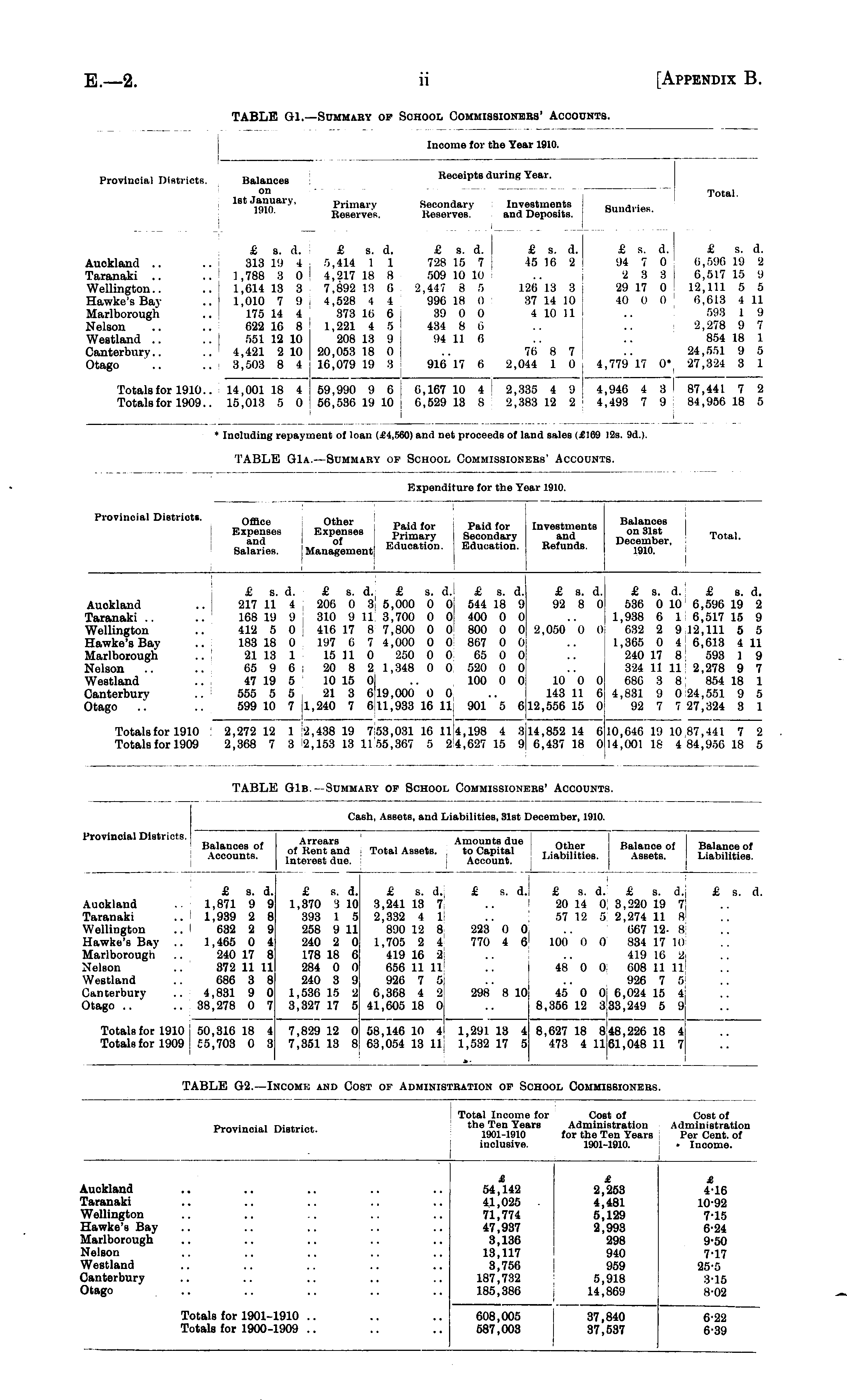 TABLE G2. —Income and Cost of Administration of School Commissioners.
