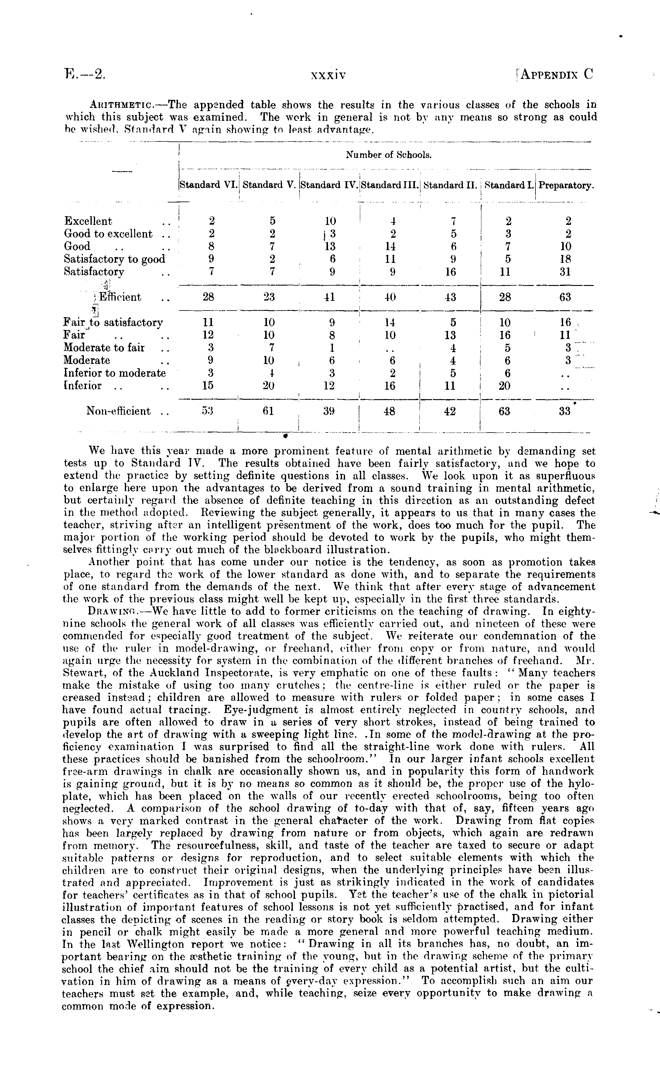 Arithmetic.—The appended table shows the results in the various classes of the schools in which this subject was examined. The work in general is not by any means so strong as could be wished, Standard V again showing to least advantage.