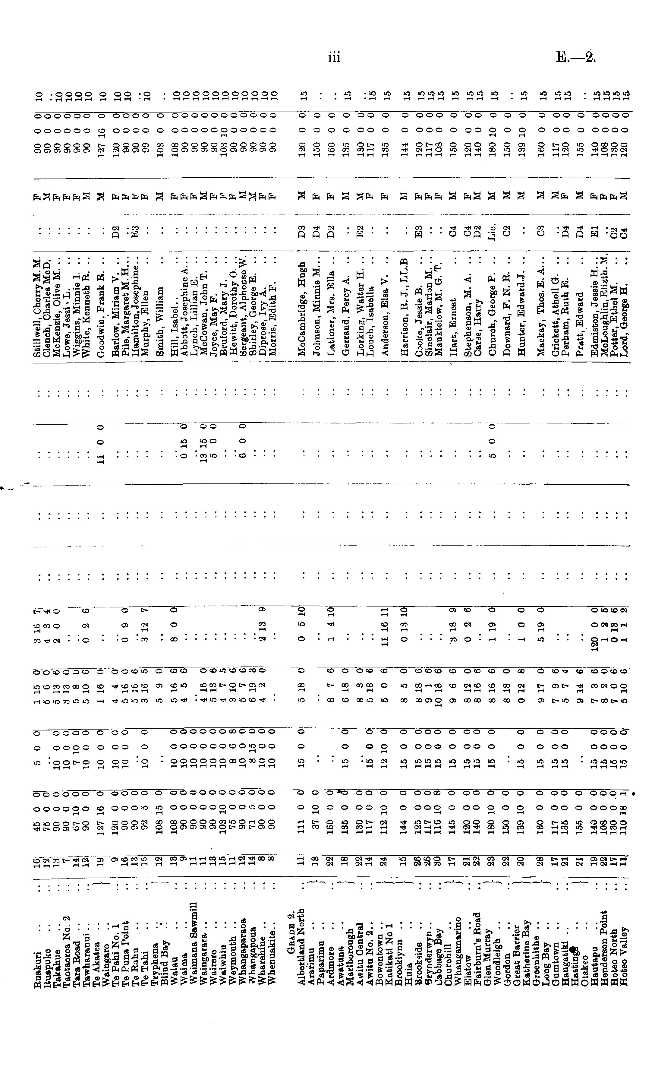 Ruakuri Ruapuke Takahue Taotaoroa No. 2 Tata Road .. Tawharauui .. Tβ Akatea .. Waingaro Tβ Pahi No. 1 Tβ Puna Point Te Rahu Te Tahi Tryphena Blind Bay .'. Waiau Waima Waimana Sawmill Waingarara .. Wairere Waiwhiu Weymouth .. Whangaparaoa ifVhangapoua Wharehine .. Whenuakite.. 12 13 12 li) 'J 1G 18 15 12 75 0 0 90 0 0 90 0 0 67 10 0 90 0 0 127 16 0 120 0 0 90 0 0 90 0 0 92 5 0 108 15 0 10 0 0 10 0 0 7 10 0 10 0 0 10 0 0 10 0 0 10 0 0 10 0 0 5 6 0 ! 5 13 6 3 13 0 5 8 0 •5 10 6 1 16 0 4 4 0 5 1(> 0 5 16 6 3 16 5 5 9 0 3 16 7 4 3 4 2 0 0 0 2 6 0 9 0 3 12 7 11 0 0 Still well, Cherry M.M. Clench, Charles MoD. McKenzie, Olive M. .. Lowe, Jessi iL. Wiggins, Minnie I. .. White, Kenneth R. .. Goodwin, Prank R. .. Barlow, Miriam V. .. Pile, Margaret M. H... Hamilton, Josephine.. Murphy, Ellen Smith, William D2 E3 M P P F M M P P P P M 90 0 0 90 0 0 90 0 0 90 0 0 90 0 0 90 0 0 127 16 0 120 0 0 90 0 0 90 0 0 99 0 0 108 0 0 10 1U 10 10 10 10 111 10 10 13 'J 11 11 13 15 11 12 14 8 8 108 0 0 90 0 0 90 0 0 90 0 0 90 0 0 103 10 0 75 0 0 90 0 0 71 5 0 90 0 0 90 0 0 10 0 0 10 0 0 10 0 0 10 0 0 10 0 0 10 0 0 8 6 8 10 0 0 8 15 0 10 0 0 10 0 0 5 16 6 4 5 6 8 0 0 0 15 0 13 15 0 5 0 0 60 0 Hill, Isabel.. Abbott, Josephine A... Lynch, Lillian E. McCowan, John T. .. Joyce, May P. Bruford, Mary J. Hewitt, Dorothy O. .. Sergeant, AlphonsoW. Shirley, George E. .. Diprose, Ivy A. Morris, Edith P. P F F M P P F M F P 108 0 0 90 0 0 90 0 0 90 0 0 90 0 0 103 10 0 90 0 0 90 0 0 90 0 0 90 0 0 90 0 0 10 10 10 10 10 10 10 10 10 10 10 4 16 0 5 13 6 4 7 5 3 10 6 5 7 6 6 19 3 4 2 0 213 9 Grade 2. Albertland North Ararimu Paparimu .. Ardmore Awatuna Marlborough Awitu Central AwituNo. 2.. Bo wen town .. Katikati No 1 Brooklynn .. Huia Brookside 3rynderwyn.. Cabbage Bay Churchill Whangamarino Elstow Pairburn's Road Glen Murray Woodleigh .. Gordon Great Barrier Katherine Bay Greenhithe .. Long Bay Gumtown Hangatiki .. Hastingt Otakeo Hautapu Henderson Point Hoteo North Hoteo Valley J 'I ) 11 IS 22 18 22 24 15 26 30 17 111 0 0 37 10 0 160 0 0 135 0 6! 130 0 0 117 0 0 112 10 0 144 0 0 125 0 0 117 0 0 116 10 8 145 0 0 15 0 0 15 0 01 lo' 0 0 12 10 0 15 0 0 15 0 0 15 0 0 15 0 0 15 0 0 5 18 0 8 7 6 6 18 0 8 3 0 5 18 6 5 0 6 8 5 0 8 18 6 9 16 10 18 6 9 6 6 0 5 10 1 4 lOJ .. 11 16 11 0 13 10 3 18 9 McCambridge, Hugh Johnson, Minnie M... Latimer, Mrs. Ella .. . Gerrand, Percy A. .. Lorking, Walter H. .. Louch, Isabella Anderson, Elsa V. .. Harrison, R. J.,LL.B Cooke, Jessie B. Sinolair, Marijn M. .. Manktelow, M. G. T. Hart, Ernest D3 D4 D2 •• E2 E3 C4 M P P M M P F M F P P M 120 0 0 150 0 0 100 0 0 135 0 0 130 0 0 117 0 0 ! 135 0 0 144 0 0 120 0 0 117 0 0 108 0 0 150 0 0j IS IS is 15 15 15 15 15 15 21 120 0 0 140 0 0 15 0 0 15 0 0 8 12 0 8 16 6 0 2 6 5 0 0 Stephenson, M. A. .. Carae, Harry Church, George P. .. Downard, P. N. R. Hunter, Edward. J. .. C4 D2 F M 120 0 o! 140 0 0: 15 15 23 180 10 0 15 0 0 8 16 6 1 19 0 Lie. M 180 10 0 15 22 150 0 0 8 18 0 C2 M 150 0 0 ■20 139 10 0 15 0 0 0 12 8 10 0 M 139 10 0 15 28 160 0 0 15 0 0 9 17 0 5 19 0 j Mackay, Thos.E. A... C3 M 160 0 0 15 17 21 117 0 0 135 0 0 15 0 0 15 0 0 7 9 6 5 7 4 Crickett, Atholl G. .. Perham, Ruth E. Pratt, Edward Edmiston, Jessie H... MoLoughlin.Elizth. M. Potter, Ethel M. Lord, George H. D4 M F 117 0 0 120 0 0 15 15 21 155 0 0 9 14 6 D4 M 155 0 0 19 22 17 11 140 0 0 108 0 0 130 0 0 110 18 1 15 0 0 15 0 0 15 0 0 15 0 0 7 3 6 8 2 0 7 0 6 5 10 6 120 0 0 12 5 0 13 6 112 El 02 04 P P F M 140 0 0 108 0 0 130 0 0 120 0 0 15 15 15 15
