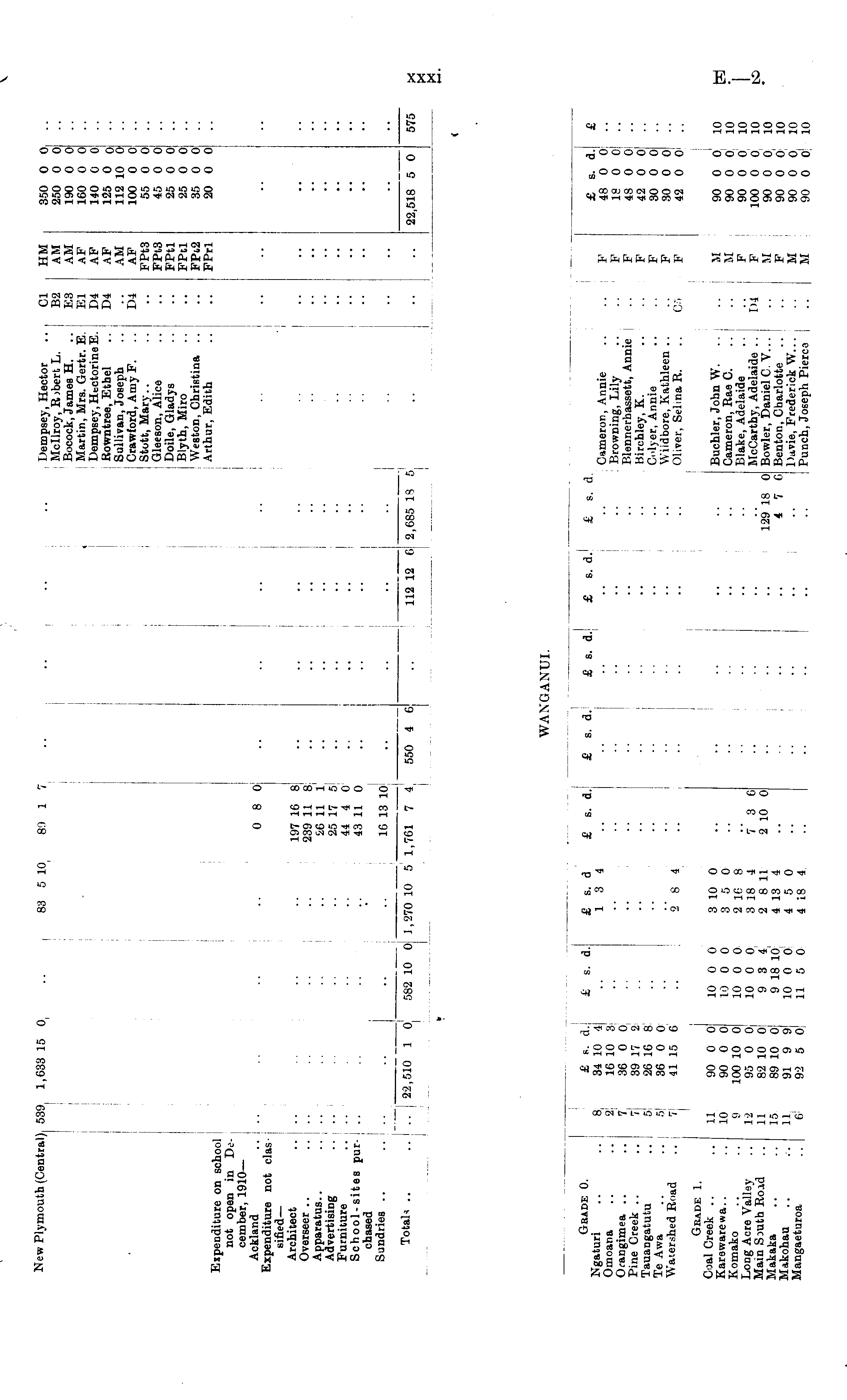 New Plymouth (Central), 539. 1,633 15 0, 83 5 10 8:) 1 7 I >empsey, Hector Mcllroy, Bjbert L. Bocock, James H. Martin, Mrs. Gertr. E. Dempsey, Hectorine E. Kowntree, Ethel Sullivan, Joseph Crawford, Arny F. Stott, Mary.." Gleeson, Alice Doile, Gladys Blyth, Miro Weston, Christina .. Arthur, Edith CI B2 E8 El 1)4 D4 l>4 HM AM AM AF AF AF All AF FPt3 FPt3 FPtl FPtl FP(,2 FPrl 350 0 0 250 0 0 190 0 0 160 0 0 140 0 0 125 0 o 112 10 0 100 0 0 55 0 0 45 0 0 25 0 0 25 0 0 35 0 0 20 0 0 Expenditure on school not open in December, 1910 — Ackland .... Expenditure not clas • Architect .... Overseer .. .... Apparatus.. .... Advertising .... Furniture School-sites purchased Sundries .. .... Totals .. .. .. 22,510 1 0 : 582 10 oj *' ,270 10 5' 1 0 8 0 197 16 8 239 11 8 26 11 1 25 17 5i 44 4 0 43 11 0 16 13 10 L.761 7 I 550 1,270 10 5 1,761 7 4 550 4 6 112 12 f. 112 12 6 2,685 IS 5 22,518 5 0 575 I v (