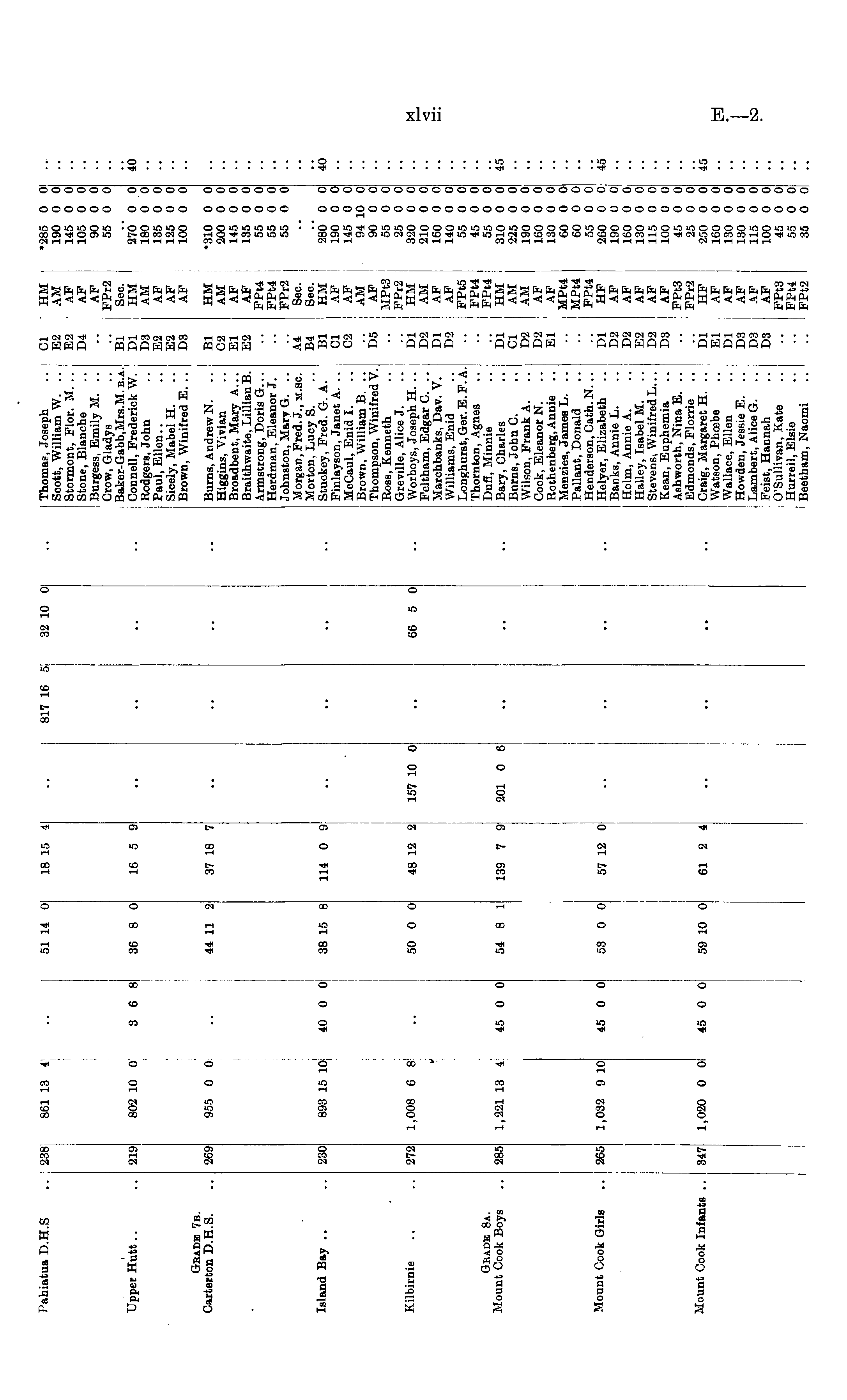 Pahiatua D.H.S 661 13 i 51 14 0 51 14 01 18 15 41 817 II 32 10 01 Thomas, Joseph Scott, William W. .. Stormont, Plor. II. .. Stone, Blanche Burgess, Emily M. .. Crow, Gladys Baker-Gabb,Mrs.M. b.a. Connell, Frederick W. Rodgers, John Paul, Ellen.. Sieely, Mabel H. Brown, Winifred E. .. E2 E2 D4 AM AF AF AF FPr2 Sec. HM AM AF AF AF 190 0 0 145 0 0 105 0 0 90 0 0 55 0 0 270* 0 0 180 0 0 135 0 0 125 0 0 100 0 0 Upper Hutt.. 802 10 0 3 6 8 36 8 0 Bl Dl D3 E2 E2 D3 40 219 16 5 9 ■ • • • Gbadb 7b. Carterton D.H.S. 37 18 7 Burns, Andrew N. Higgins, Vivian Broadbent, Mary A... Braithwaite, Lillian B. Armstrong, Doris G... Herdman, Eleanor J. Johnston, Mary G. .. Morgan, Fred. J., jr.ac. Morton, Lucy S. Stuckey, Fred. G. A. Finlayson, Janet A. .. McCaul, Enid I. Brown, William B. .. Thompson, Winifred V. Ross, Kenneth Greville, Alice J. Worboys, Joseph H. .. Feltham, Edgar C. .. Marchbanks, Dav. V. Williams, Enid Longhurst, Ger. E. F. A. Thornton, Agnes Duff, Minnie Bary, Charles Bnrns, John C. Wilson, Frank A. .. Cook, Eleanor N. Rothenberg, Annie Menzies, James L. .. Pallant, Donald Henderson, Cath. N... Helyer, Elizabeth Banks, Annie L. Holm, Annie A. Halley, Isabel M. .. Stevens* Winifred L... Kean, Euphemia Ashworth, Nina E. .. Edmonds, Florrie Craig, Margaret H. .. Watson, Phoebe Wallace, Ellen Howden, Jessie E. Lambert, Alice G. Feist, Hannah O'Sullivan, Kate Hurrell, Elsie Beetham, Naomi Bl C2 El E2 269 955 0 0 44 11 2 HM AM AF AF FPt4 FPt4 FPr2 Sec. Sec. HM AF AF AM AF MPt3 FPr2 HM AM AF AF FPt5 FPt4 FPt4 HM AM AM AF AF MPt4 MPt4 FPt4 HF AF AF AF AF AF FPt3 FPr2 HF AF AF AF AF AF FPt3 FPt4 FPt2 •310 0 0 200 0 0 145 0 0 135 0 0 55 0 0 55 0 0 55 0 0 28o' 0 0 190 0 0 145 0 0 94 10 0 90 0 0 55 0 0 25 0 0 320 0 0 210 0 0 160 0 0 140 0 0 55 0 0 45 0 0 55 0 0 310 0 0 225 0 0 190 0 0 160 0 0 130 0 0 60 0 0 60 0 0 55 0 0 260 0 0 190 0 0: 160 0 0 130 0 0 115 0 0 100 0 0 45 0 0 25 0 0 250 0 0 160 0 0 130 0 0 130 0 0 115 0 0 100 0 0 45 0 0 55 0 0 35 0 0 Island Bay 230 893 15 10 40 0 0 38 15 8 114 0 9 A4 B4 Bl CI C2 40 - • • D5 1,008 6 8 50 0 0 157 10 0 Dl D2 Dl D2 Kilbirnie 272 50 0 0 48 12 2 • • 66 5 0 ■ Gkade 8a. Mount Cook Boys 285 1,221 13 i 45 0 0 54 8 1 54 8 1 139 7 9 201 0 6 Dl CI D2 D2 El 45 Mount Cook Girls 265 1,032 9 10 45 0 0! 53 0 0 57 12 0 Dl D2 D2 E2 D2 D3 45 Mount Cook Infante .. 45 0 0 347 1,020 0 0l 59 10 0 61 2 4 Dl El Dl D3 D3 D3 45 * • • •