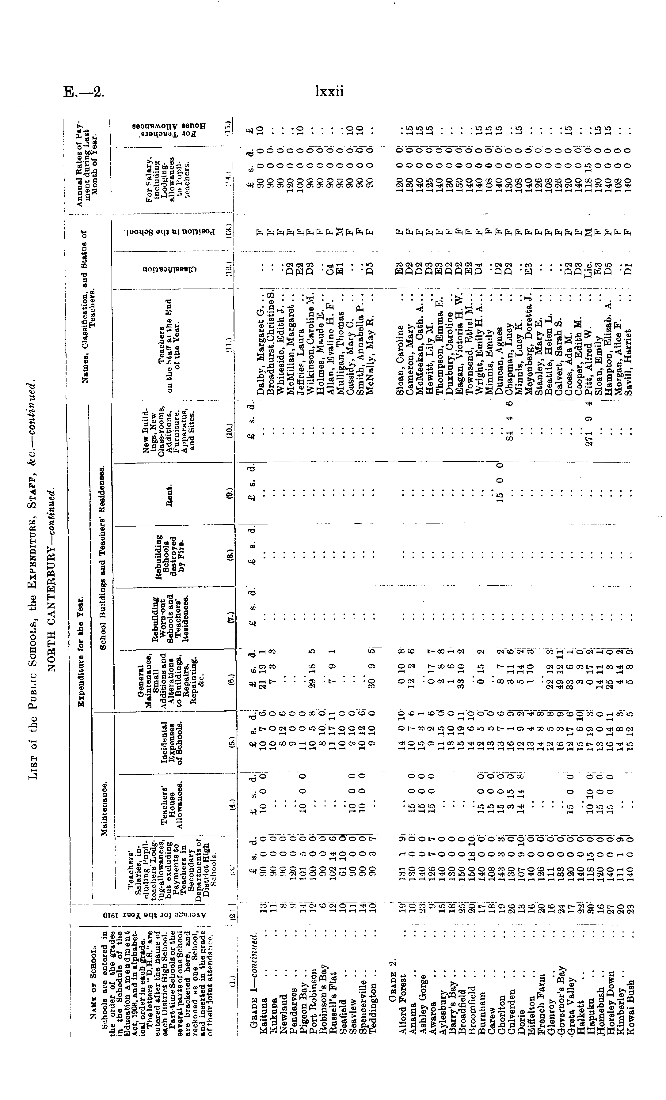 List of the Public Schools, the Expenditure, Staff, &c.— continued. NORTH CANTERBURY— continued.