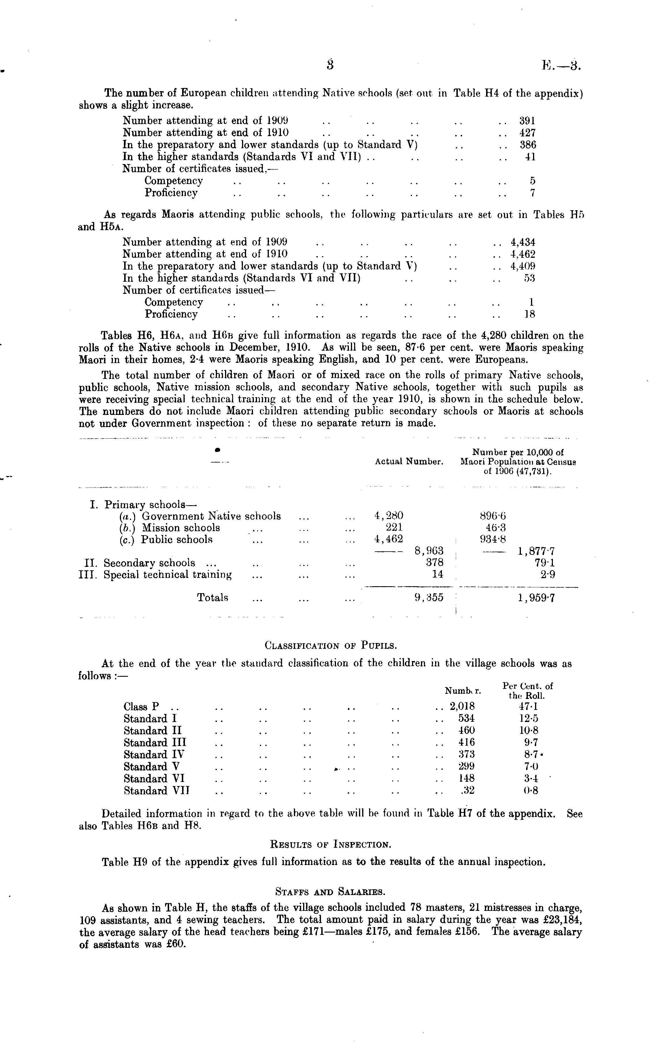 • Actual Number. Number per 10,000 of Maori Population at Census of 1906 (47,731). I. Primary schools— («..) Government Native schools (ft.) Mission schools ... (c.) Public schools IT. Secondary schools ... ill. Special technical training 1, 280 221 4,462 8,963 378 14 896-6 46-3 934-8 1,877-7 791 2-9 Totals 9,355 9,355 1,959-7 1,959-7