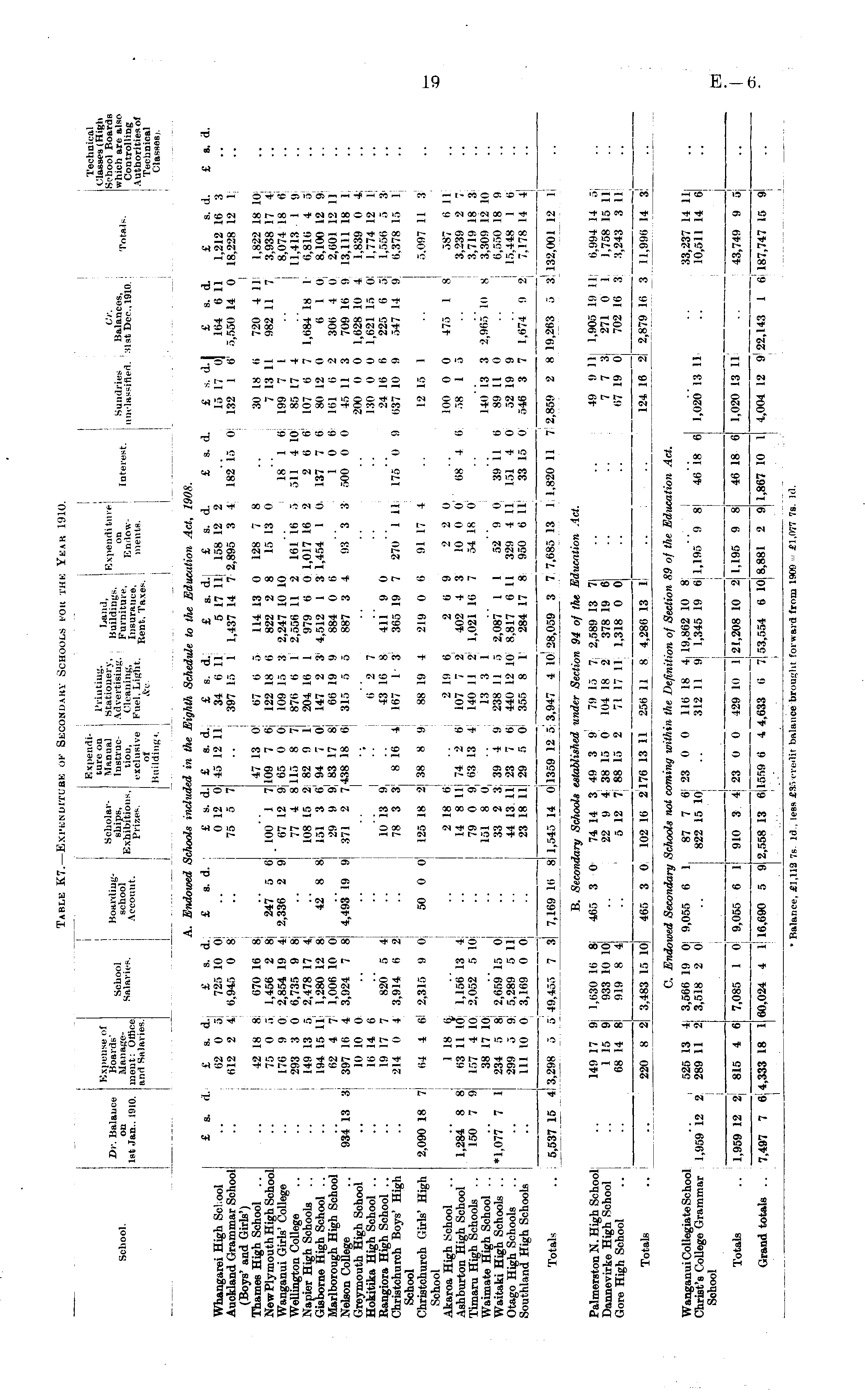 Table K7.—Expenditure of Secondary Schools for the Year 1910.